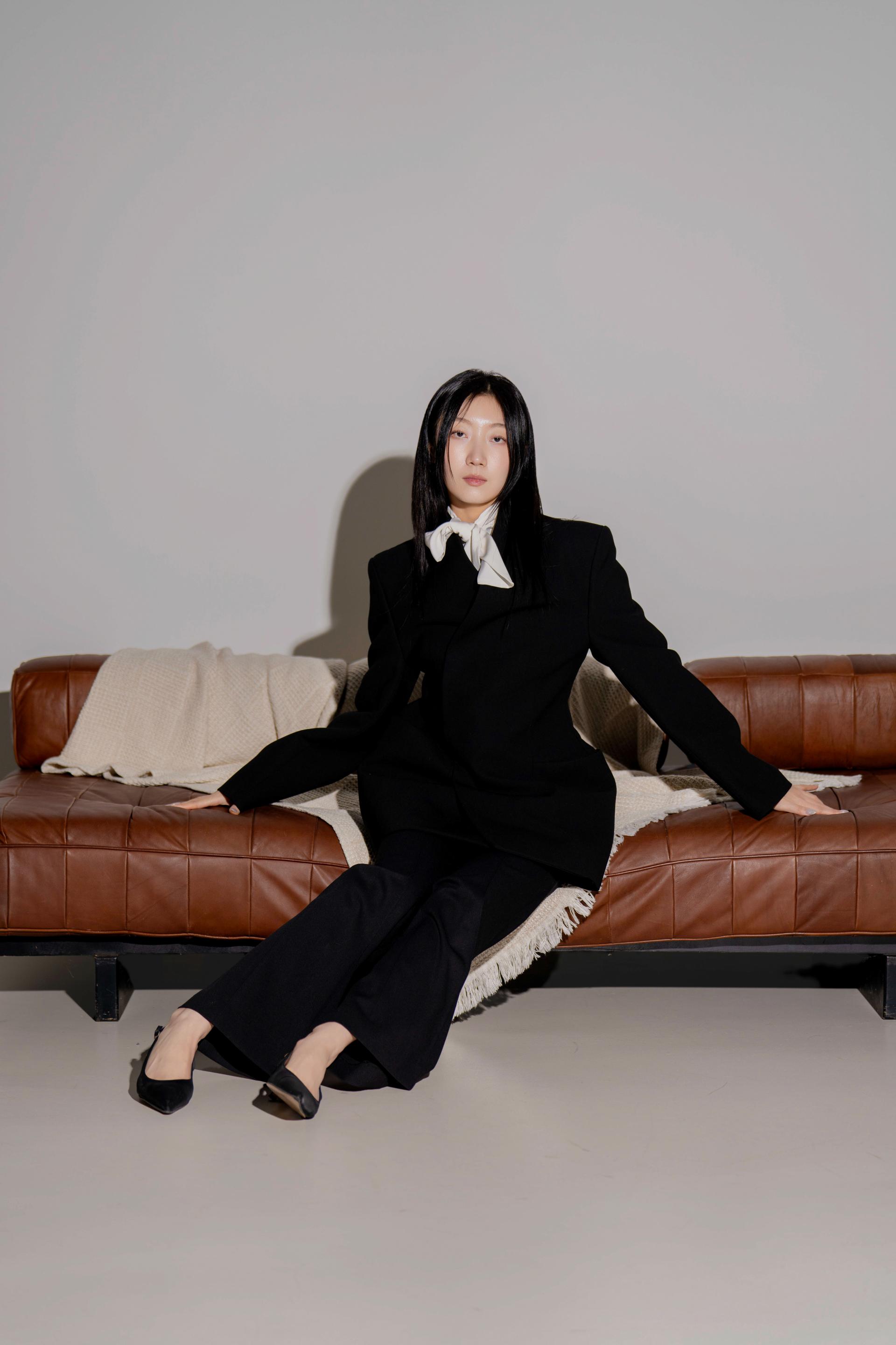 • 특히, 세미오버핏 더블 브레스트 테일러드 디자인을 적용하여 클래식하면서도 세련된 무드를 더했으며, 한복을 연상시키는 앞섭 디테일이 동양적인 감성을 더해 포멀하면서도 차분하고, 화려하면서도 충실한 룩을 완성했습니다.