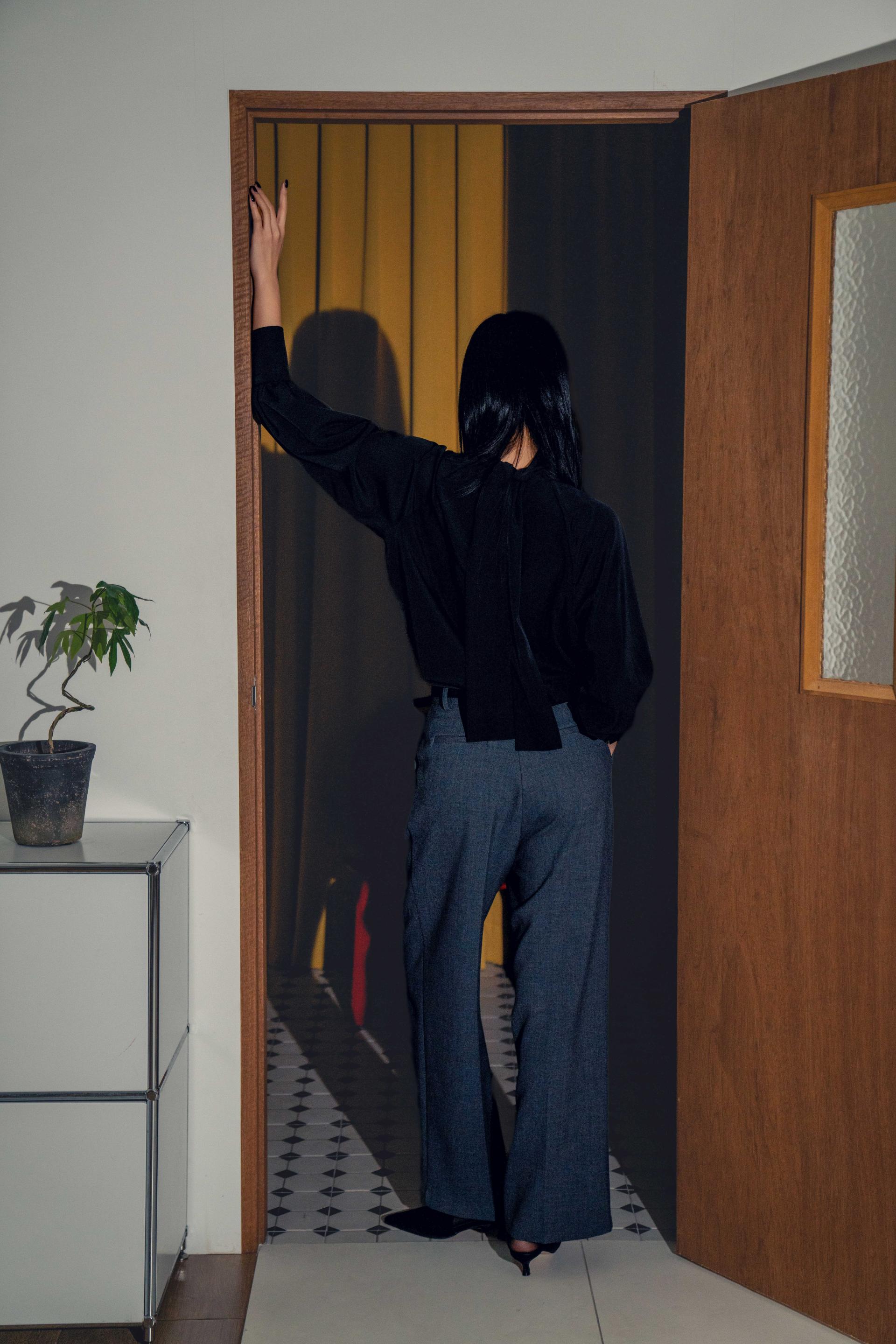 •목선을 강조하는 디테일은 스타일의 무드를 결정짓는 중요한 요소입니다. 이 블라우스는 앞으로 묶어 타이 블라우스로, 뒤로 연출해 백 리본 디테일로, 또는 모크넥처럼 가볍게 감싸는 스타일로 다양한 스타일링이 가능한 긴 타이가 포인트입니다. 하나의 블라우스로 여러 가지 분위기를 연출할 수 있어 활용도가 높습니다.