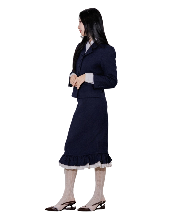 • 하의는 A라인 미니 스커트로 구성되어, 셋업으로 착용 시 매끄러운 실루엣이 완성됩니다.