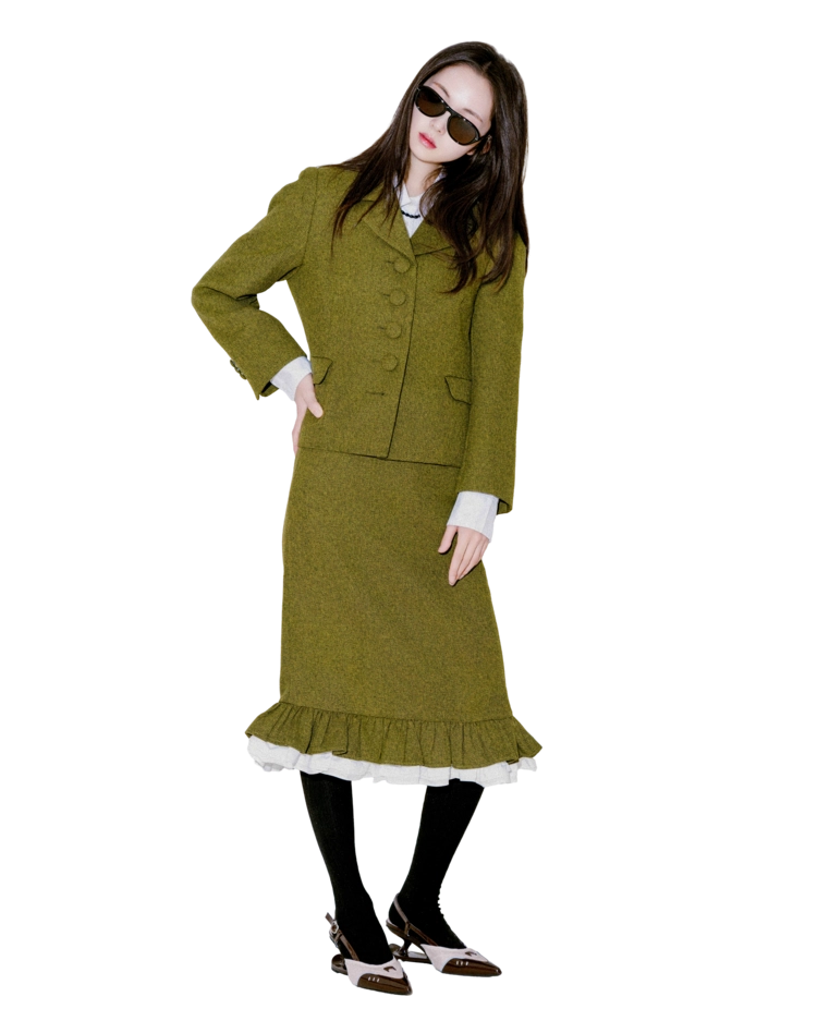 "처음에 이 자켓을 입었을 때 실루엣이 깔끔하게 떨어져서 놀랐어요. 버튼이 포인트가 되면서도 부담스럽지 않아 마음에 들었고, 셋업이지만 따로따로 입기에도 좋아요."