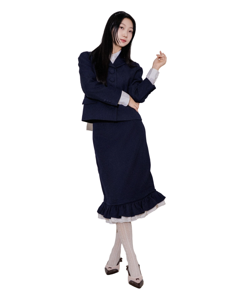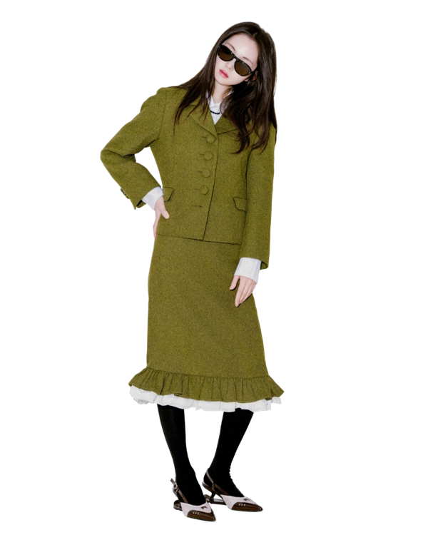 "처음에 이 자켓을 입었을 때 실루엣이 깔끔하게 떨어져서 놀랐어요. 버튼이 포인트가 되면서도 부담스럽지 않아 마음에 들었고, 셋업이지만 따로따로 입기에도 좋아요."