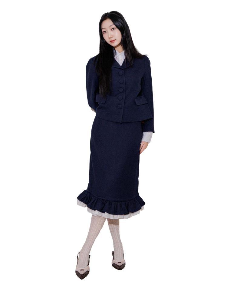 • 하의는 A라인 미니 스커트로 구성되어, 셋업으로 착용 시 매끄러운 실루엣이 완성됩니다.