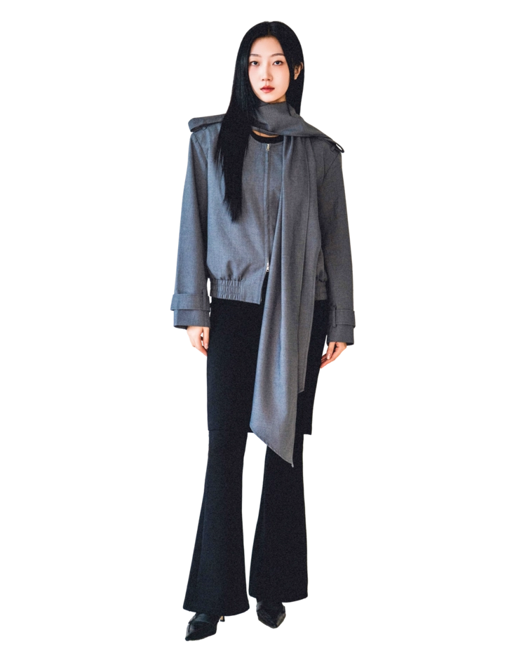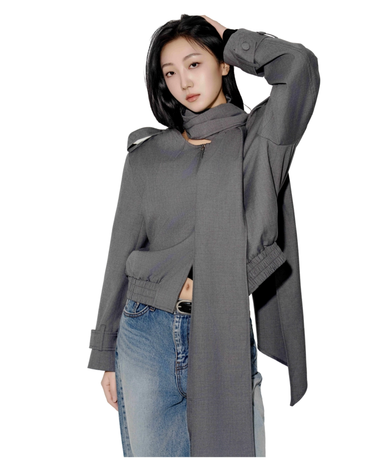 • 탈부착 가능한 롱 스카프 디테일이 인상적인 포인트로, 우아한 연출과 실용성을 동시에 제공합니다. 단정하게 묶거나 자연스럽게 늘어뜨려 다양한 무드를 연출할 수 있습니다.