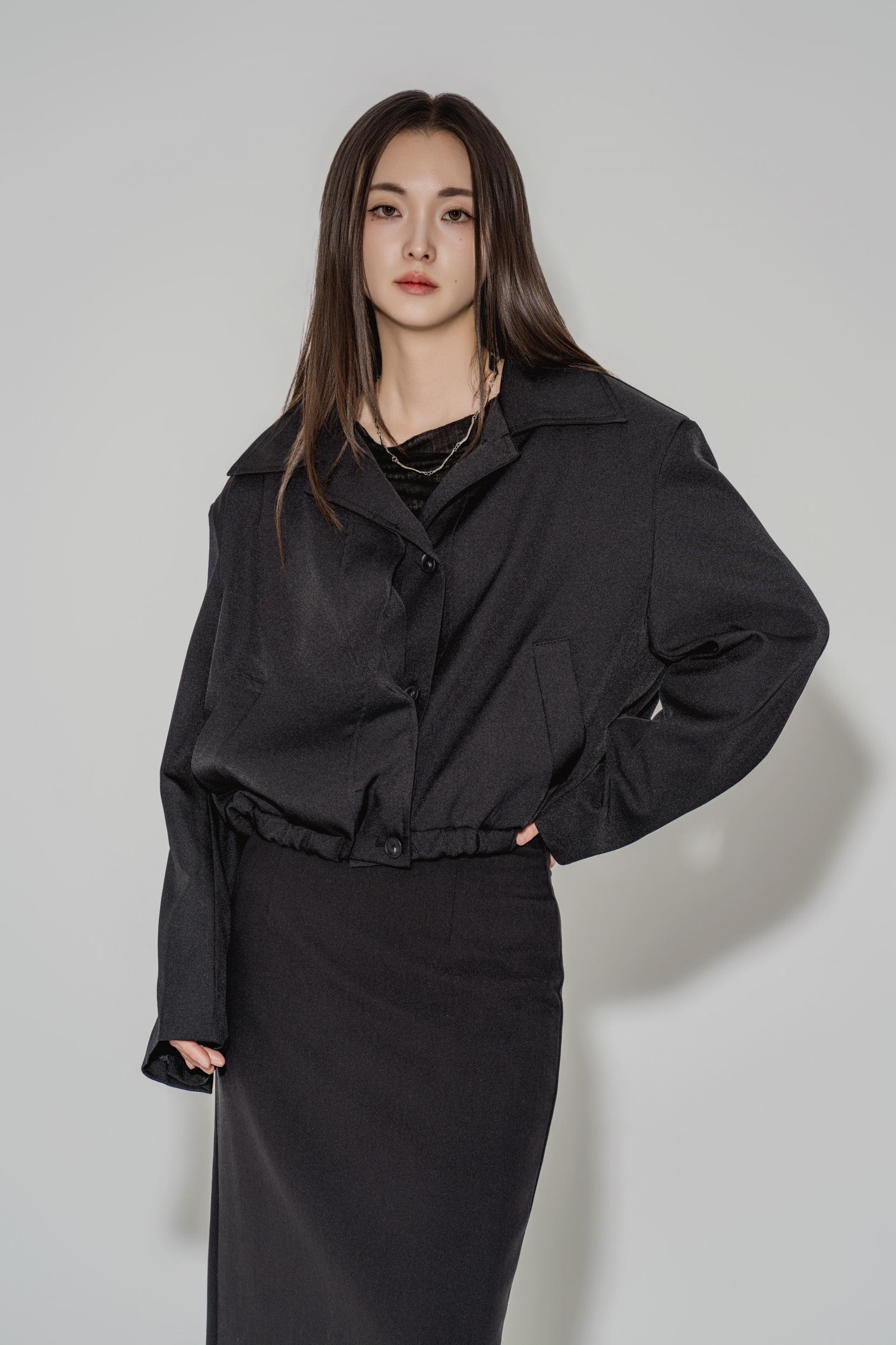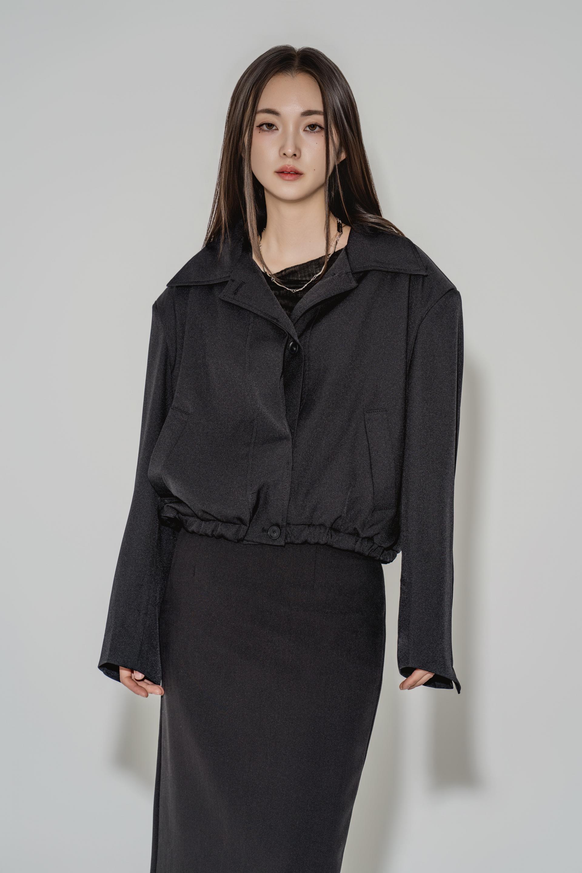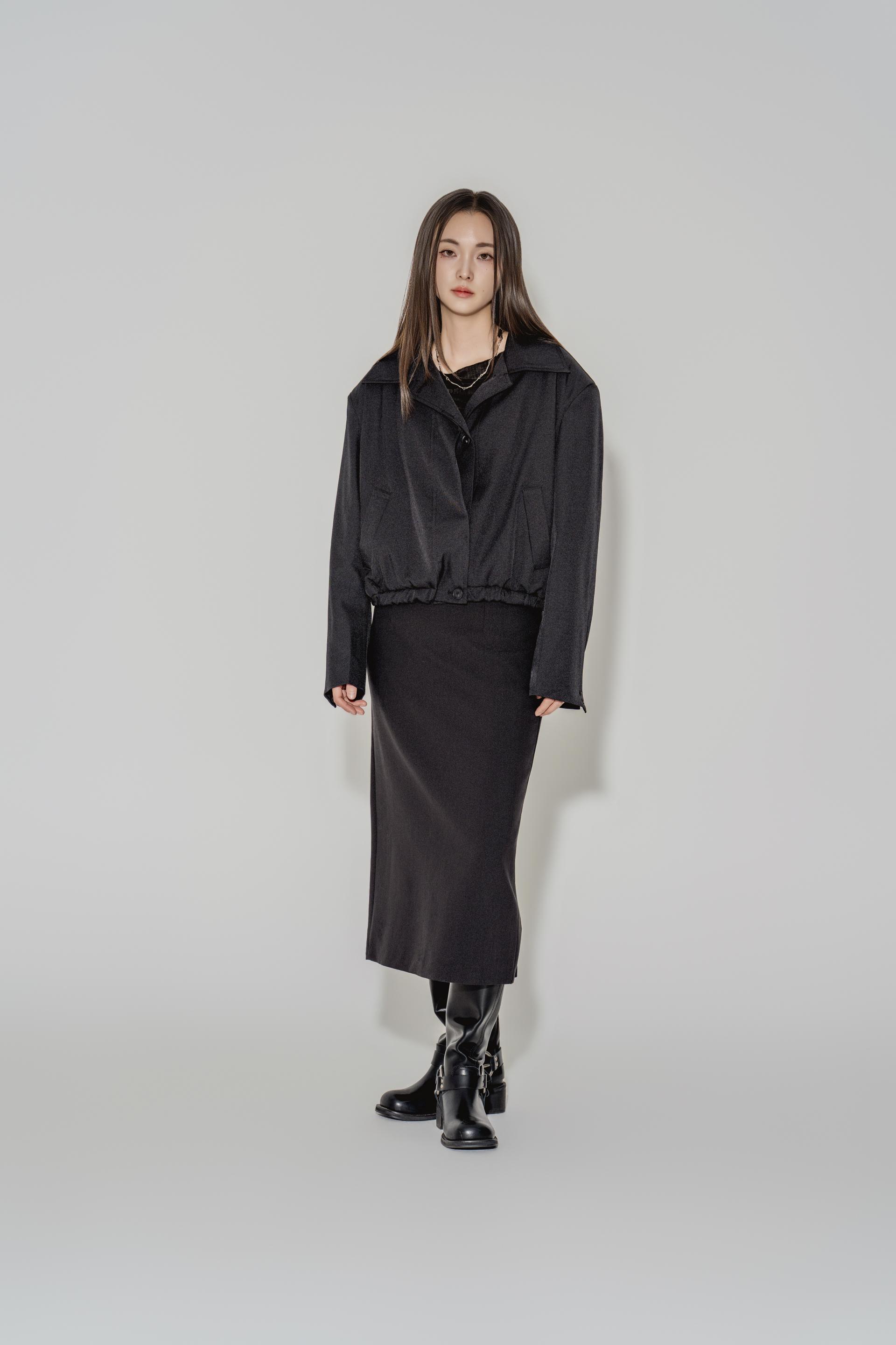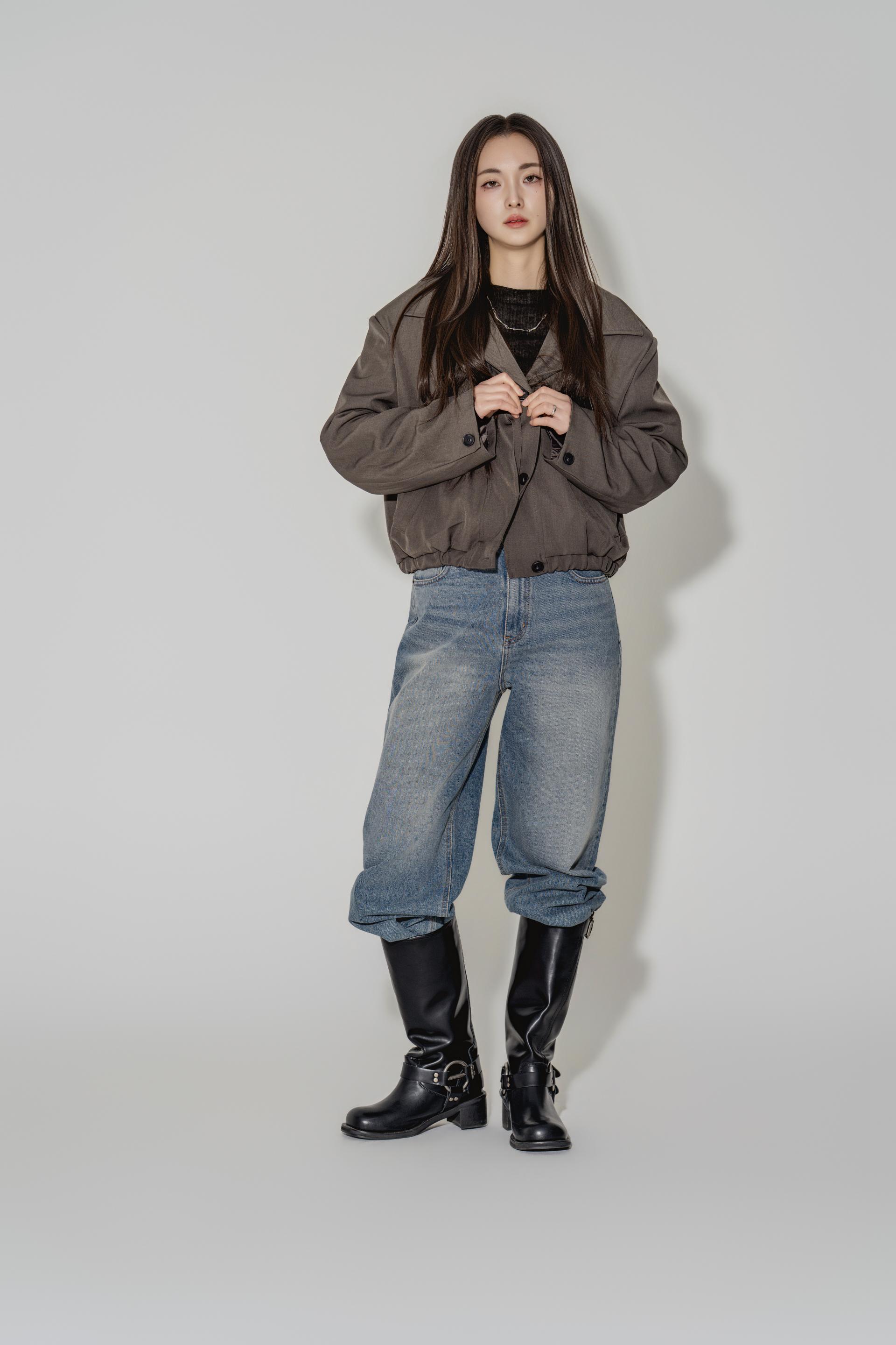 • 블랙은 텍스처보다 실루엣이 먼저 읽히는 컬러로, 와이드 칼라와 크롭 밑단의 구조가 또렷하게 드러납니다. 룩의 경계를 단단하게 정리하고 싶을 때 적합합니다.