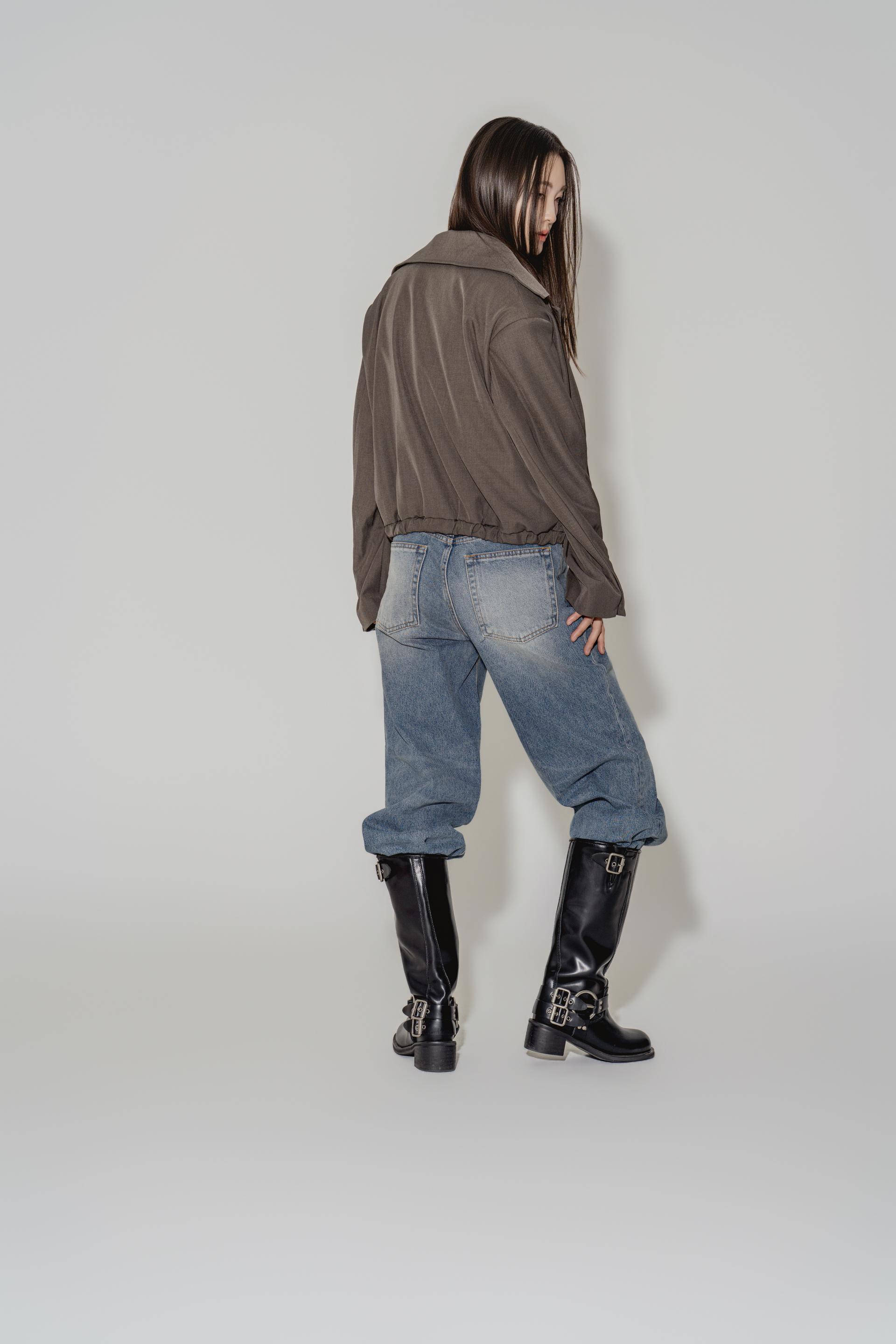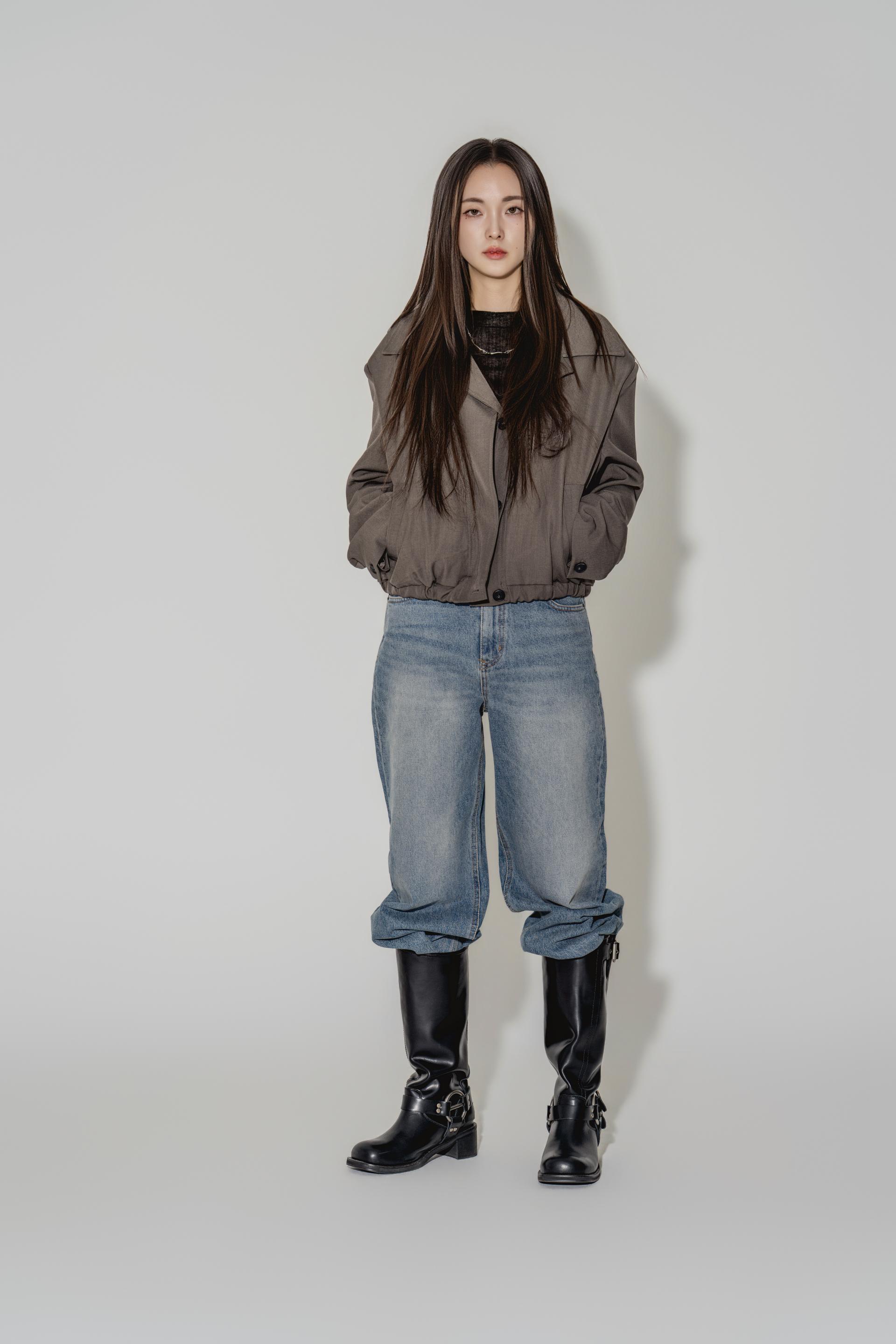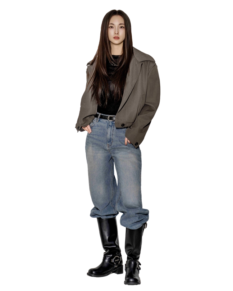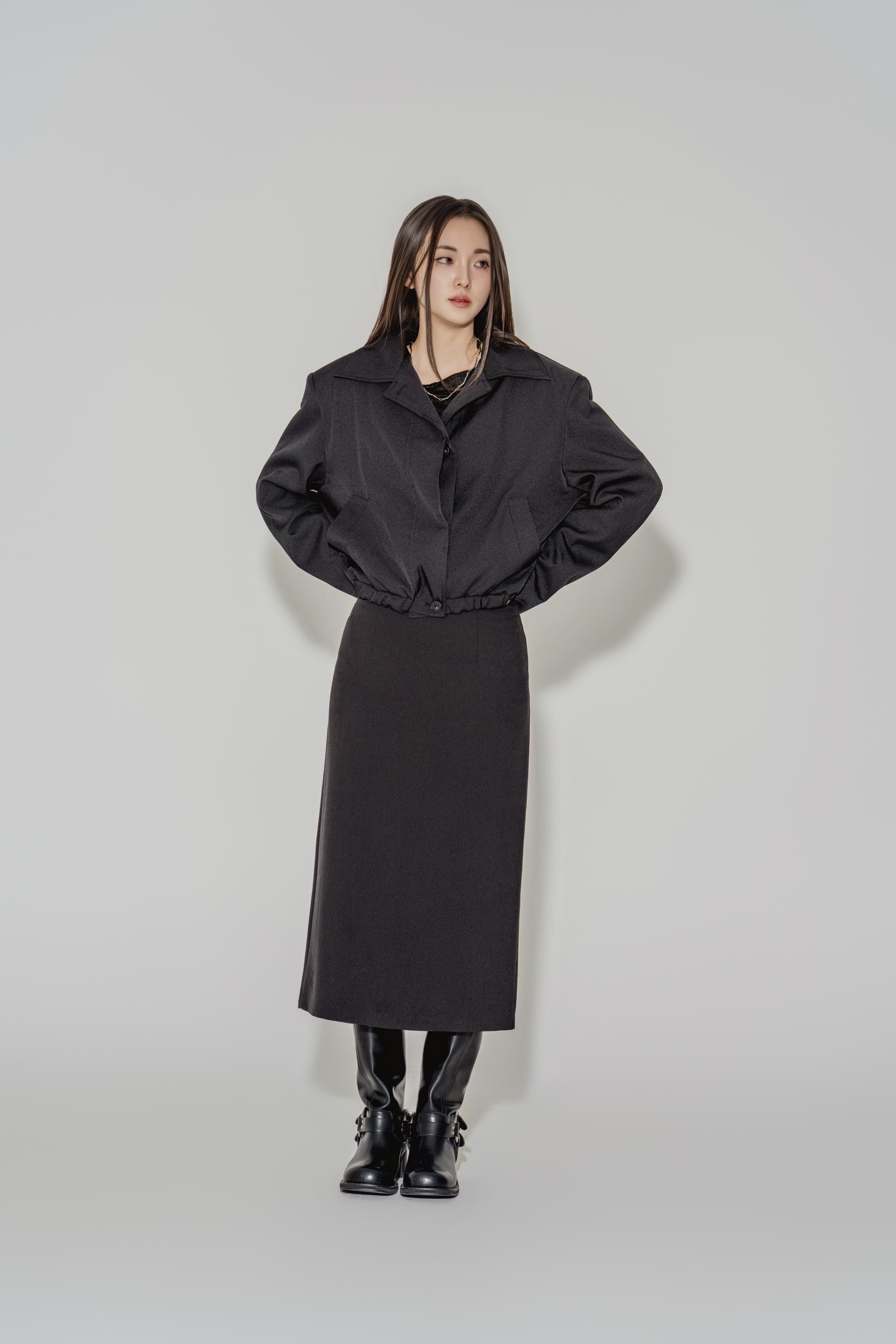 • 블랙은 텍스처보다 실루엣이 먼저 읽히는 컬러로, 와이드 칼라와 크롭 밑단의 구조가 또렷하게 드러납니다. 룩의 경계를 단단하게 정리하고 싶을 때 적합합니다.