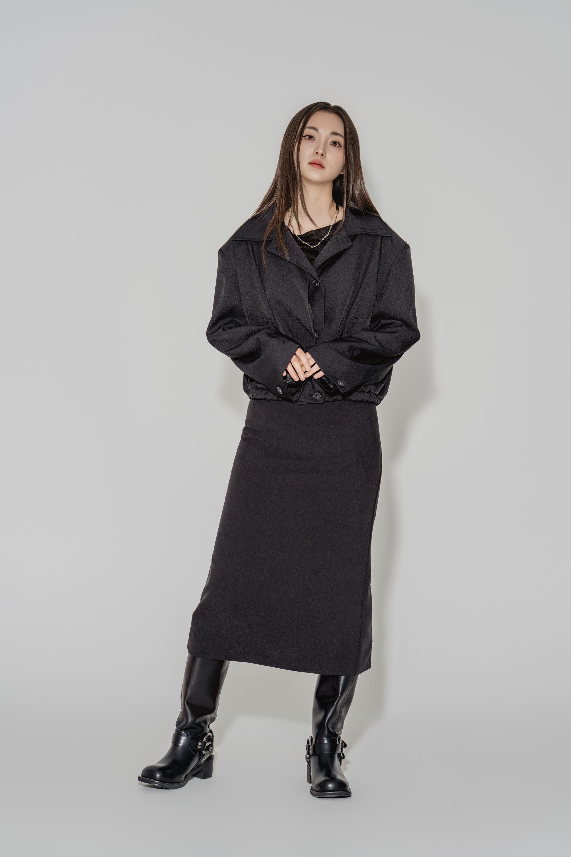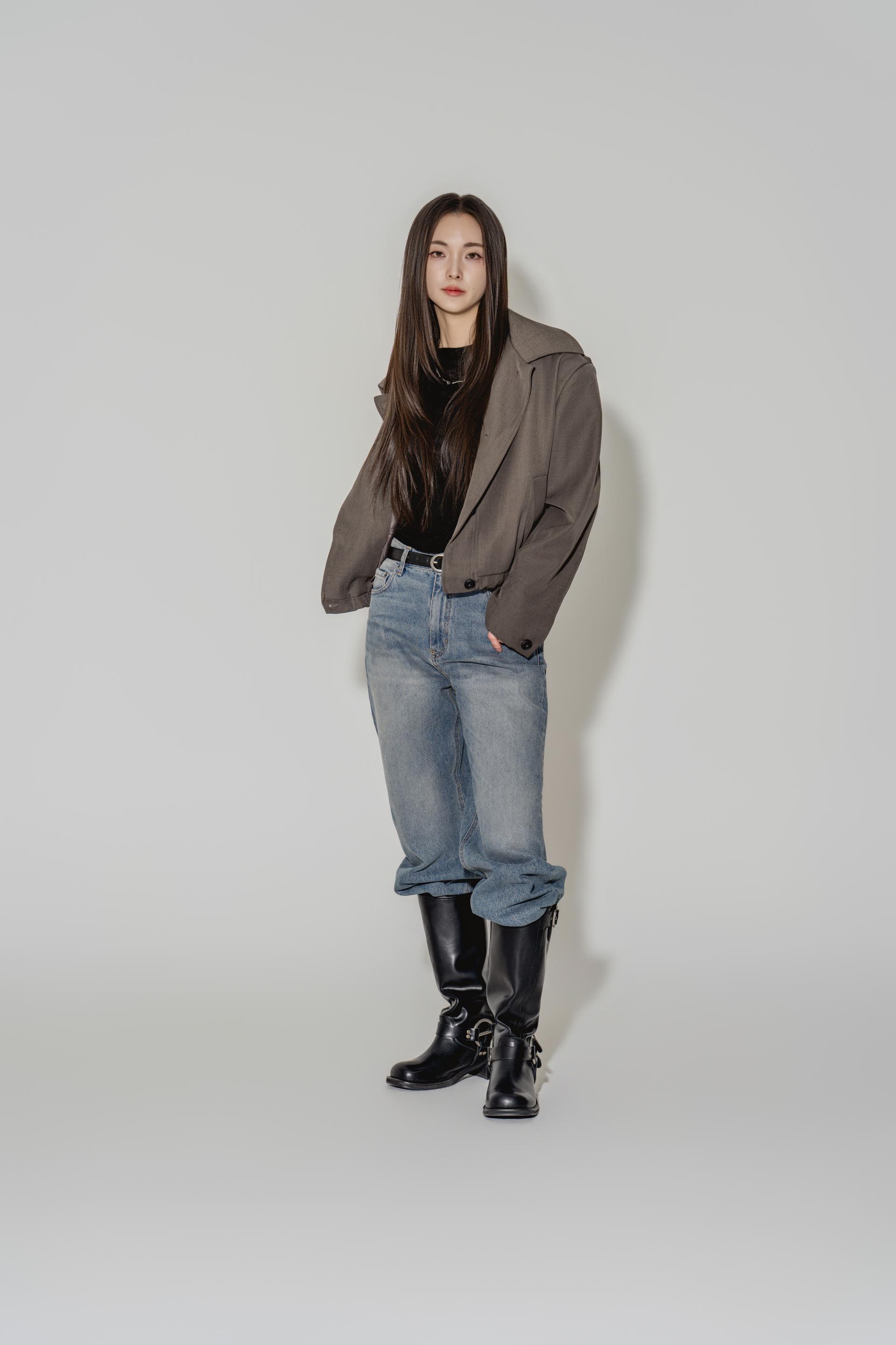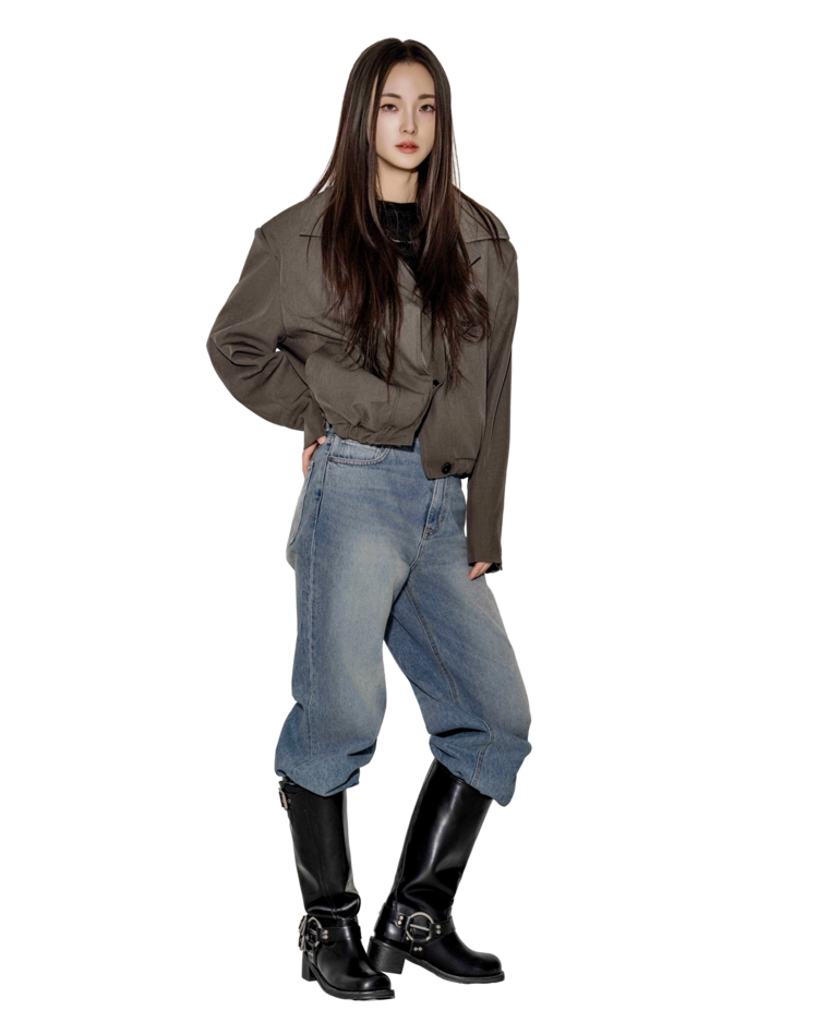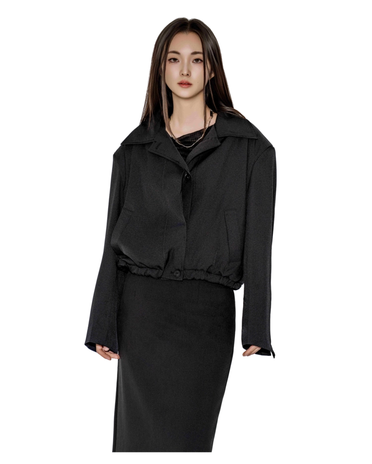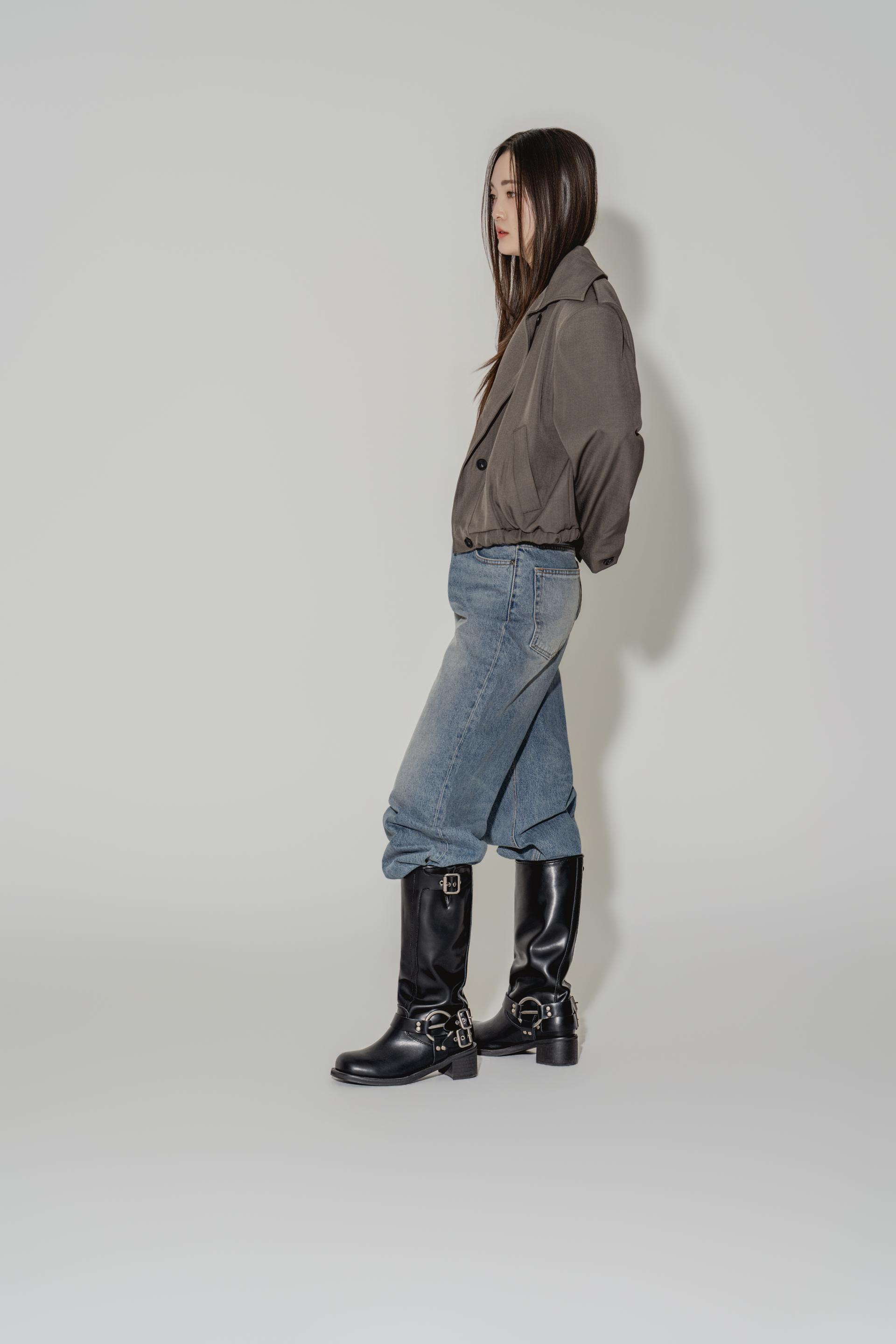 • 블랙은 텍스처보다 실루엣이 먼저 읽히는 컬러로, 와이드 칼라와 크롭 밑단의 구조가 또렷하게 드러납니다. 룩의 경계를 단단하게 정리하고 싶을 때 적합합니다.