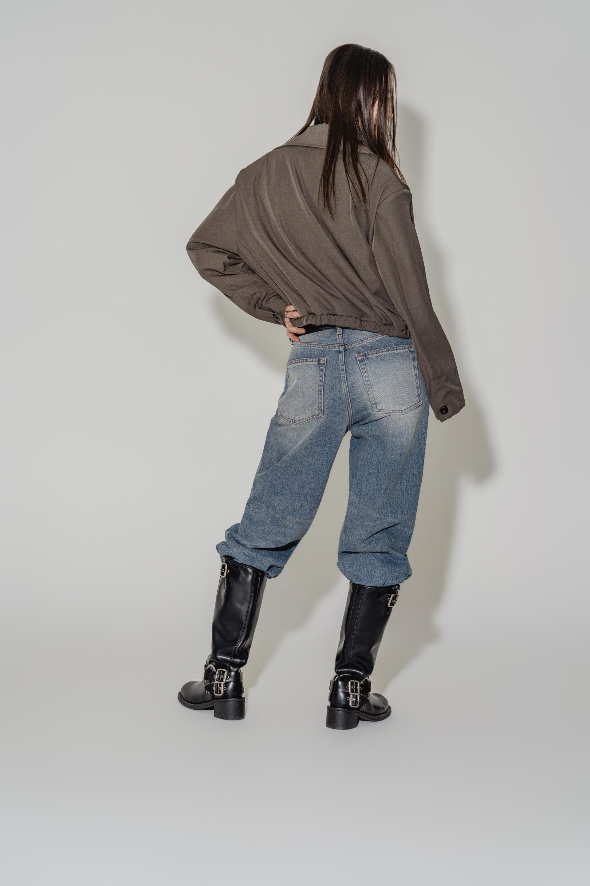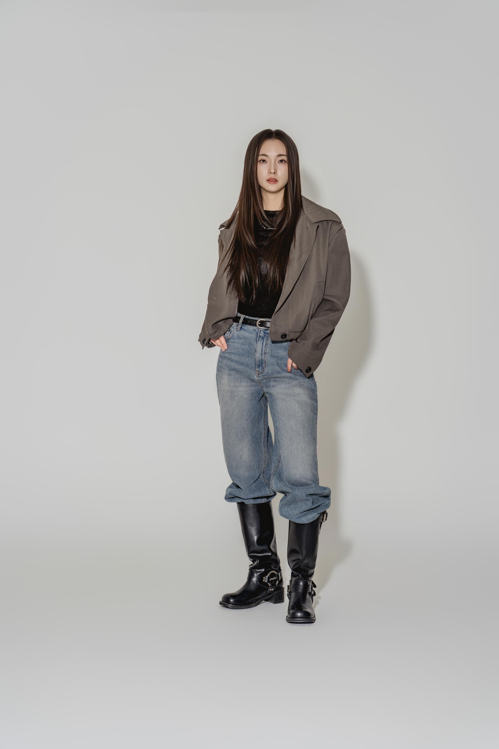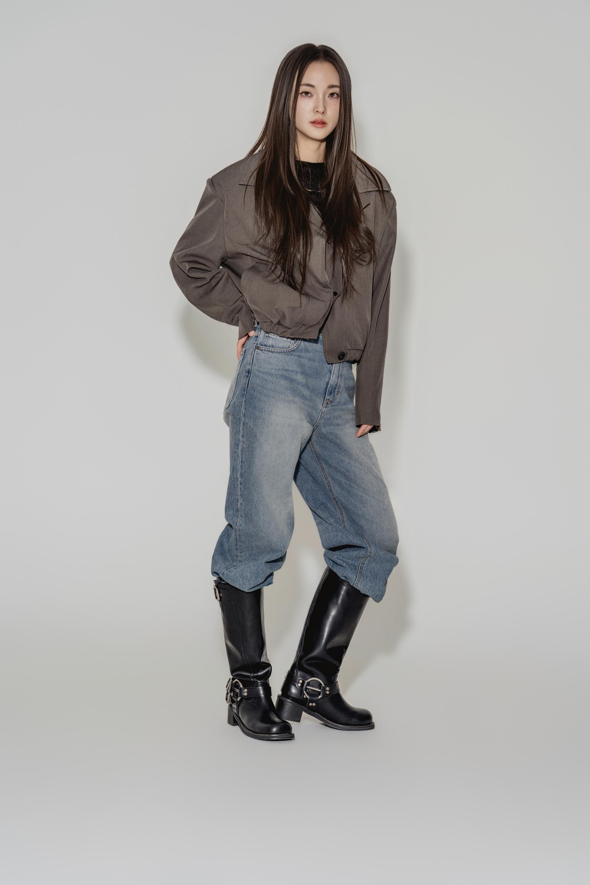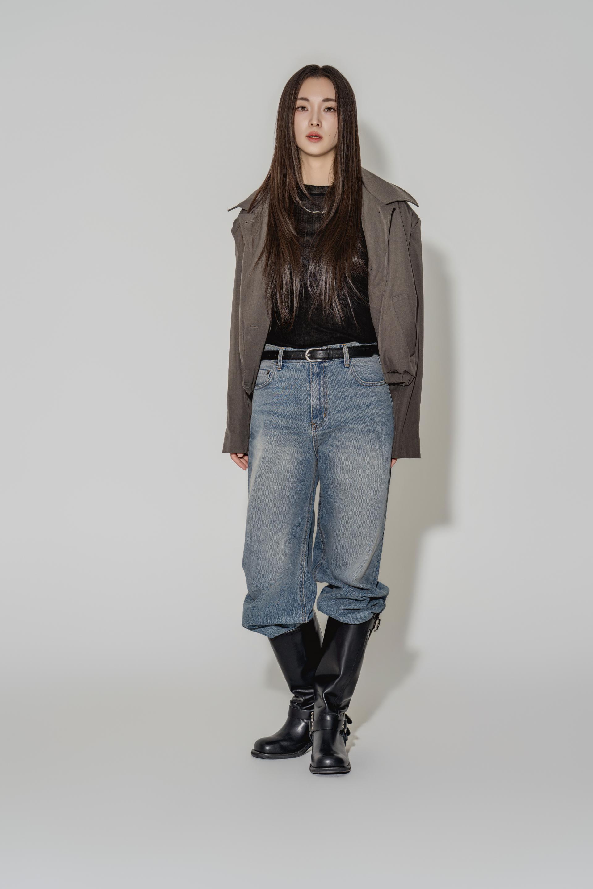 • 블랙은 텍스처보다 실루엣이 먼저 읽히는 컬러로, 와이드 칼라와 크롭 밑단의 구조가 또렷하게 드러납니다. 룩의 경계를 단단하게 정리하고 싶을 때 적합합니다.