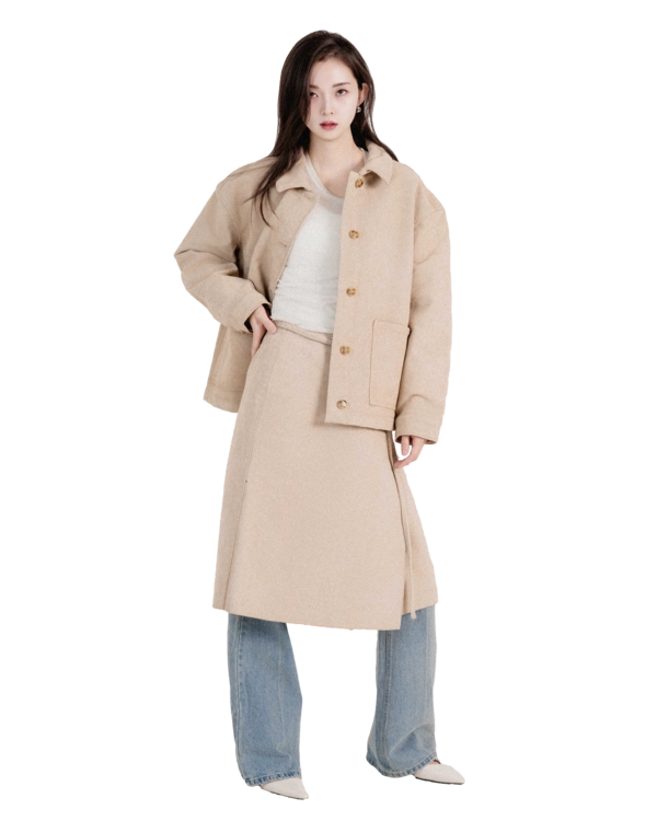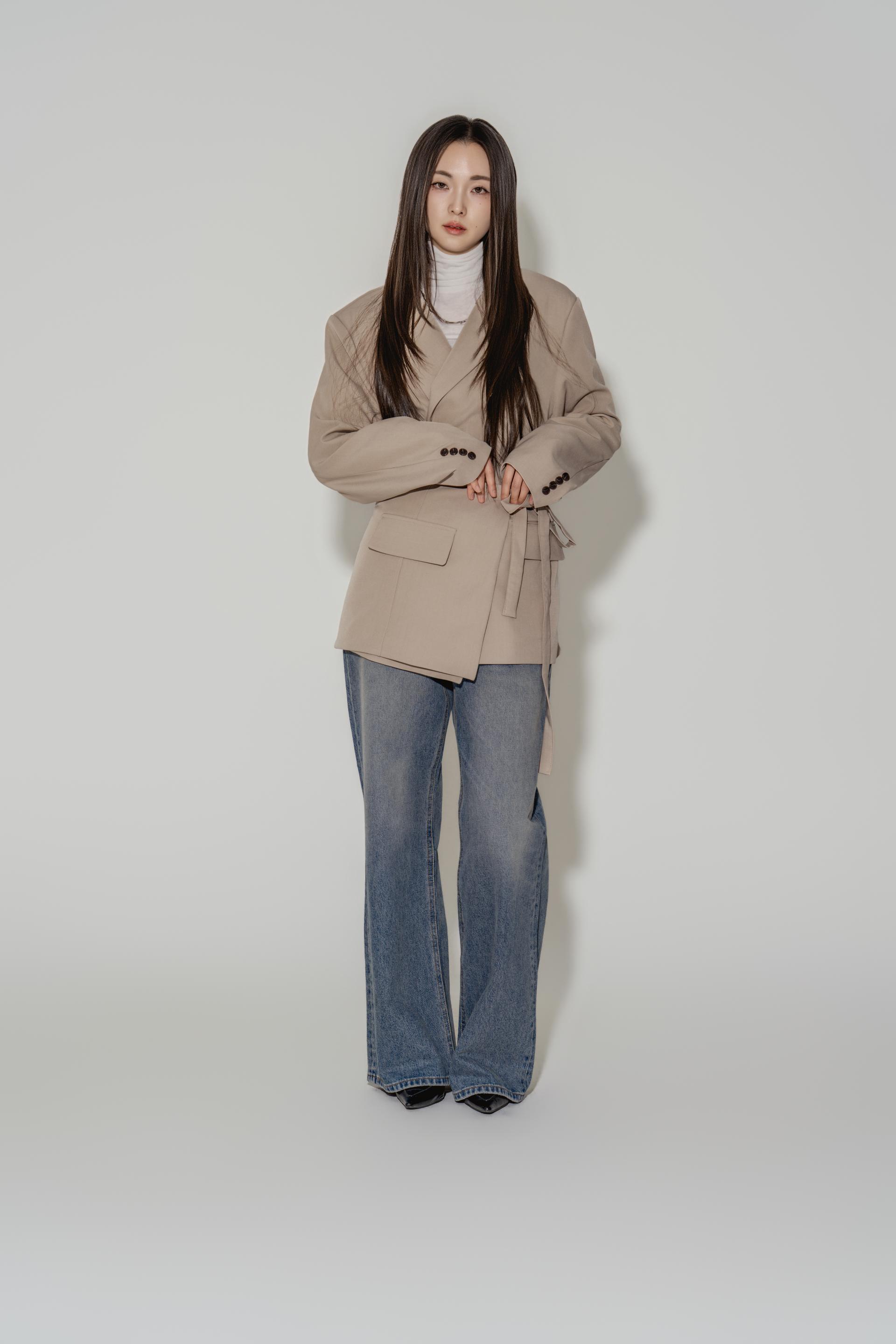 • 테일러드 숄카라에 랩 클로징을 더해, 기본 블레이저보다 실루엣이 또렷한 자켓입니다.