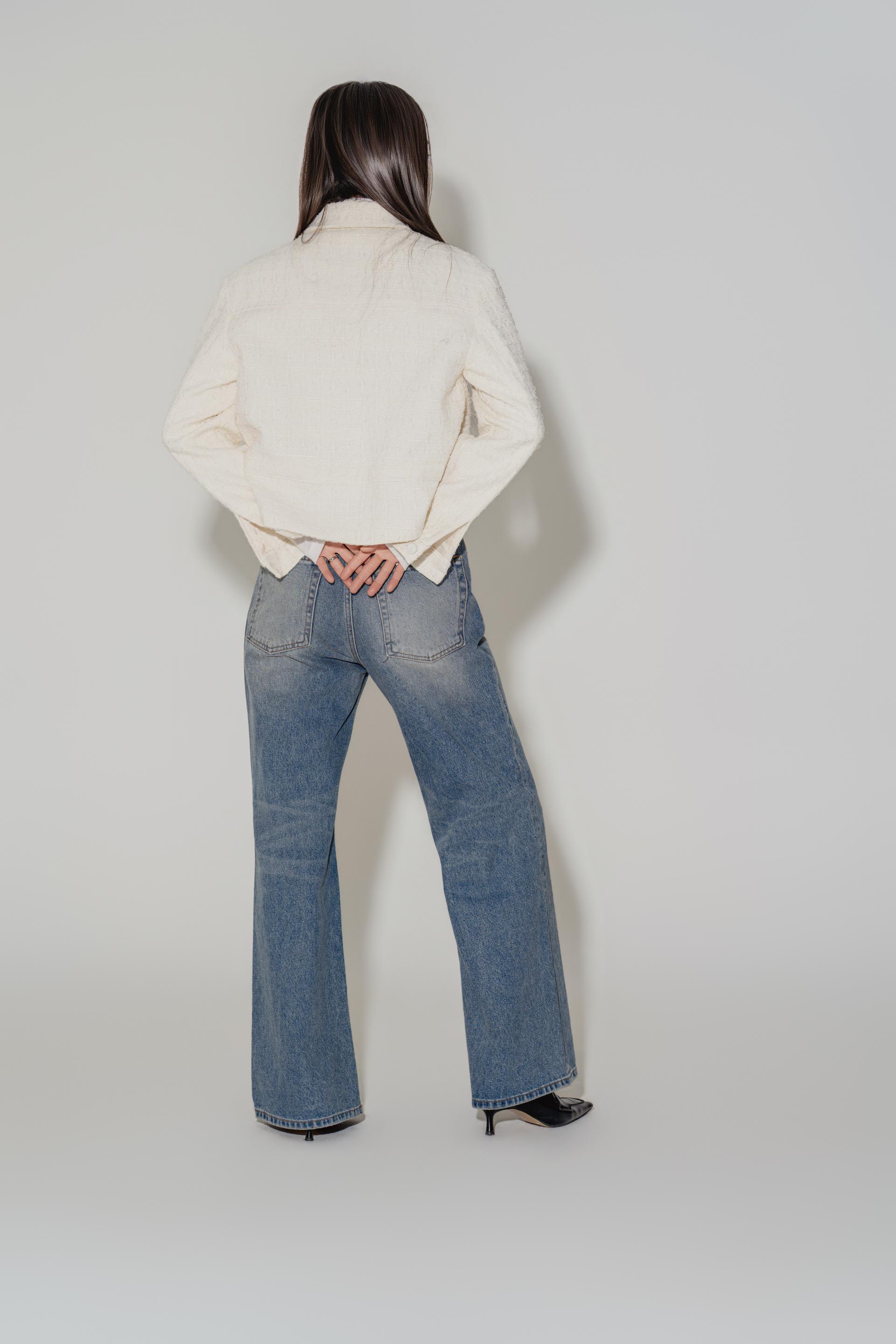 • 화이트 톤의 트위드 텍스처로 표면감이 또렷하게 살아있는 크롭 자켓입니다.