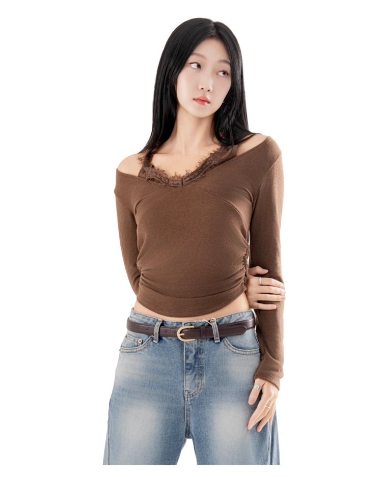 • 넥 라인 안쪽에 레이스 트리밍 이너가 레이어드된 디자인입니다.