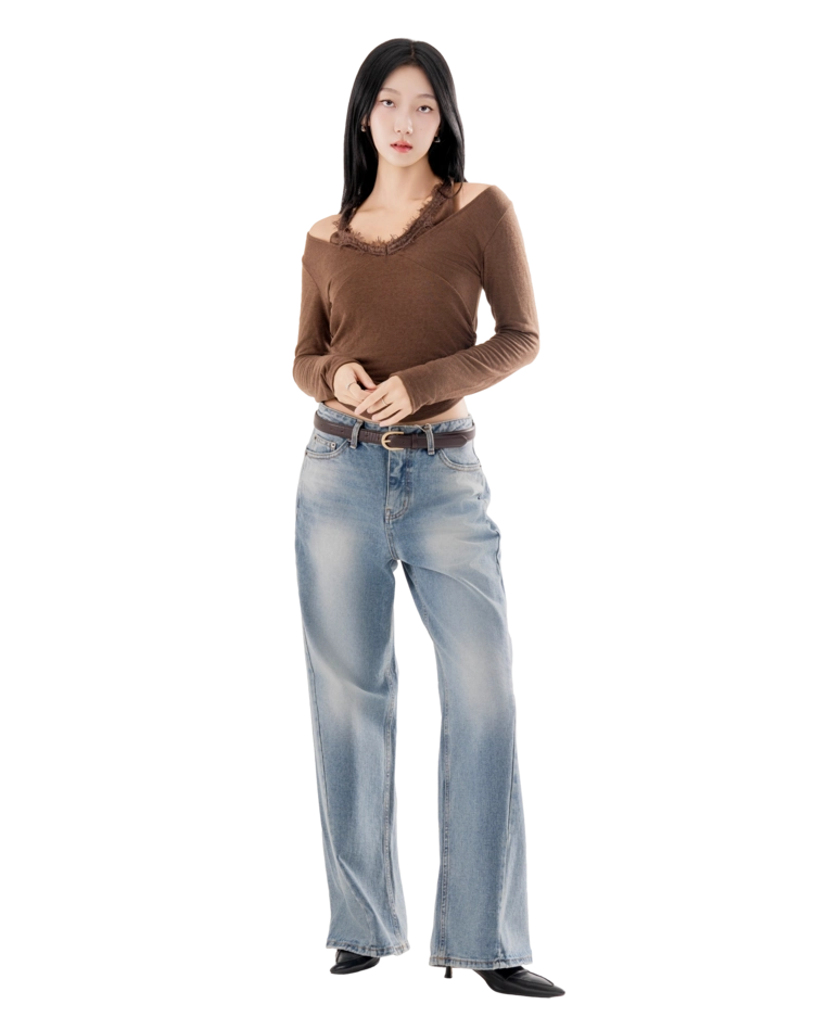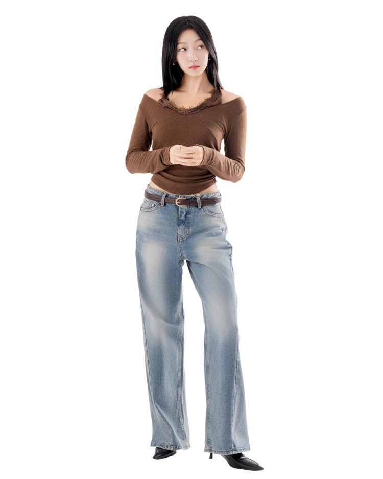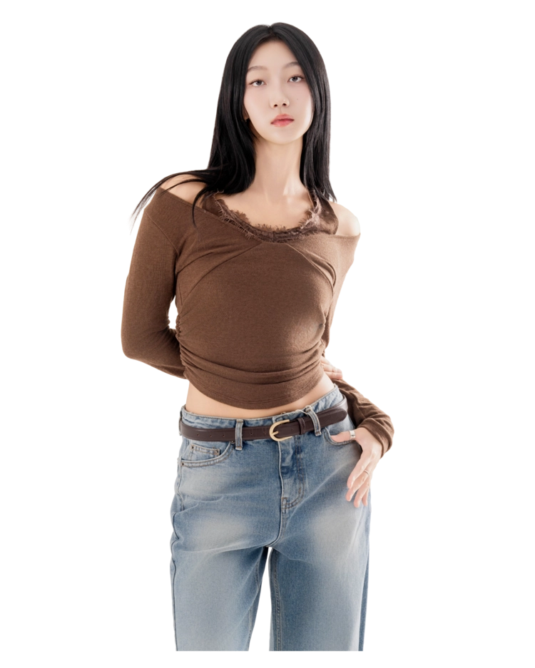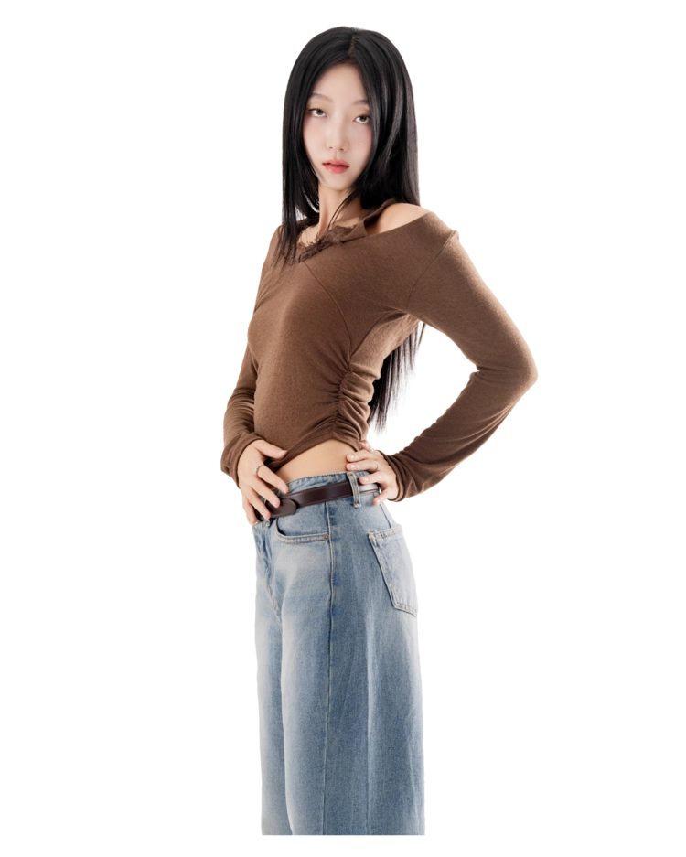 • 와이드한 오프숄더 넥으로 쇄골 라인이 자연스럽게 드러납니다.
