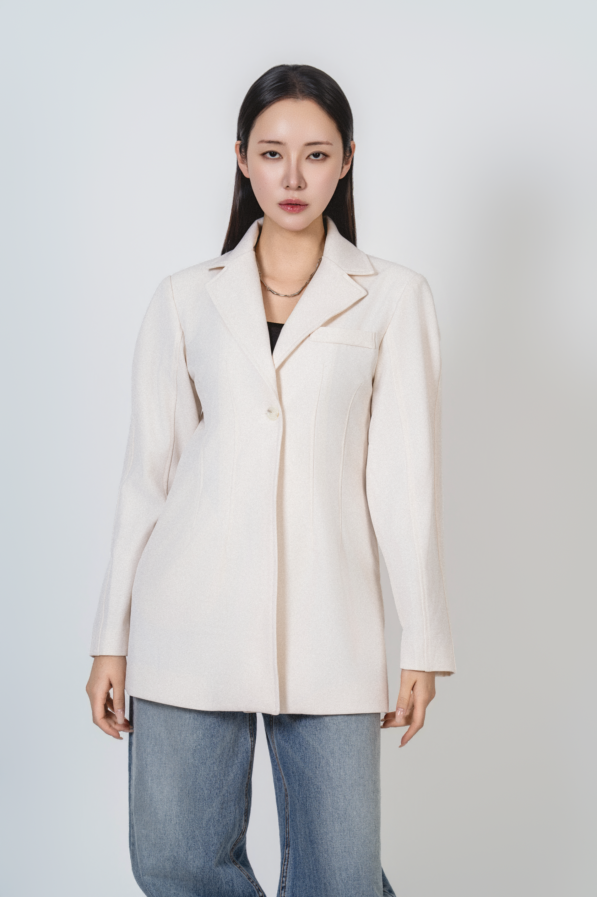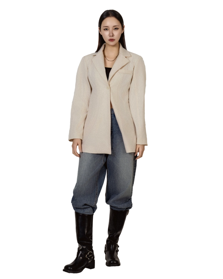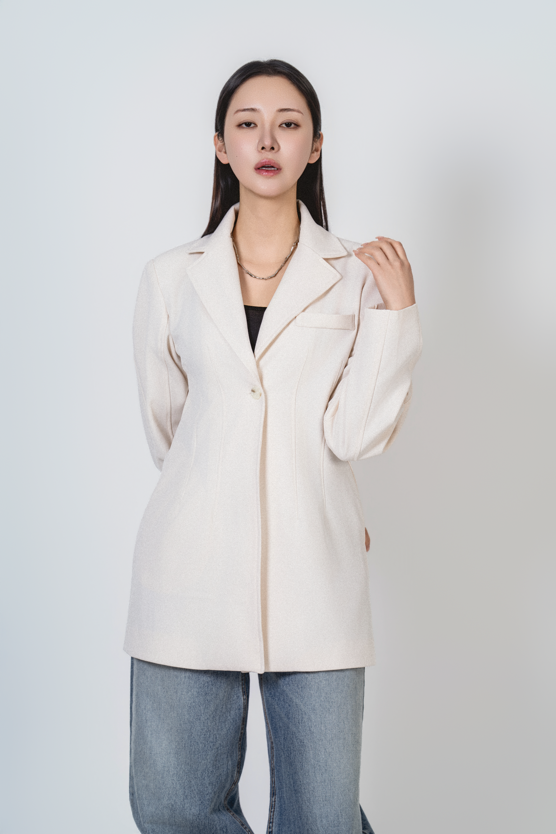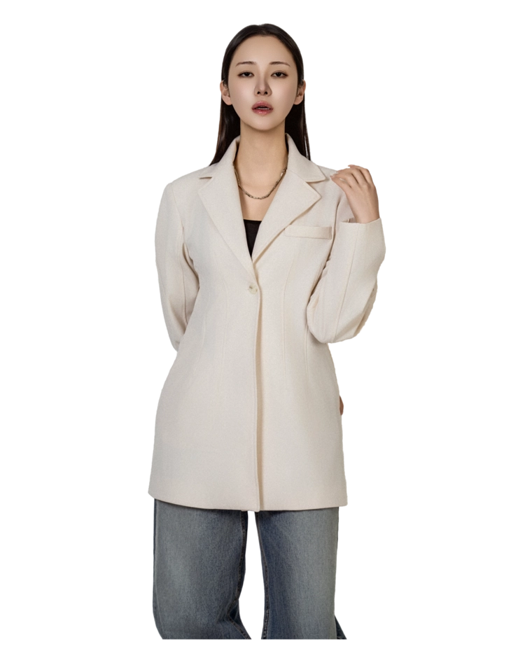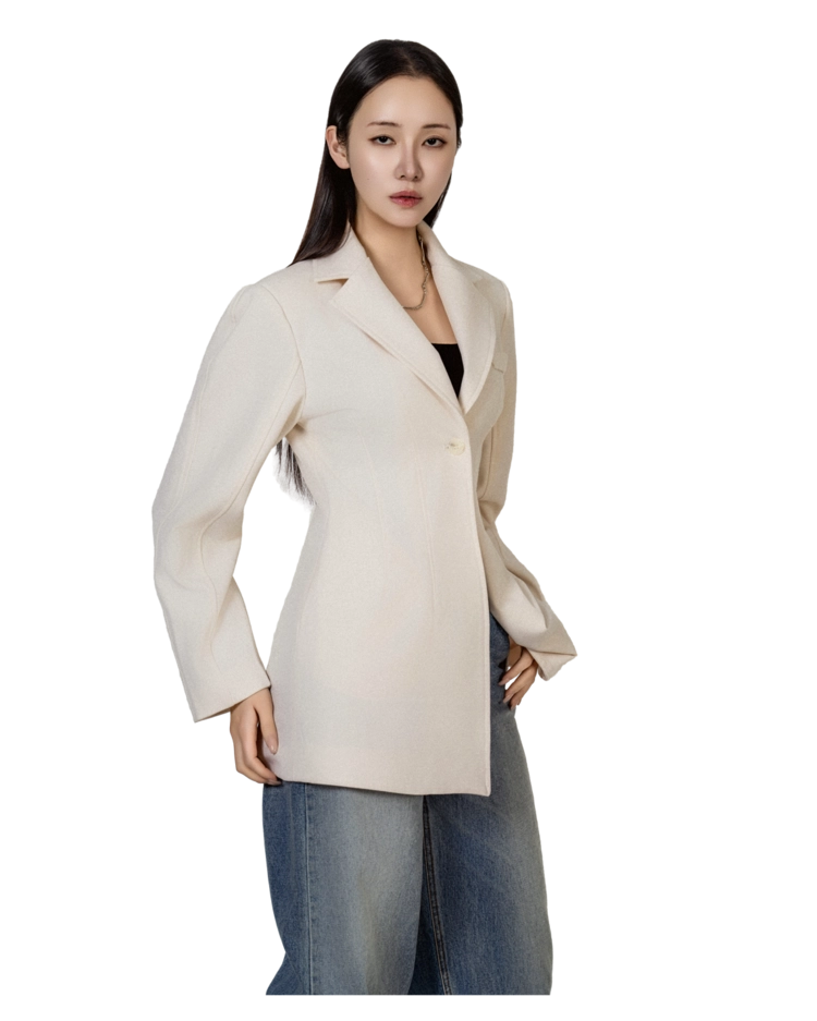 • 미니멀한 원버튼 클로징으로 앞판이 깔끔하게 떨어지고, 이너를 가리지 않게 중심을 잡아줍니다.