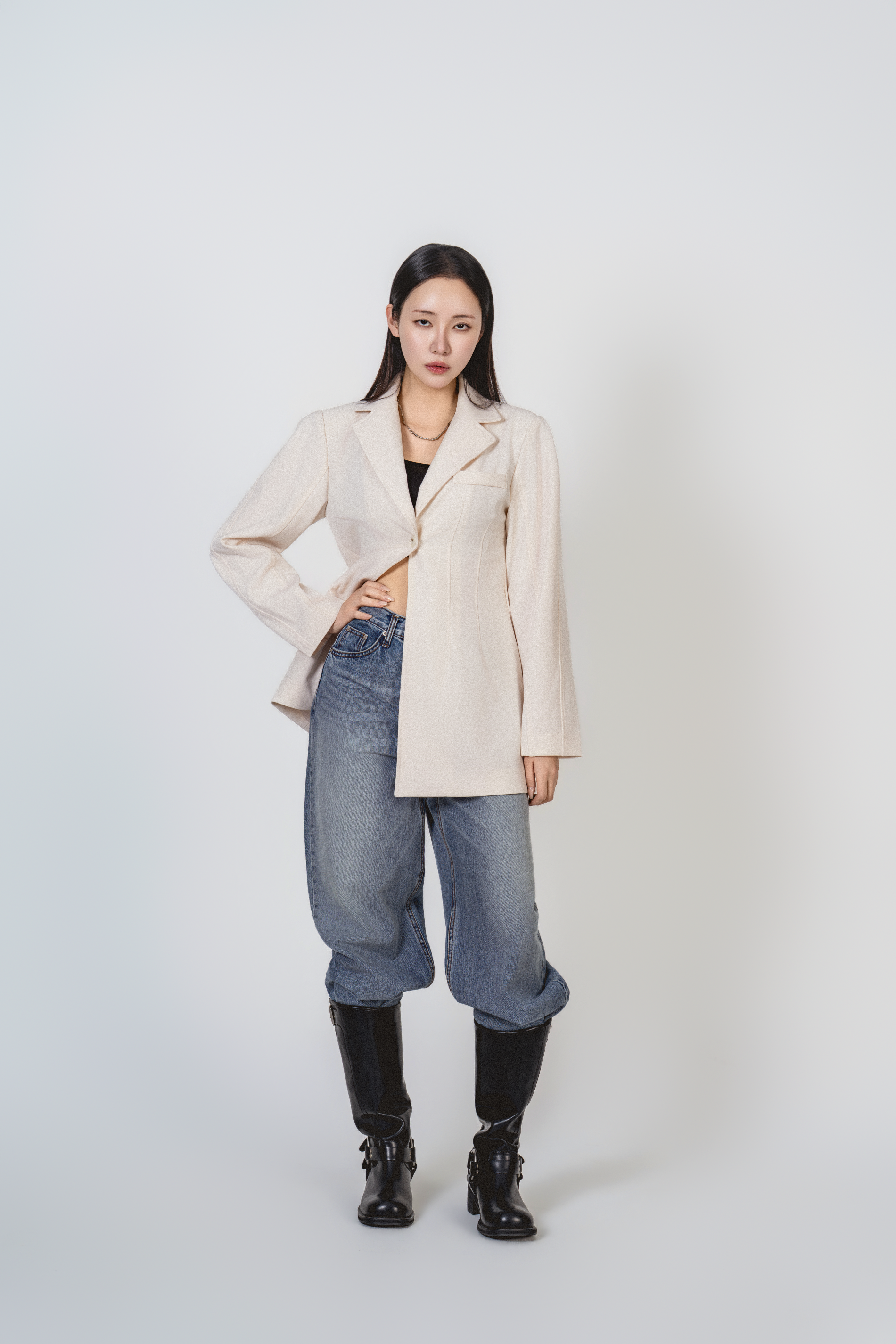 • 어깨는 힘 있게 잡아주고 바디는 과하게 조이지 않게 떨어져, 슬림한 실루엣만 남기는 핏 밸런스가 특징입니다.
