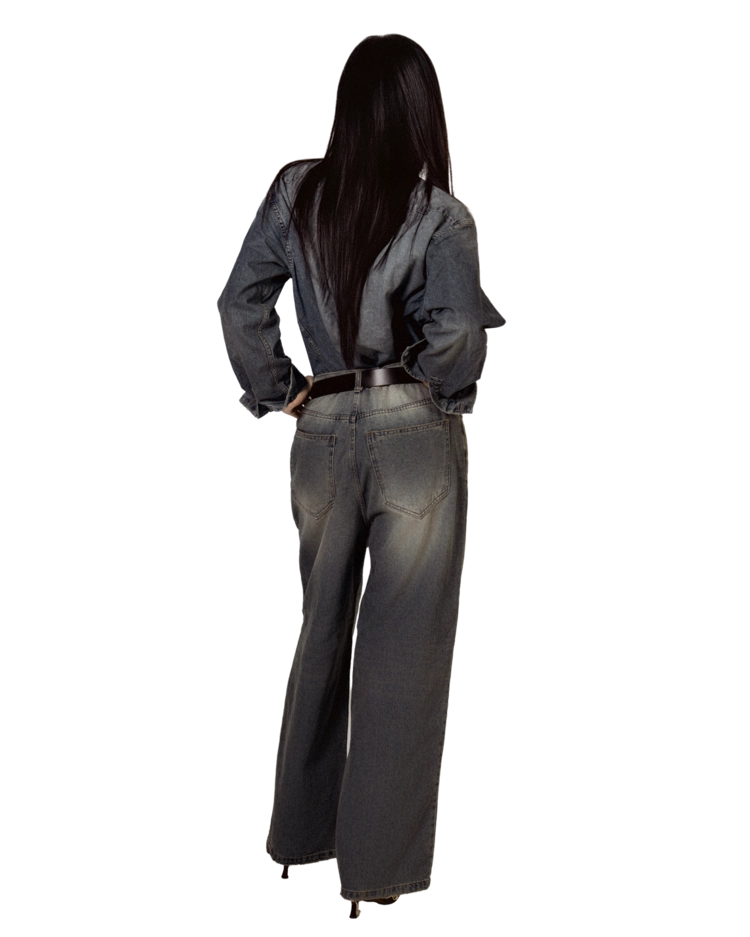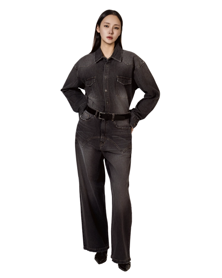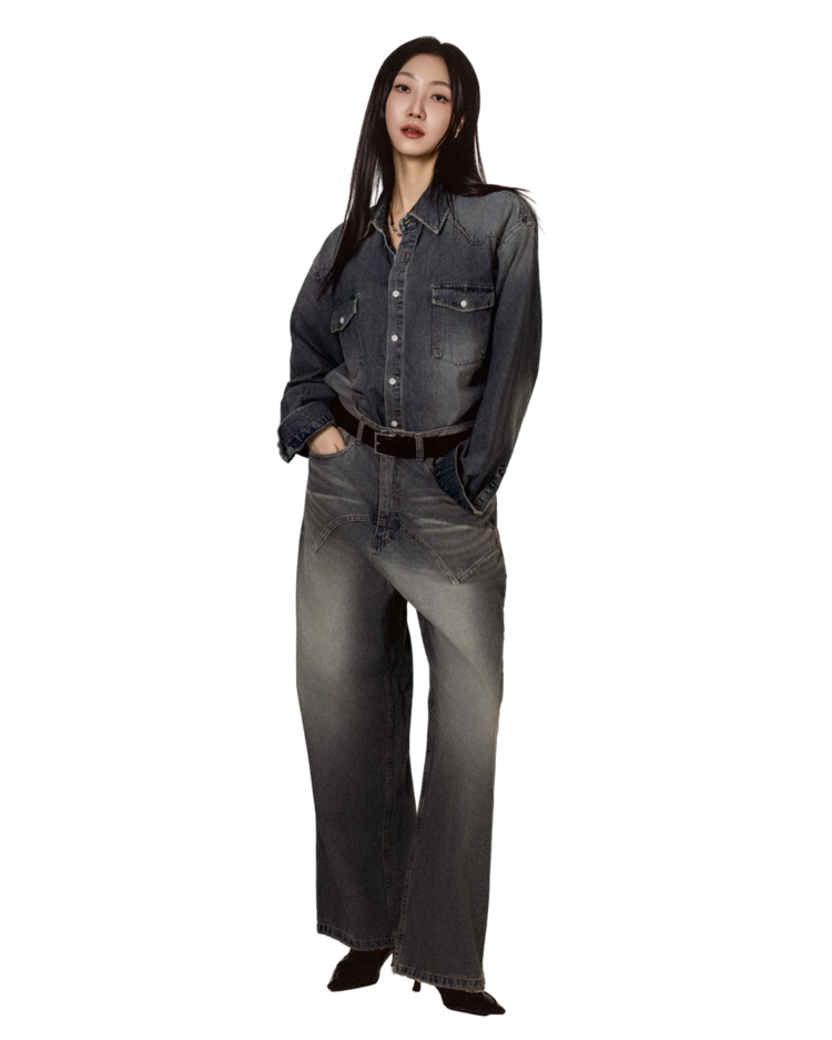 • 셔츠+팬츠를 한 번에 맞춘 데님 셋업으로, 상하의 톤과 워싱 흐름을 통일해 완성도를 높였습니다.
