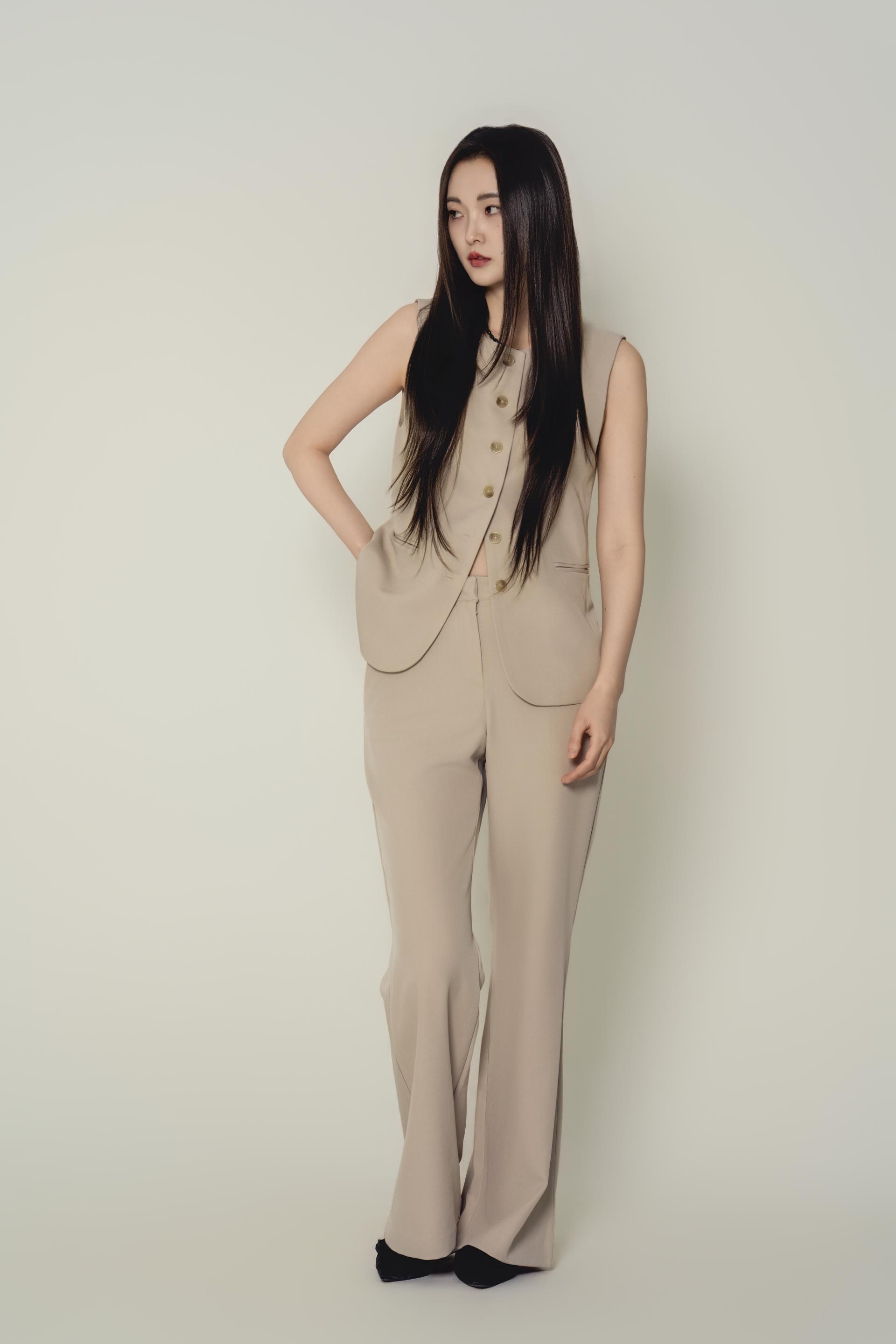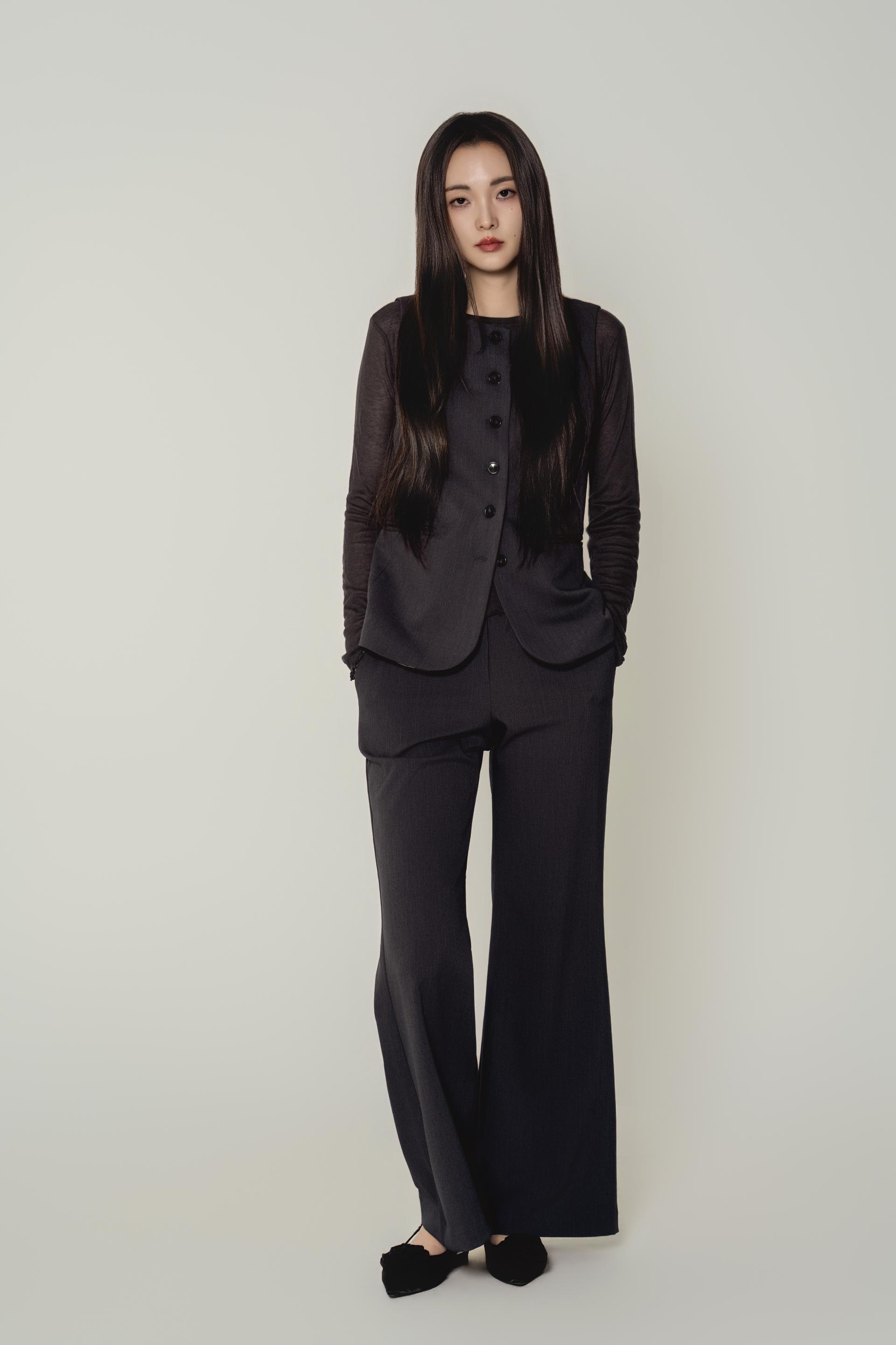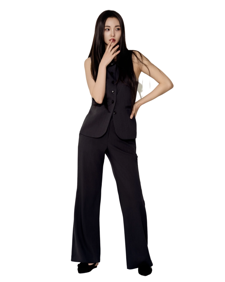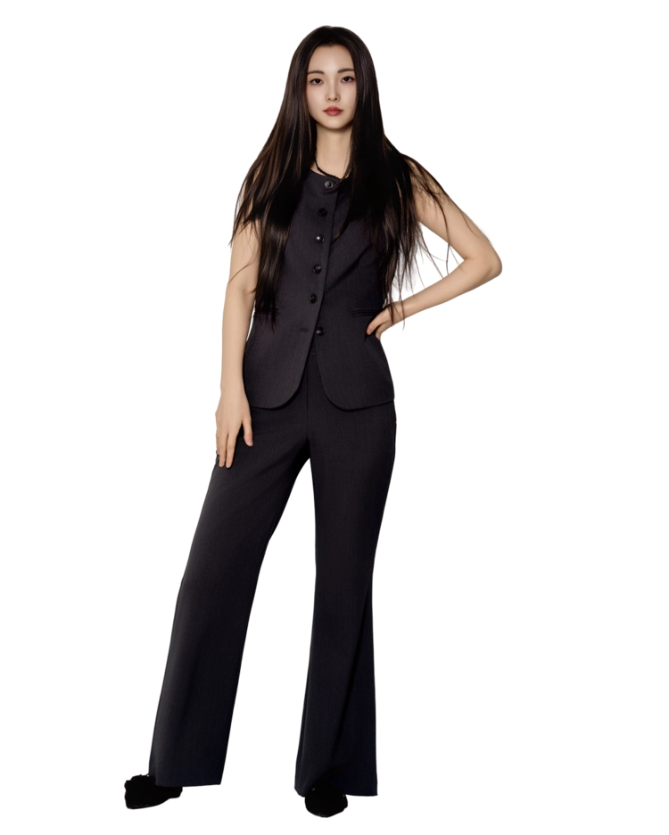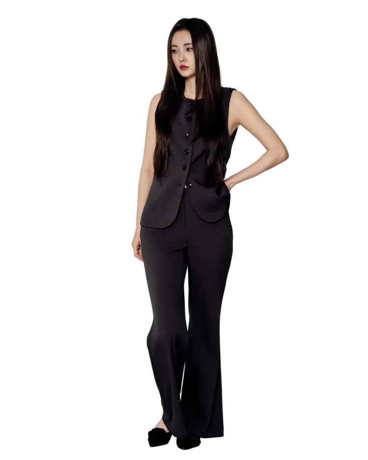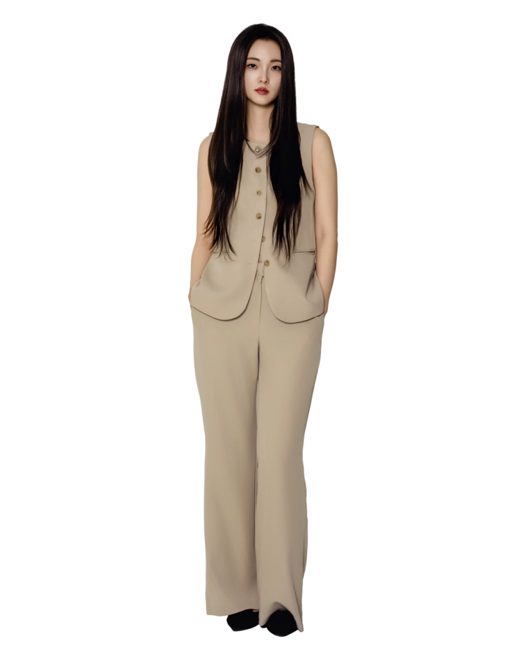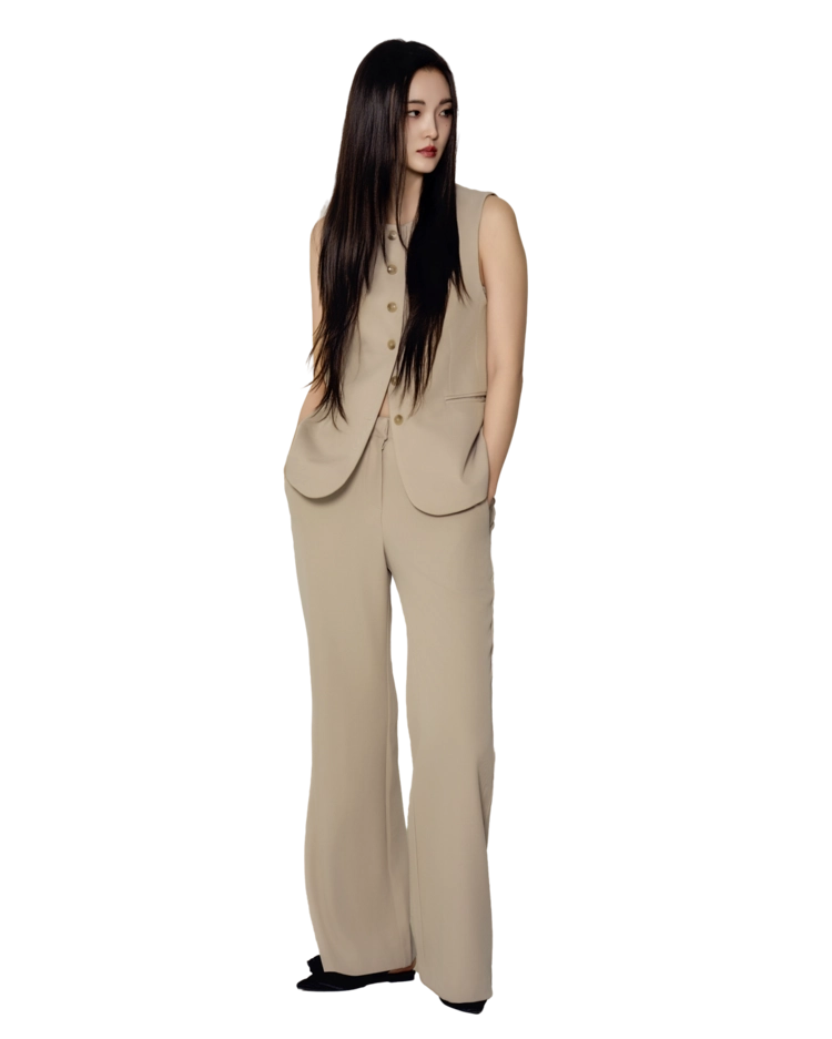 • 베스트와 슬랙스를 한 톤으로 맞춘 셋업 구성으로, 한 벌만으로 실루엣이 완성되는 타입입니다.