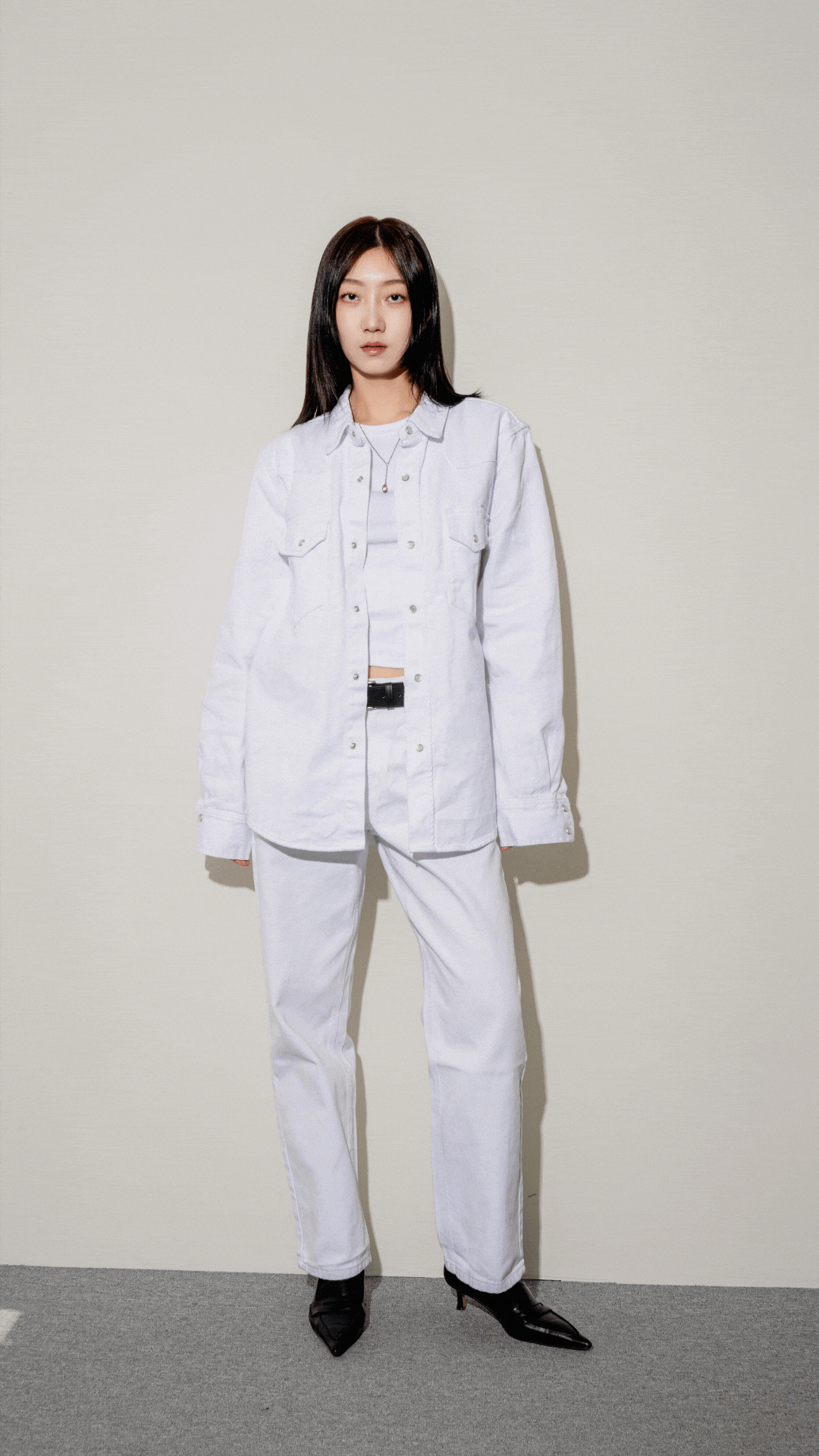 “자연스럽고 캐주얼하지만, 디테일 하나하나가 무드를 잡아주는 셋업이에요. 웨스턴에서 영감 받은 포인트들이 과하지 않아 데일리로 충분히 즐길 수 있죠.”