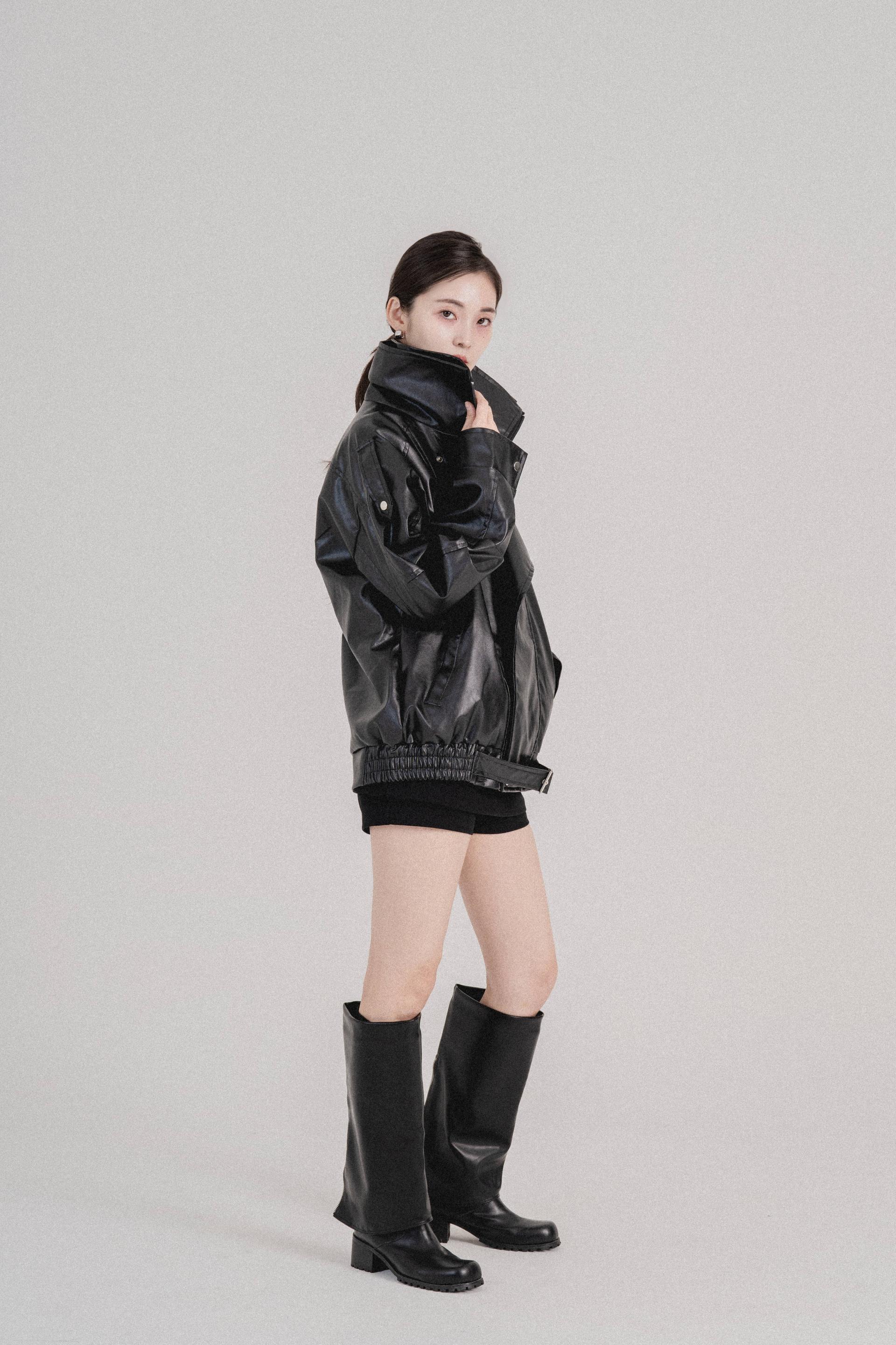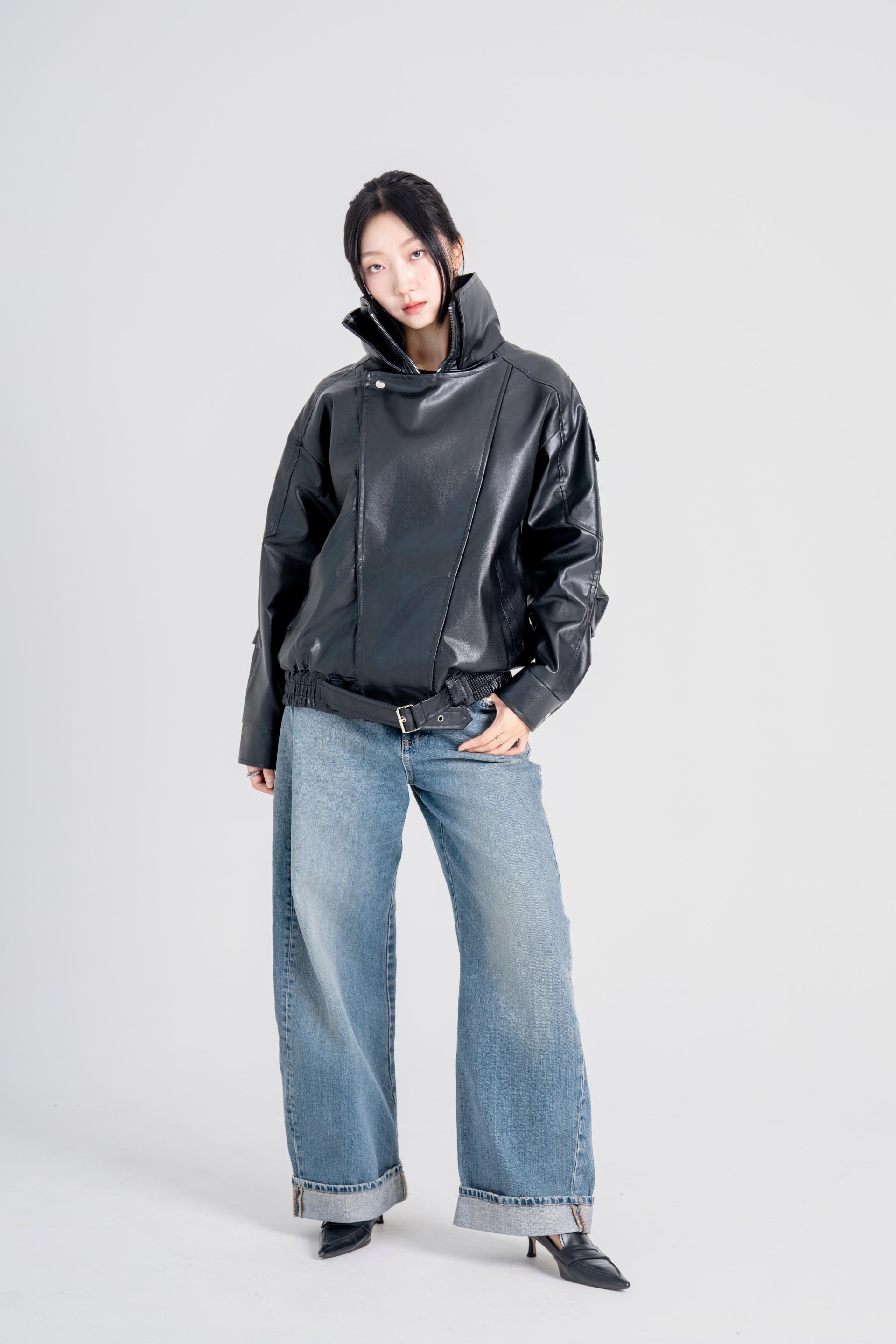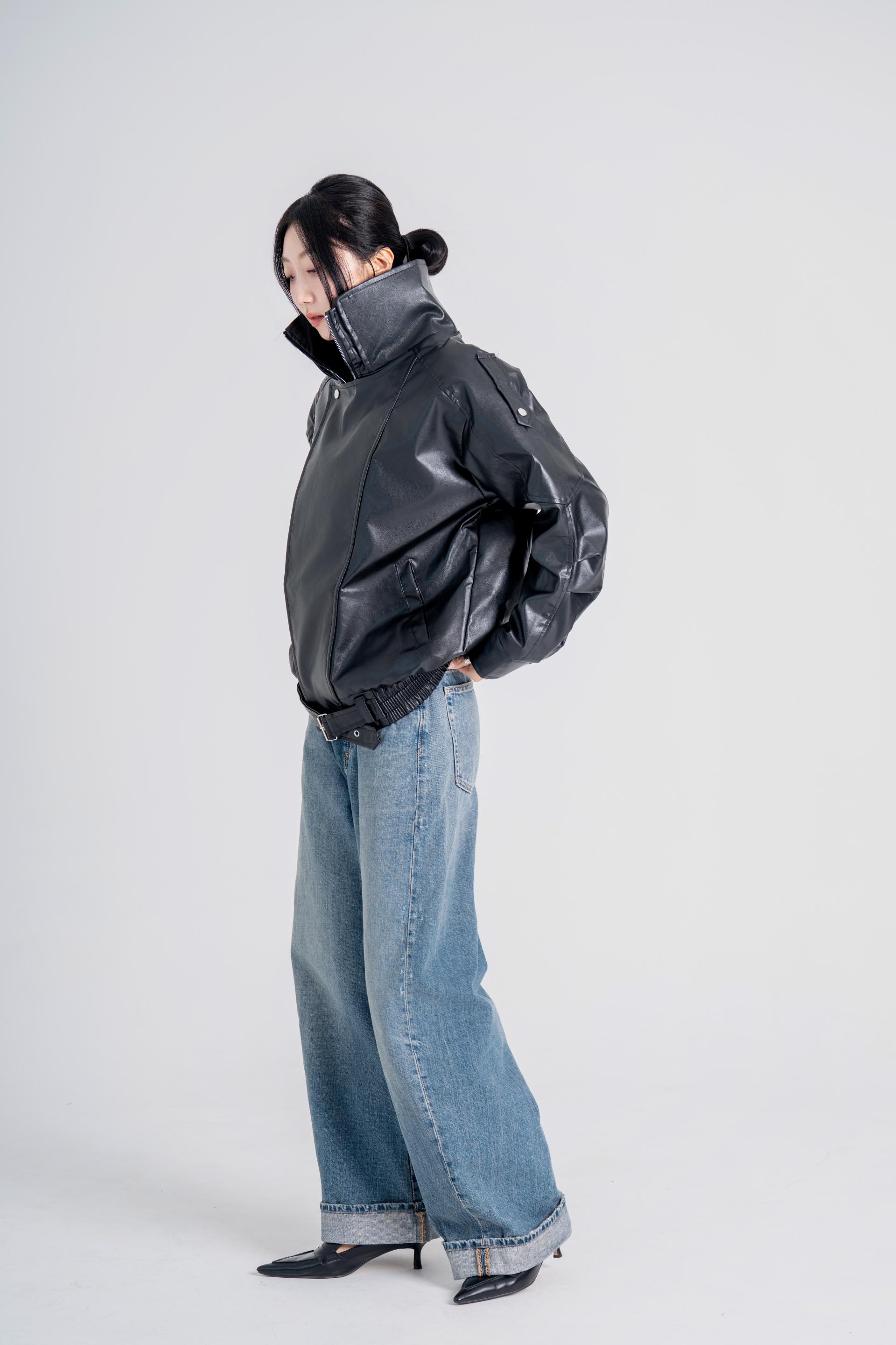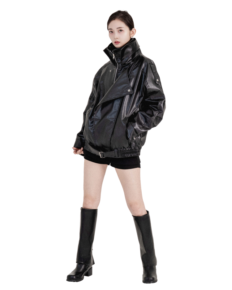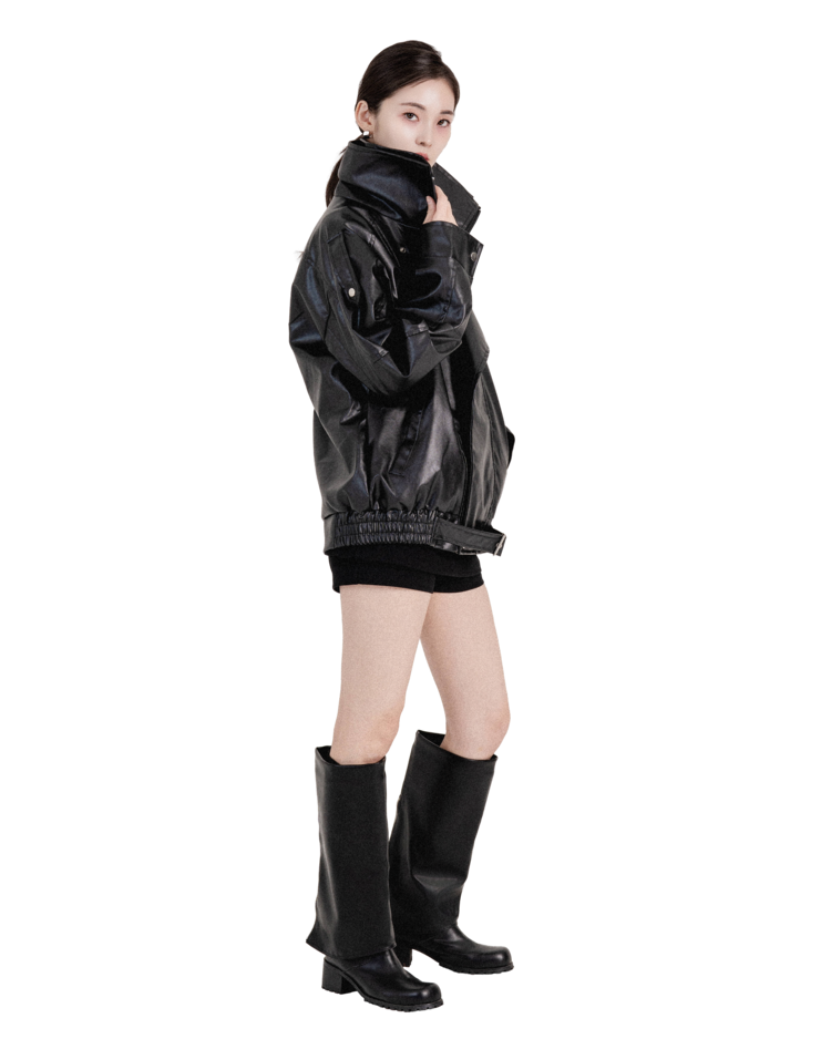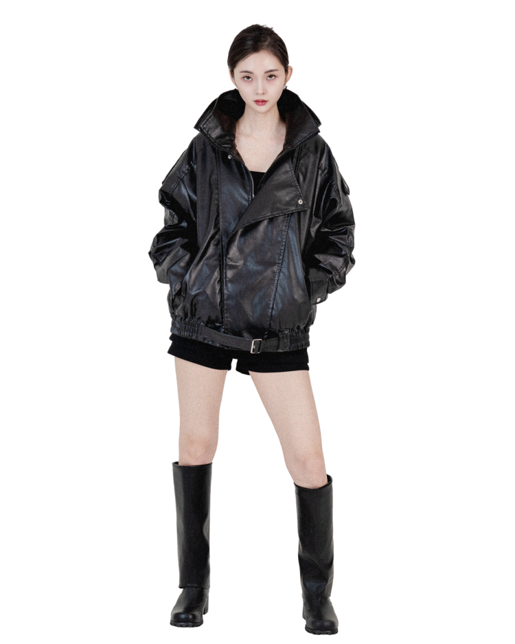 하이넥벨티드 오버사이즈레더자켓