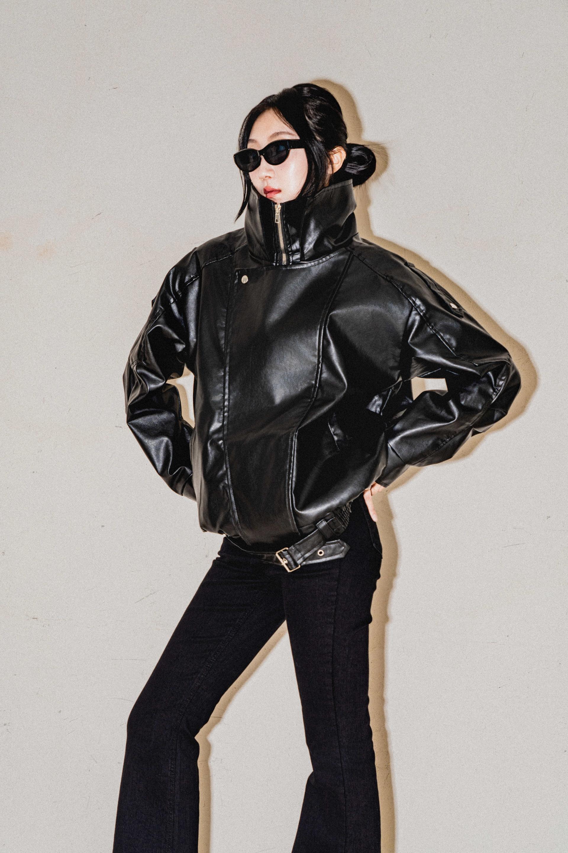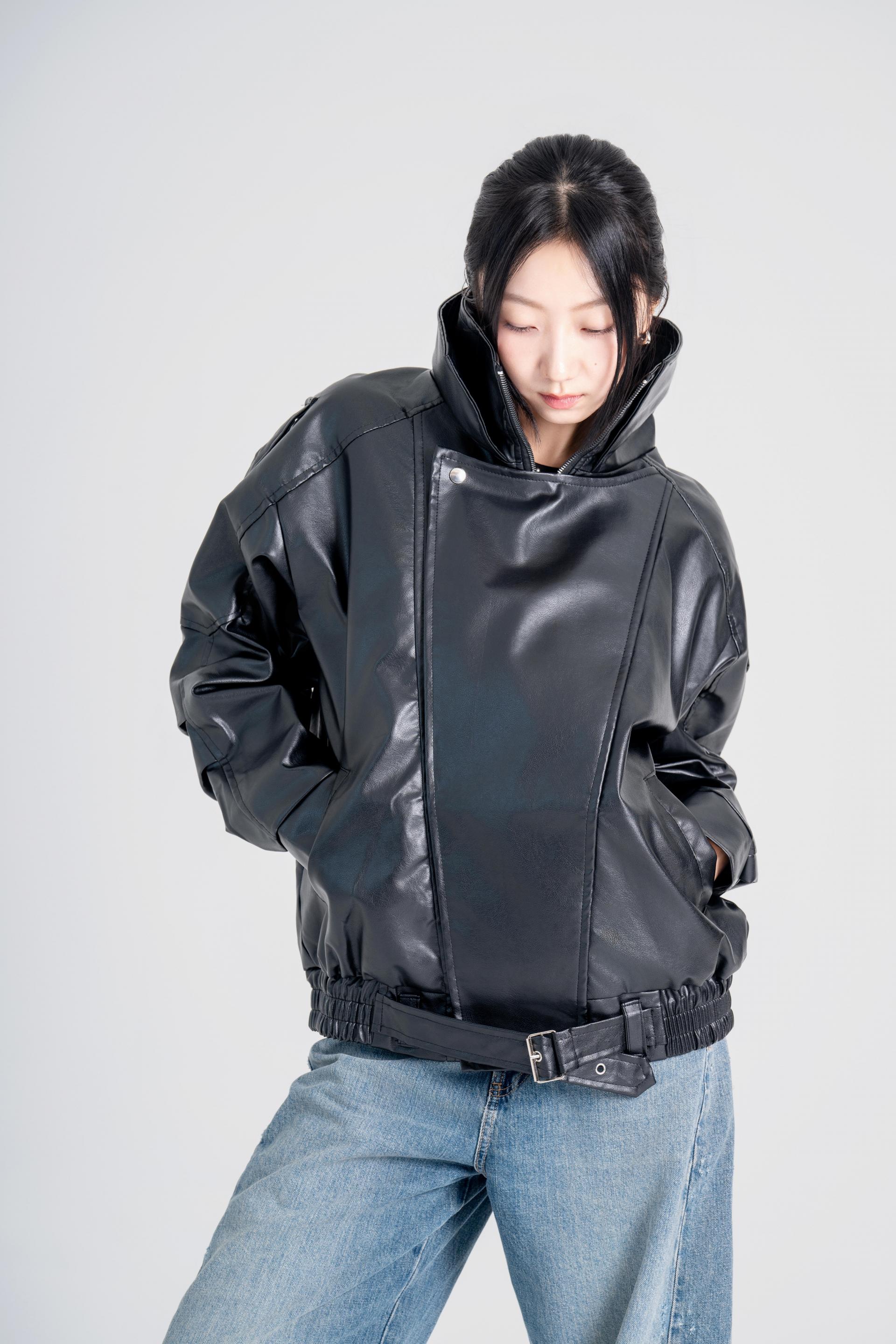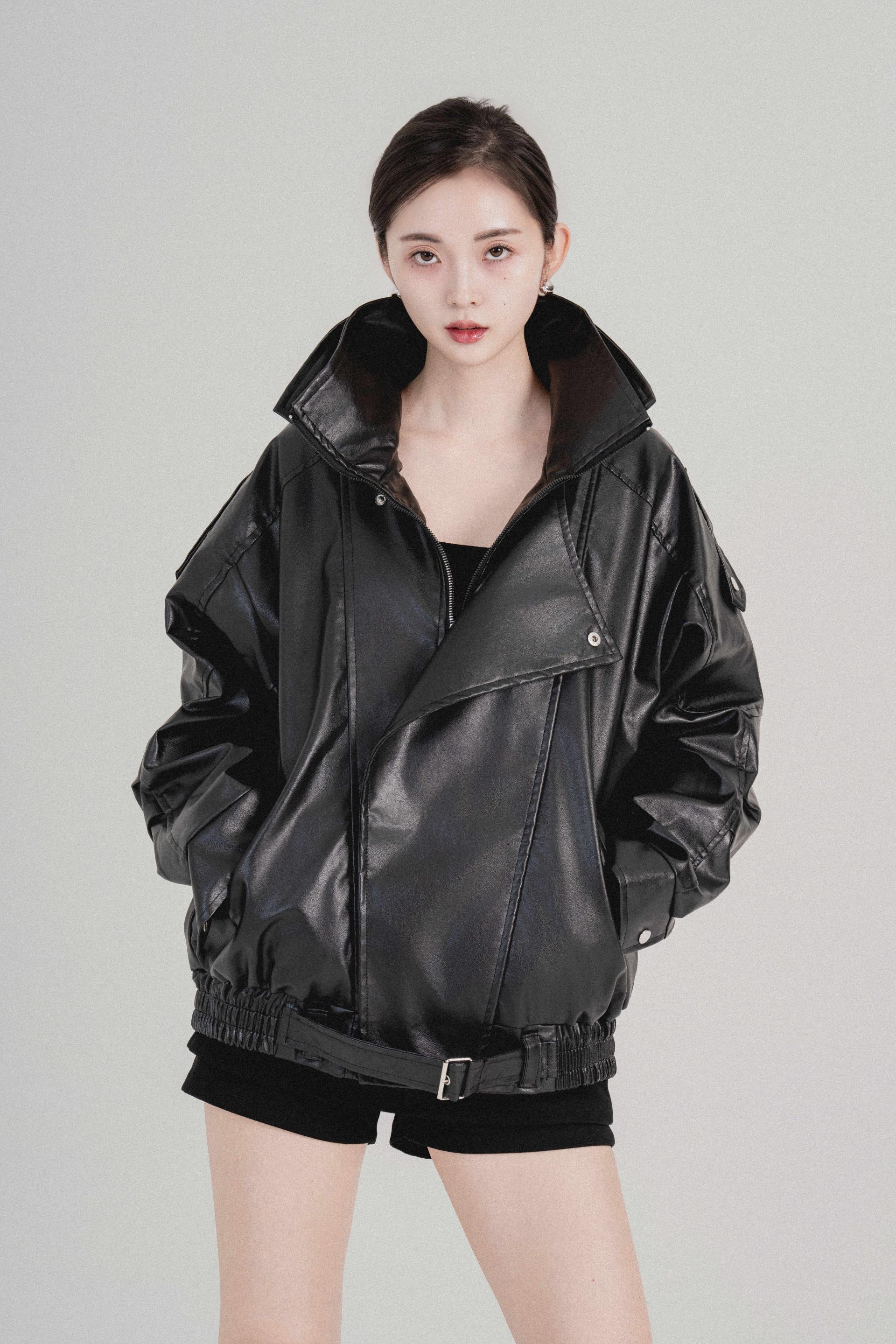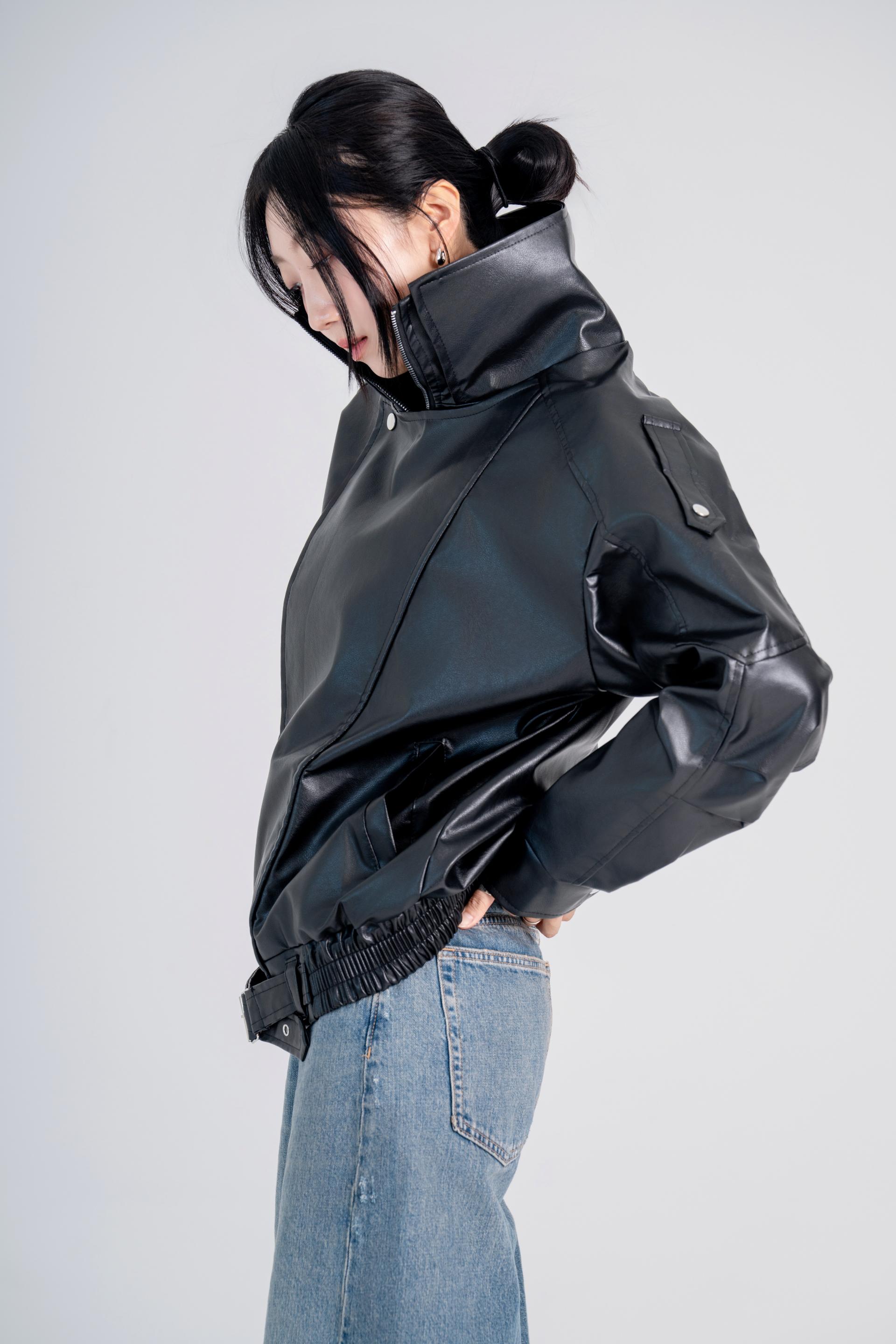 하이넥벨티드 오버사이즈레더자켓