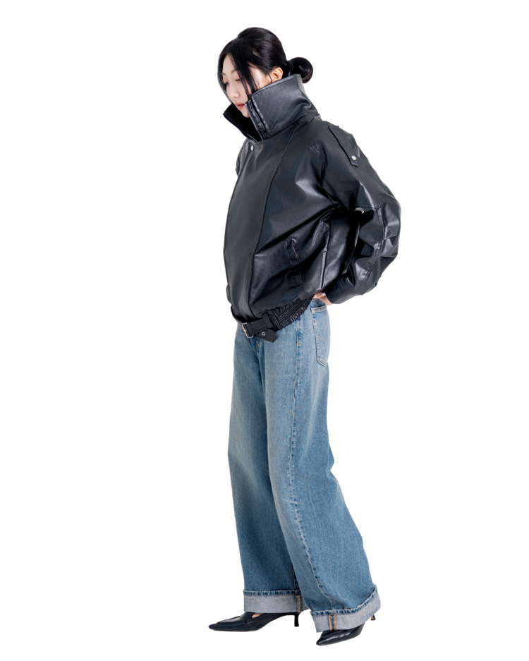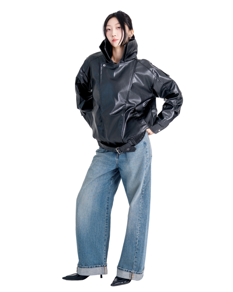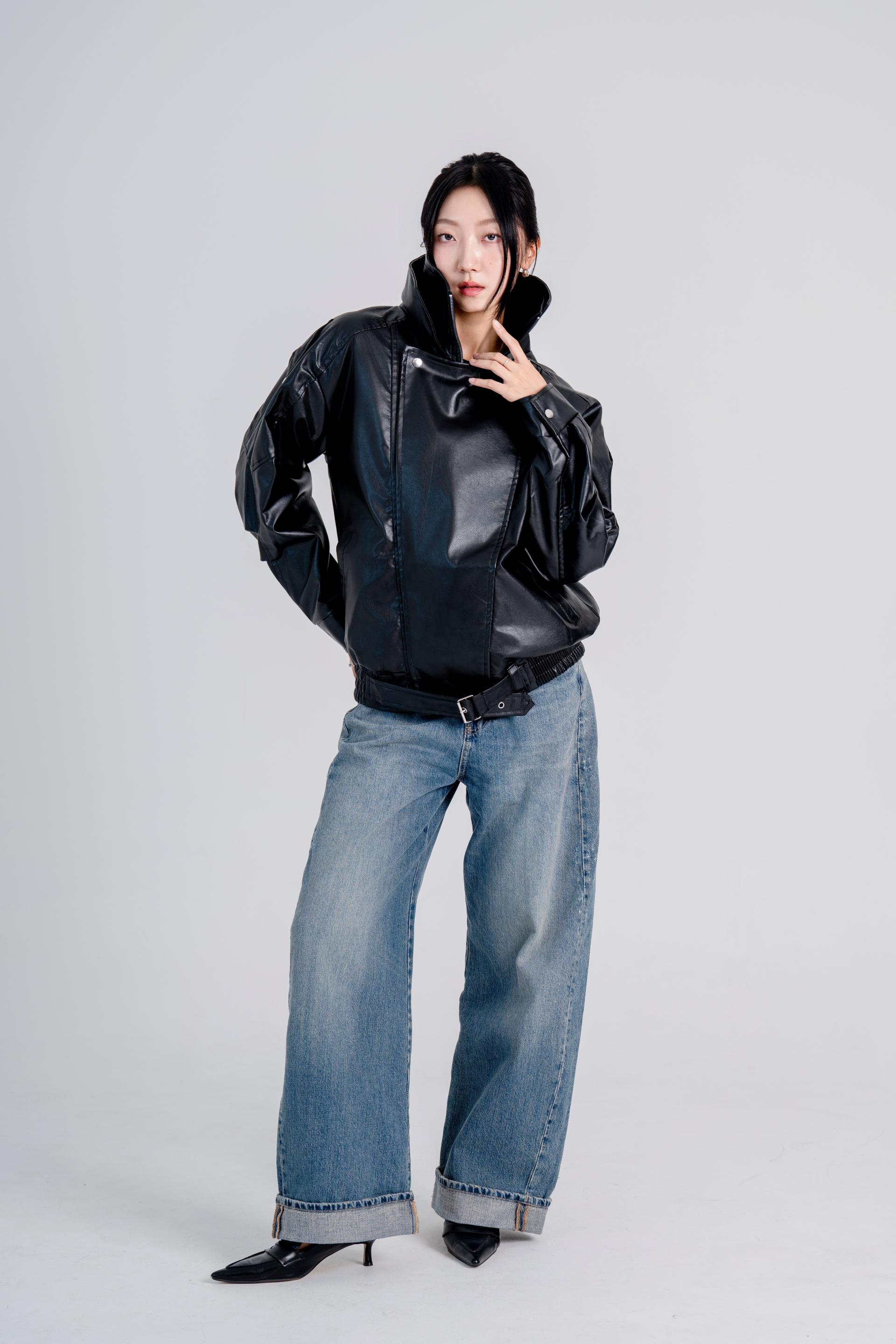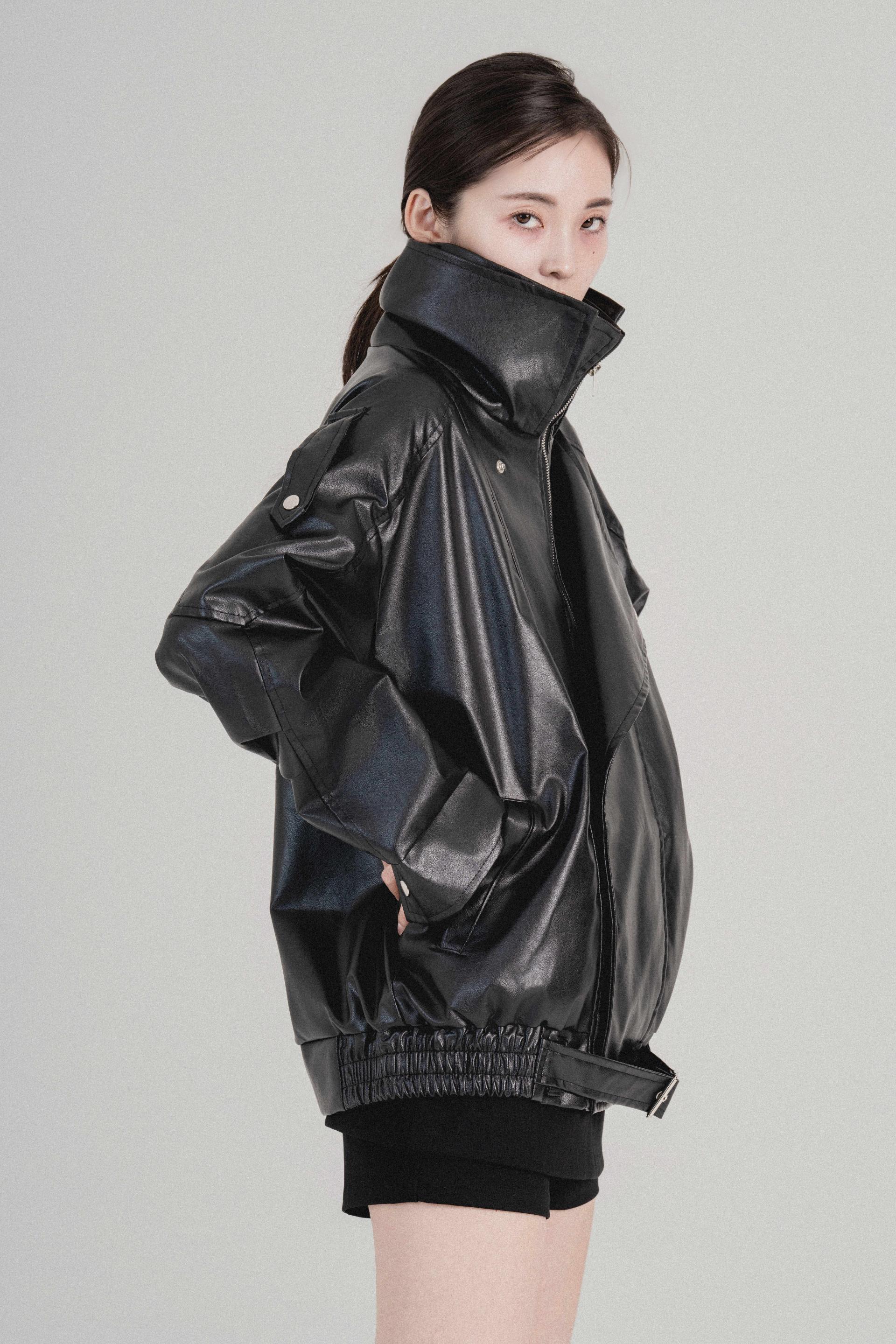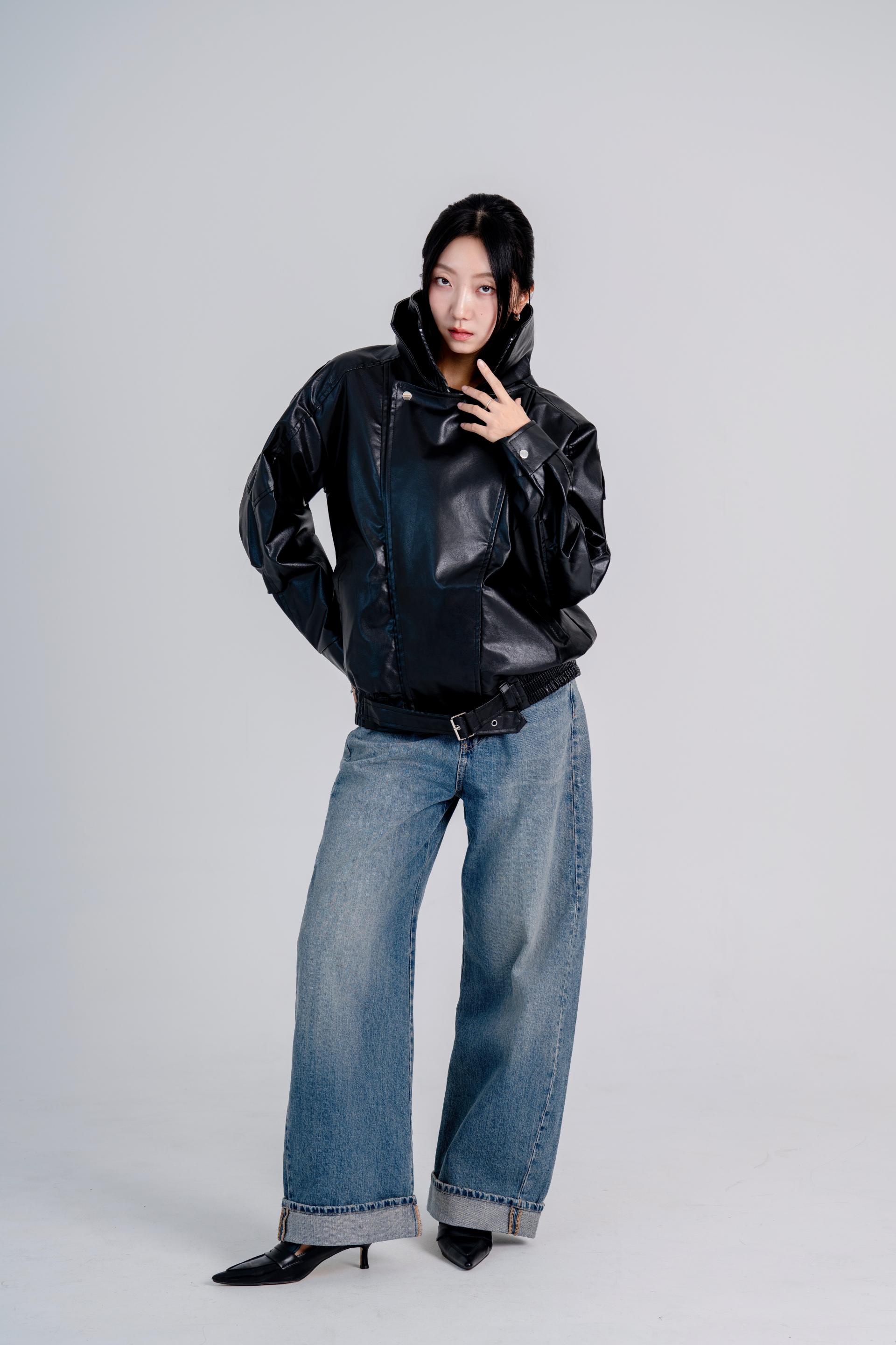 하이넥벨티드 오버사이즈레더자켓