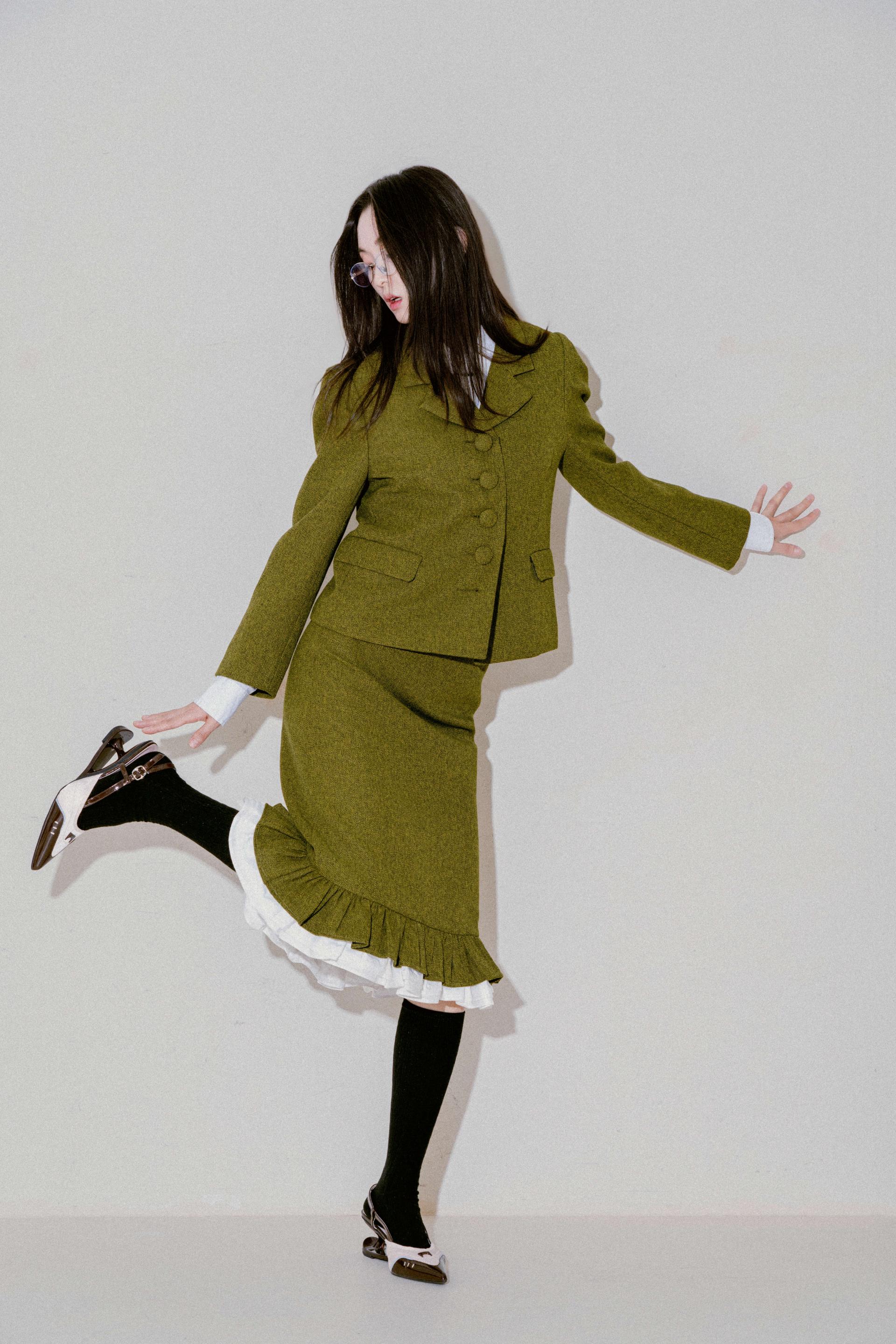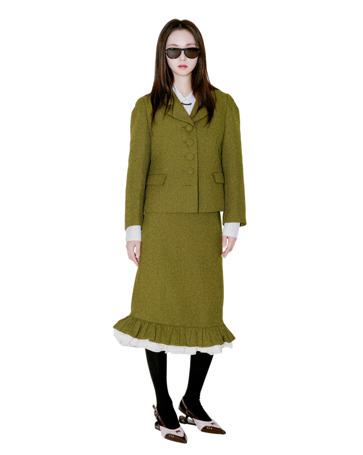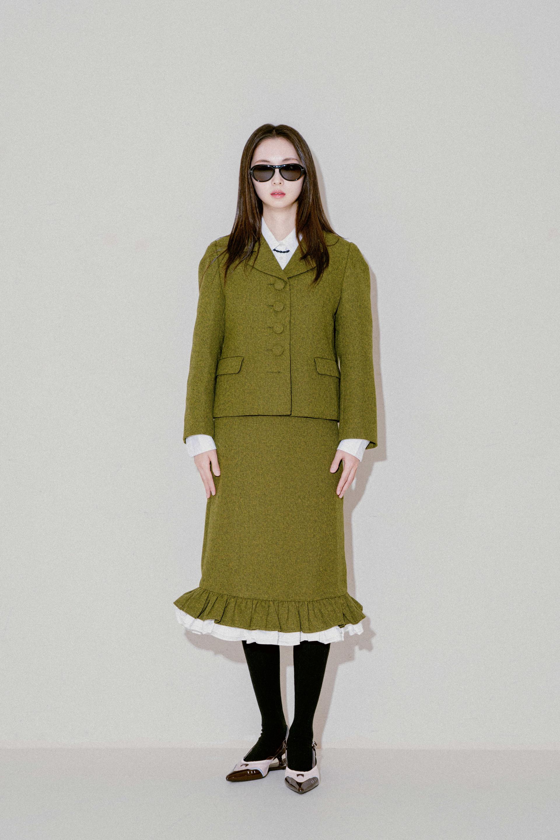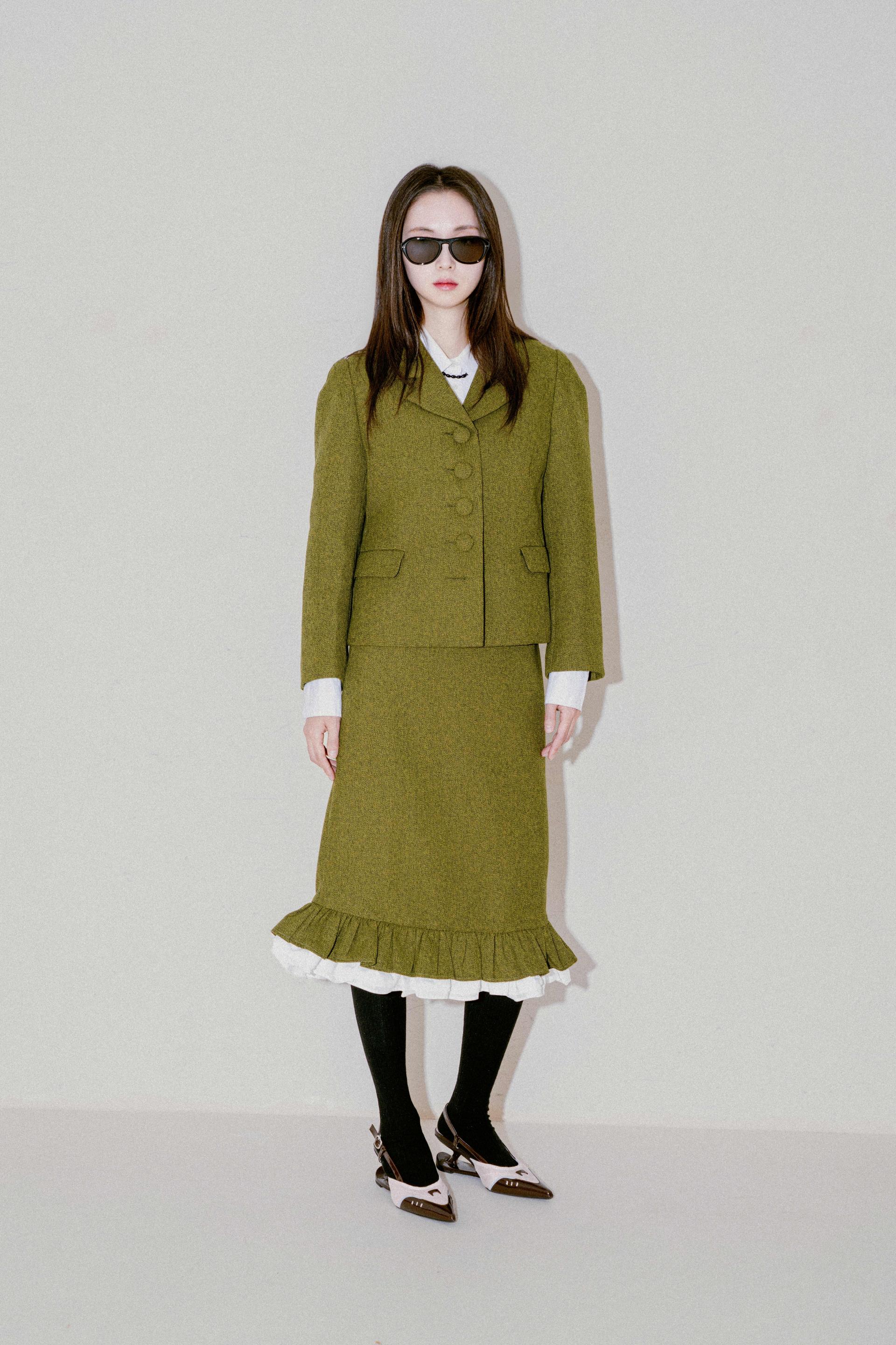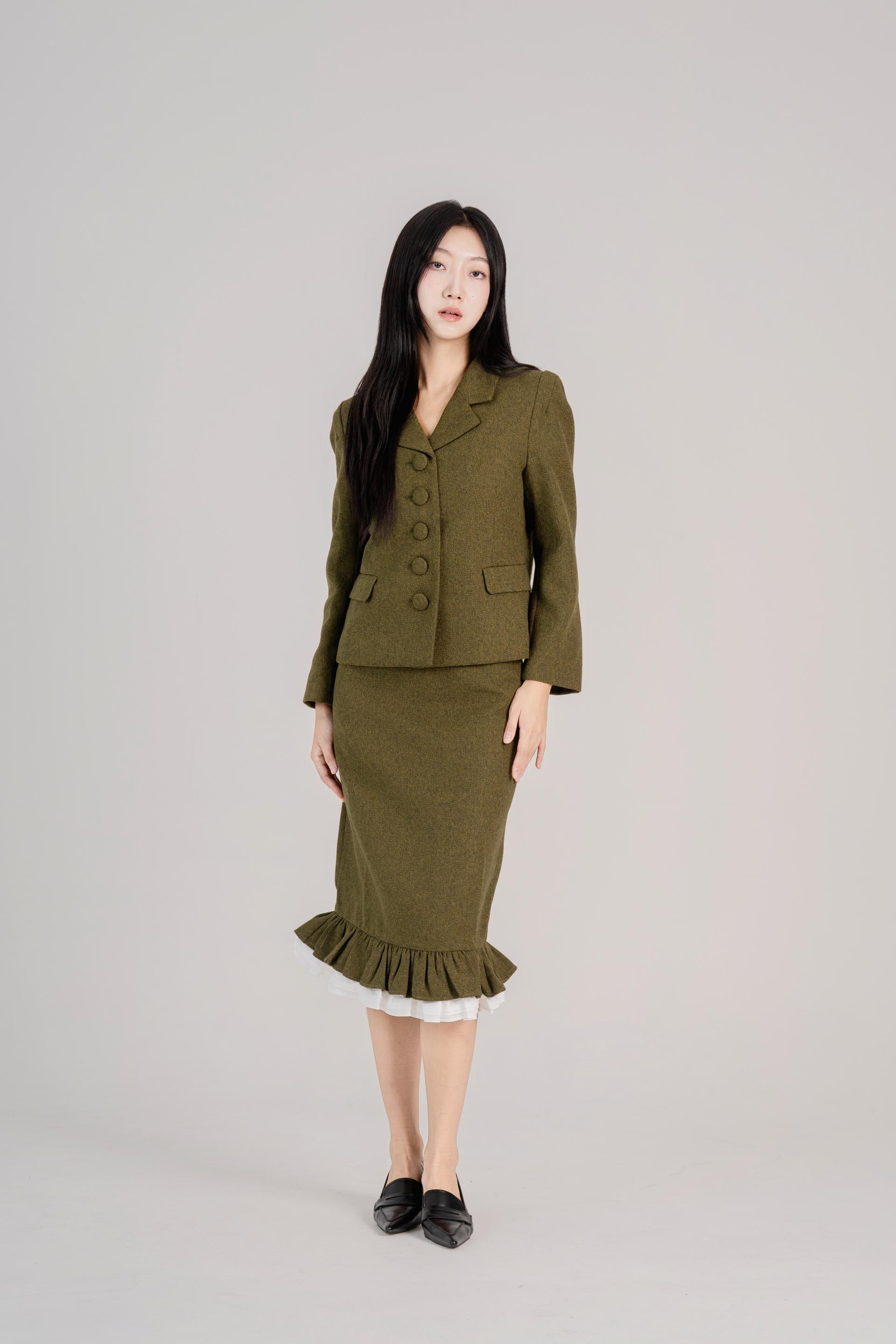 버튼프릴 페플럼셋업 올리브그린