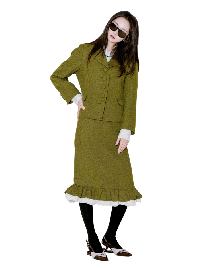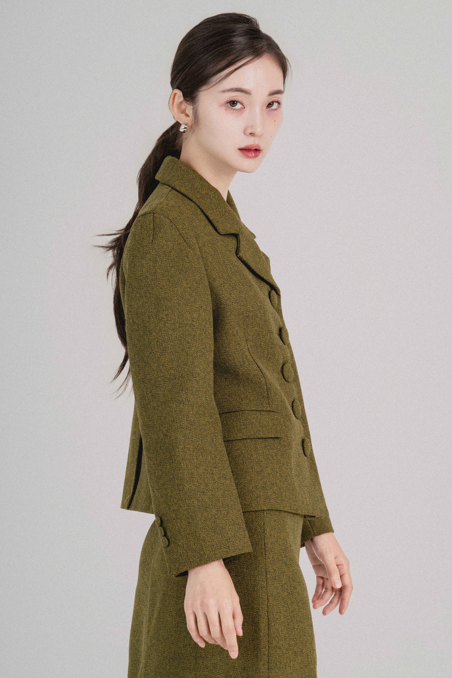 "처음에 이 자켓을 입었을 때 실루엣이 깔끔하게 떨어져서 놀랐어요. 버튼이 포인트가 되면서도 부담스럽지 않아 마음에 들었고, 셋업이지만 따로따로 입기에도 좋아요."