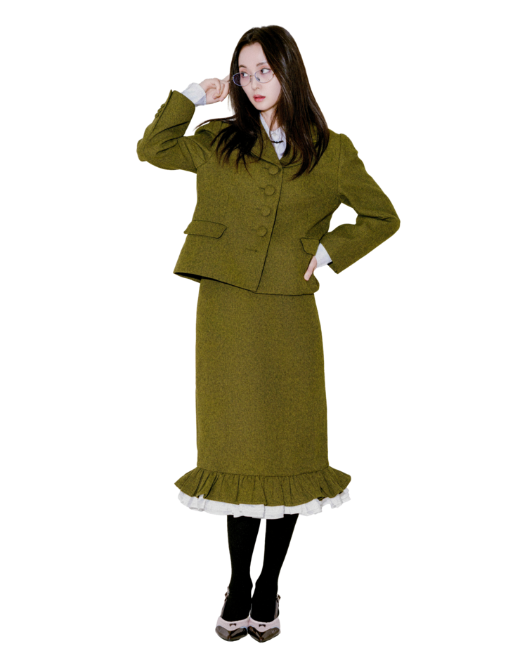 • 하의는 A라인 미니 스커트로 구성되어, 셋업으로 착용 시 매끄러운 실루엣이 완성됩니다.