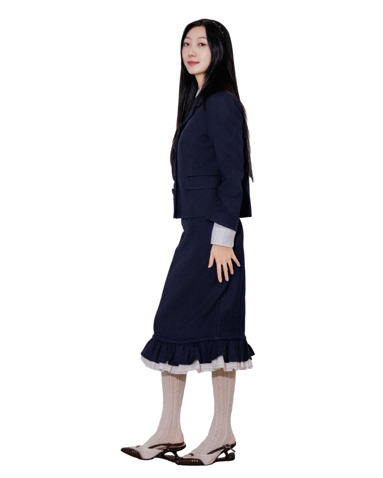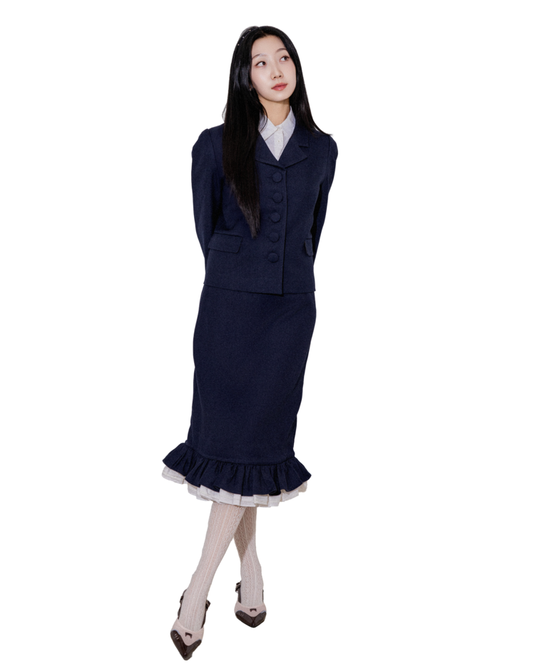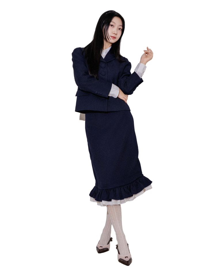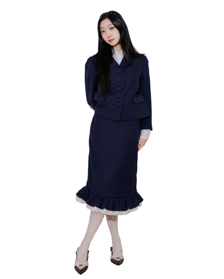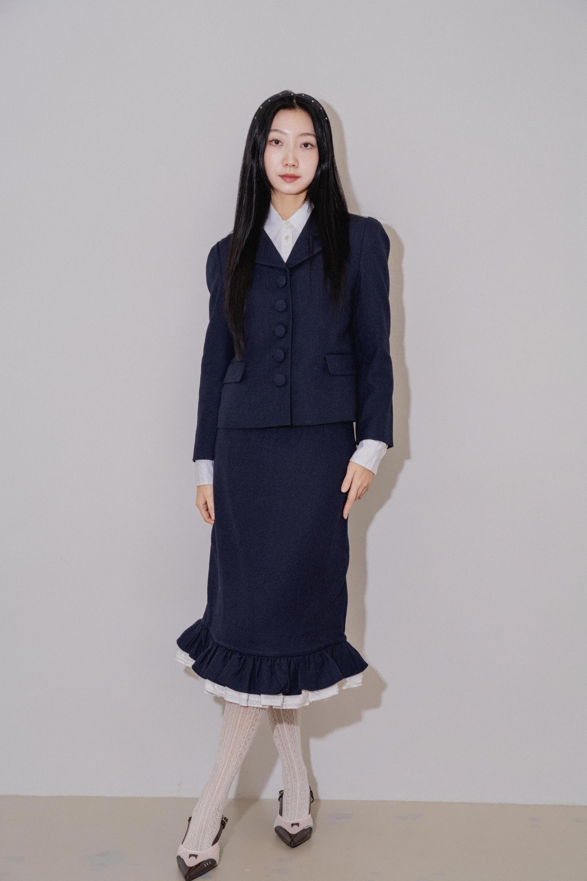 "처음에 이 자켓을 입었을 때 실루엣이 깔끔하게 떨어져서 놀랐어요. 버튼이 포인트가 되면서도 부담스럽지 않아 마음에 들었고, 셋업이지만 따로따로 입기에도 좋아요."