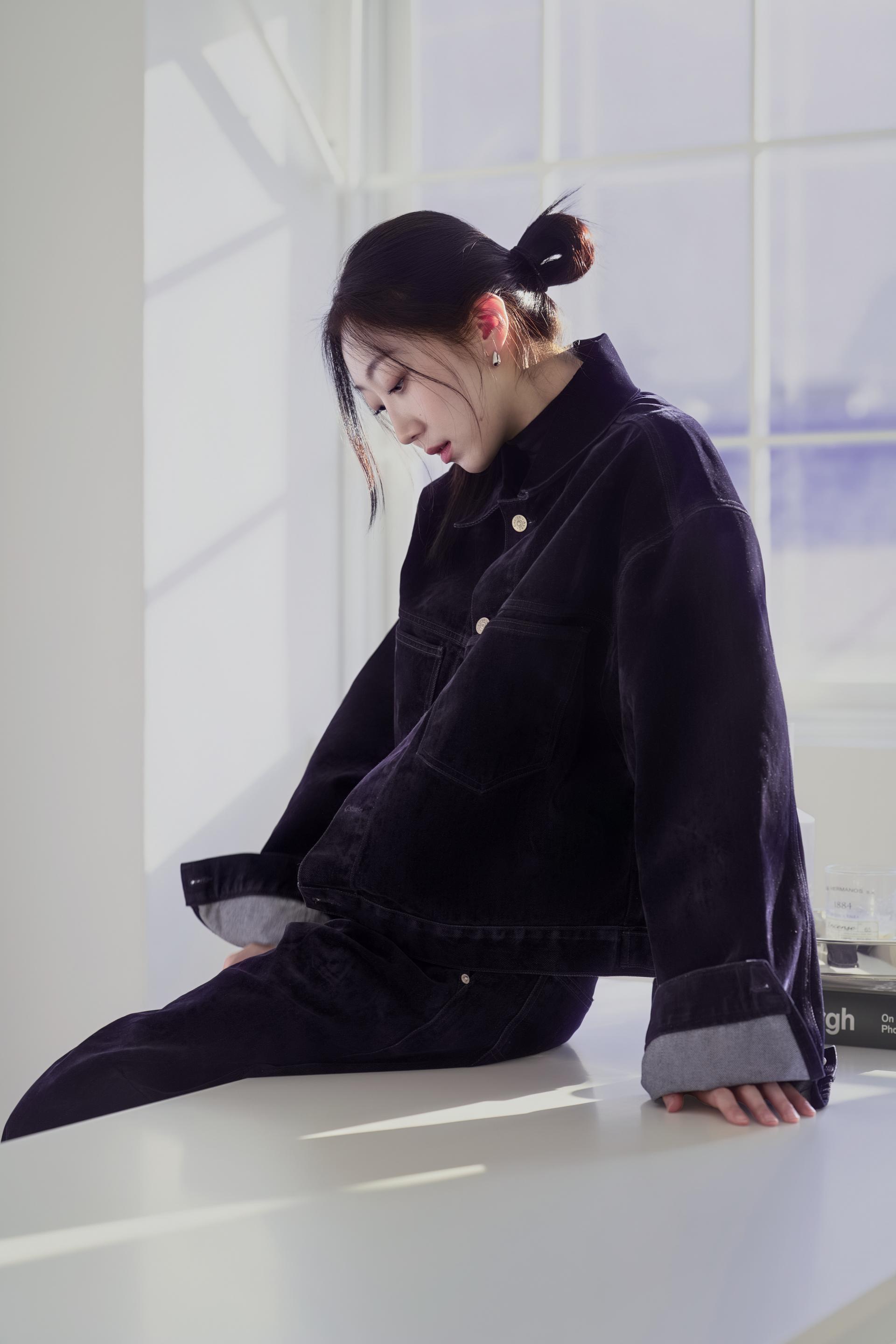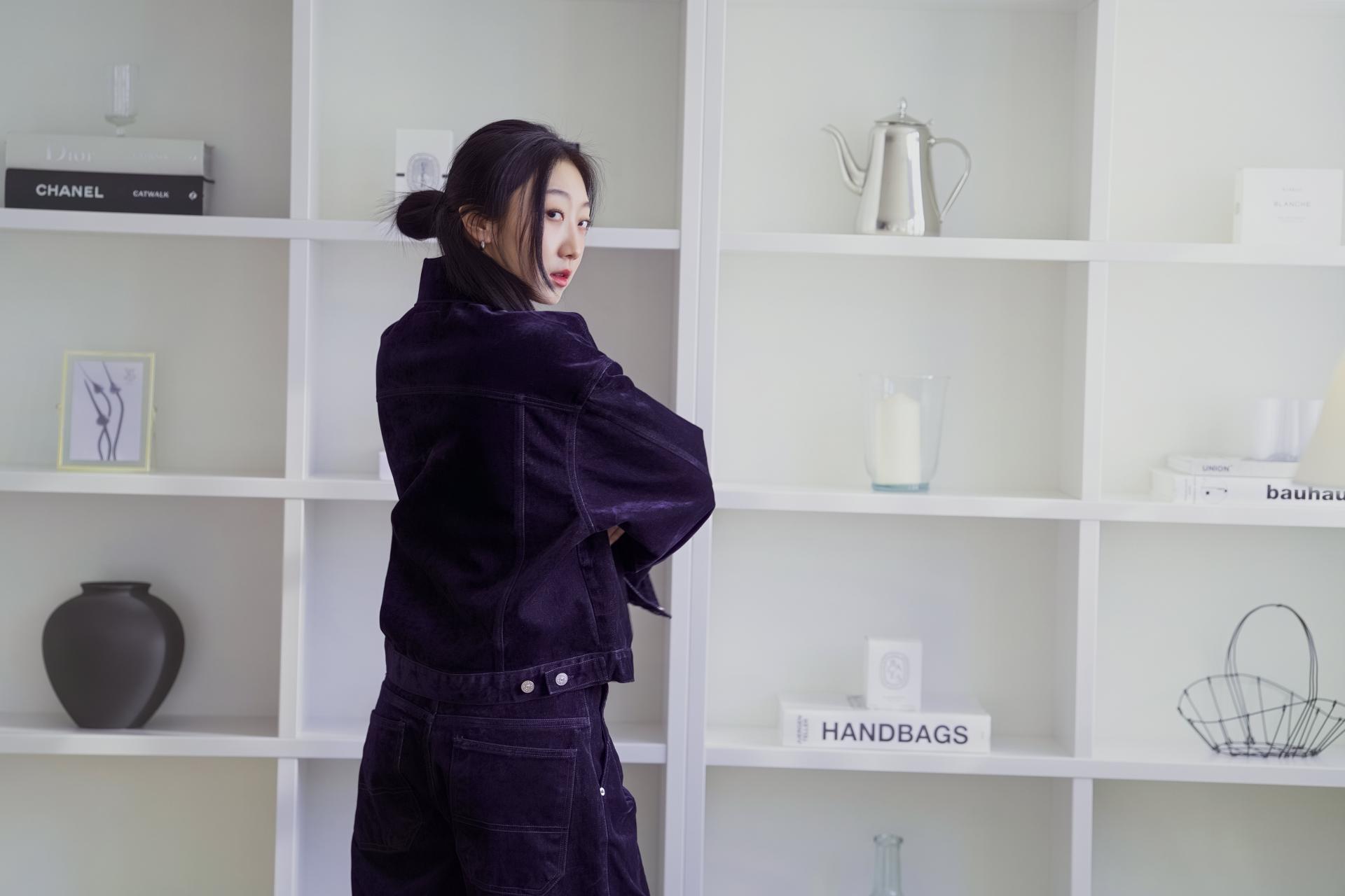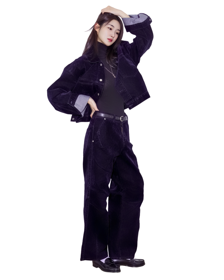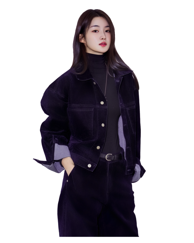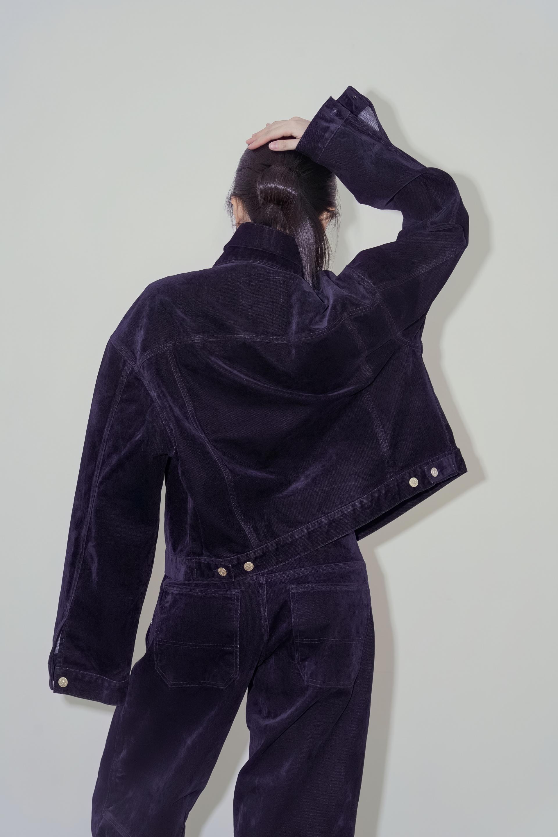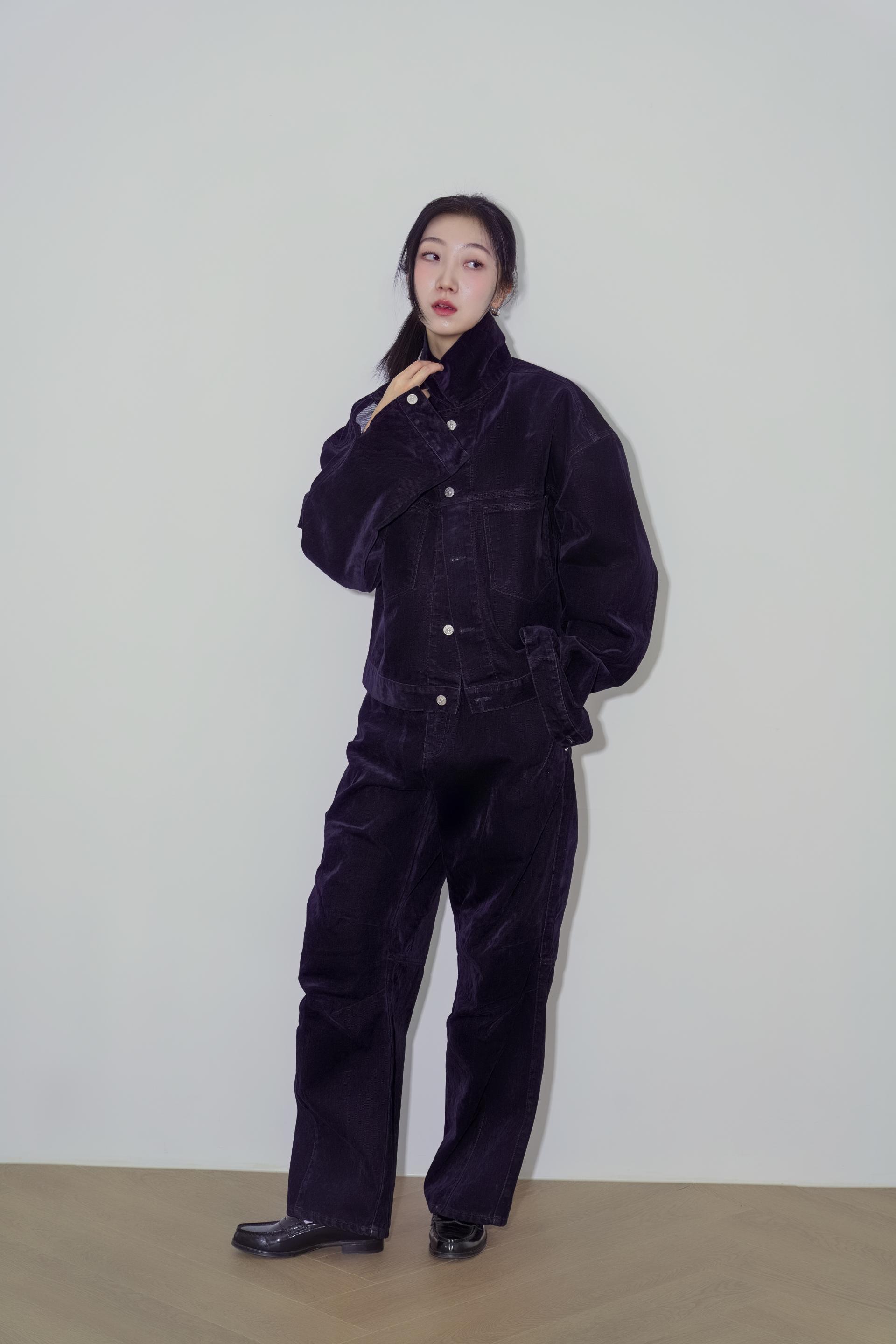 • 벨벳 특유의 은은한 광택감과 부드러운 표면 질감을 가미한 데님 셋업입니다. 빛의 각도에 따라 표면이 섬세하게 반짝이며, 입체적인 광택이 깊이 있는 무드를 형성합니다.