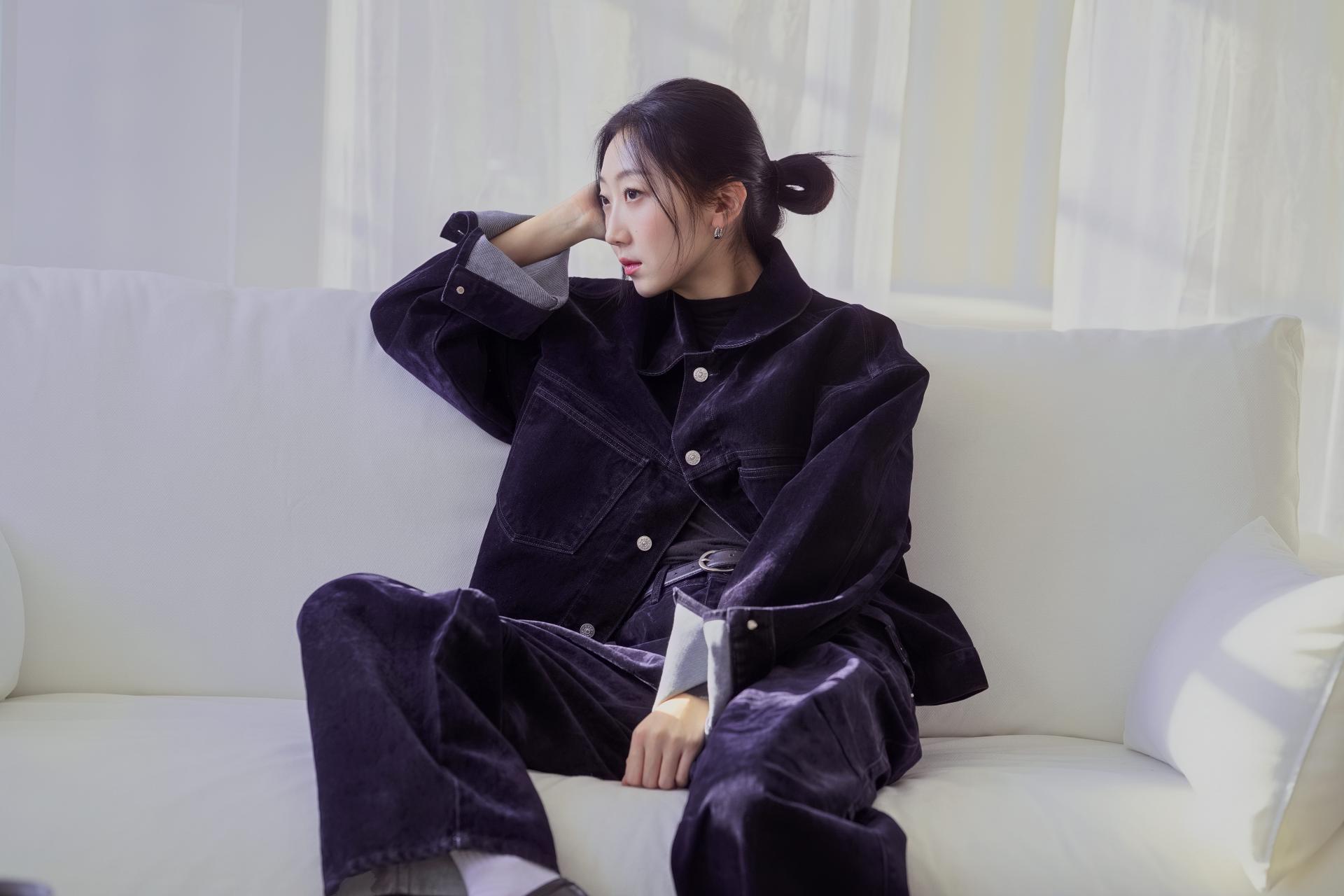 "저처럼 키가 큰 사람이 입었을 때 비율이 딱 떨어지는 셋업이에요. 입자마자 소재에서 고급스러움이 느껴져서, 촬영 때 실제로 손으로 계속 만지게 되더라고요."