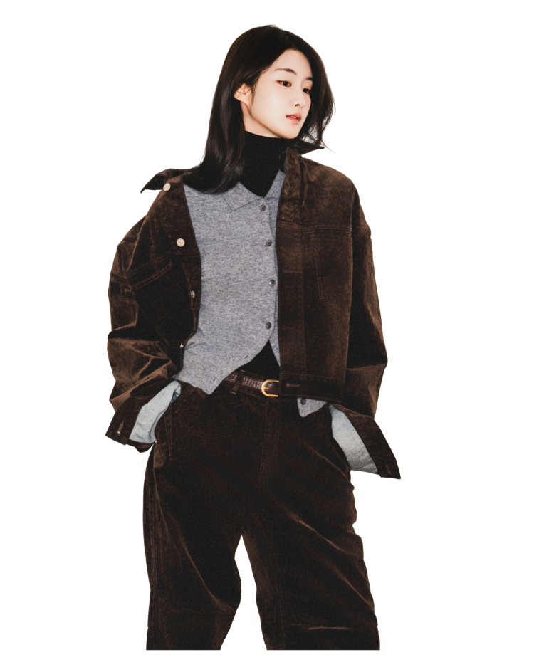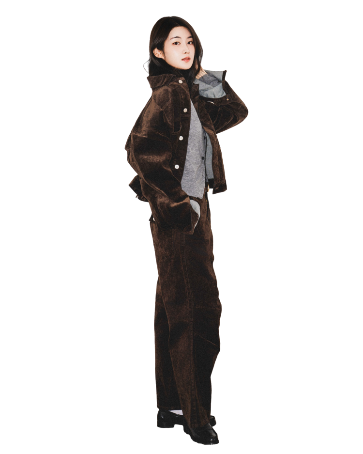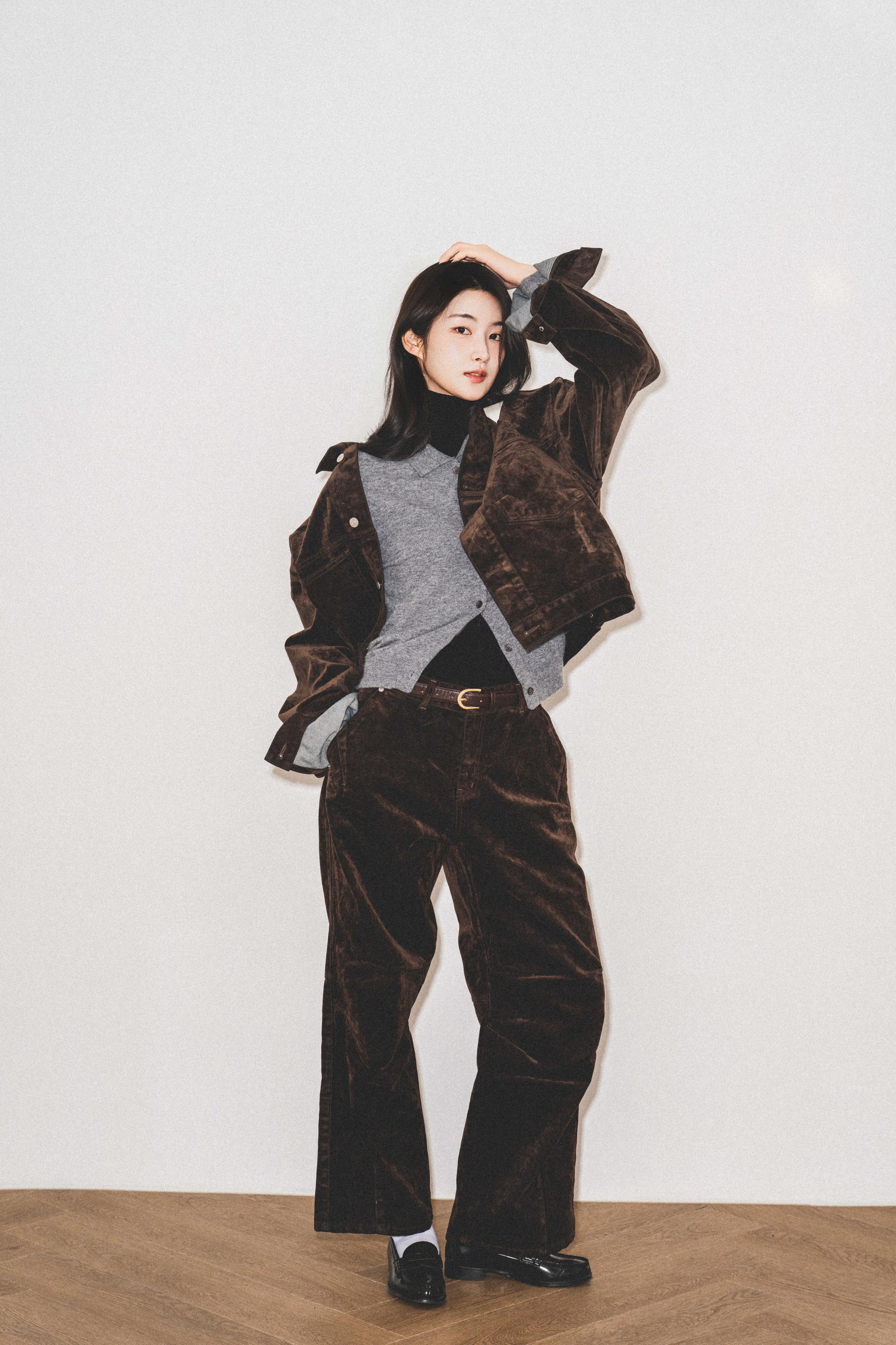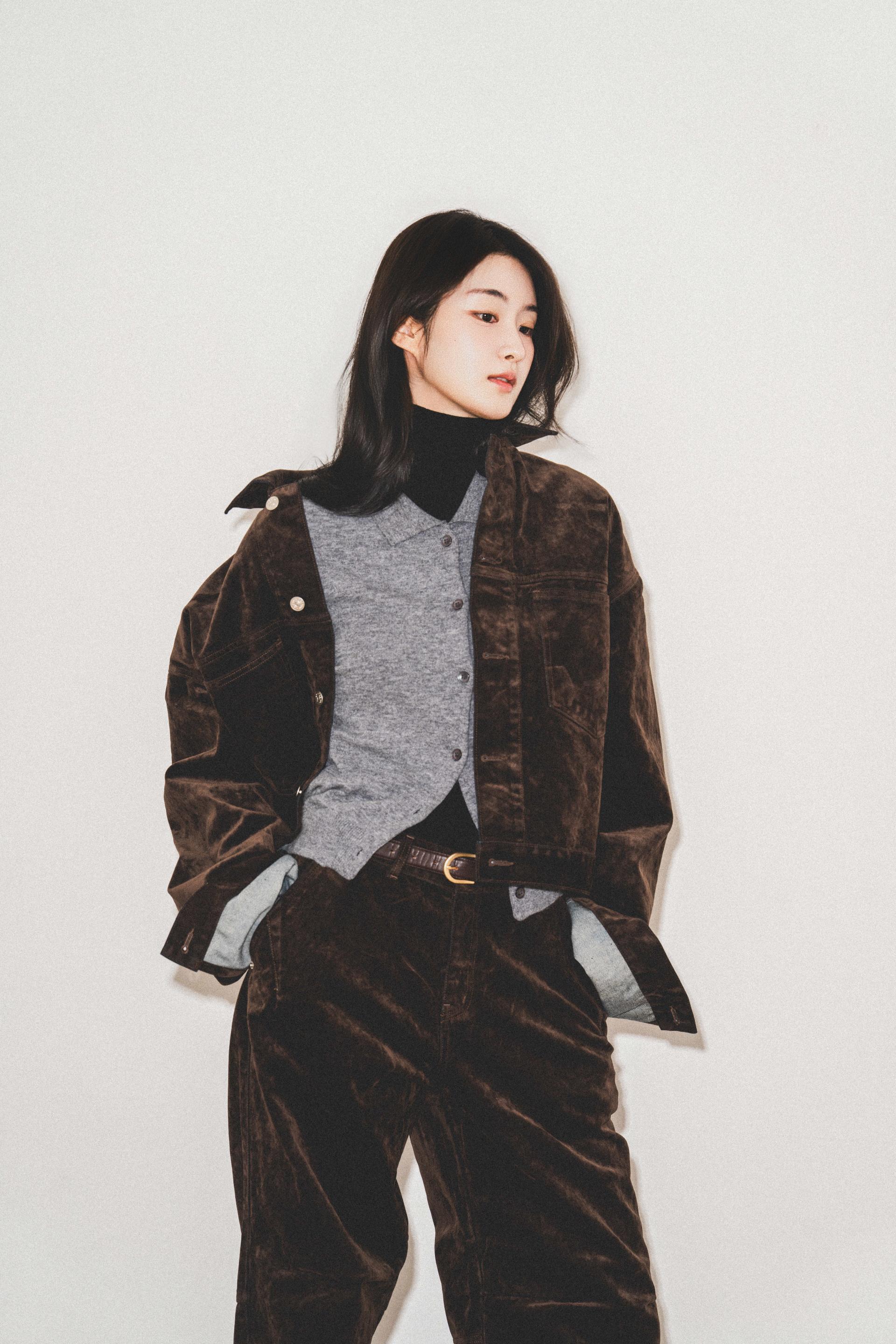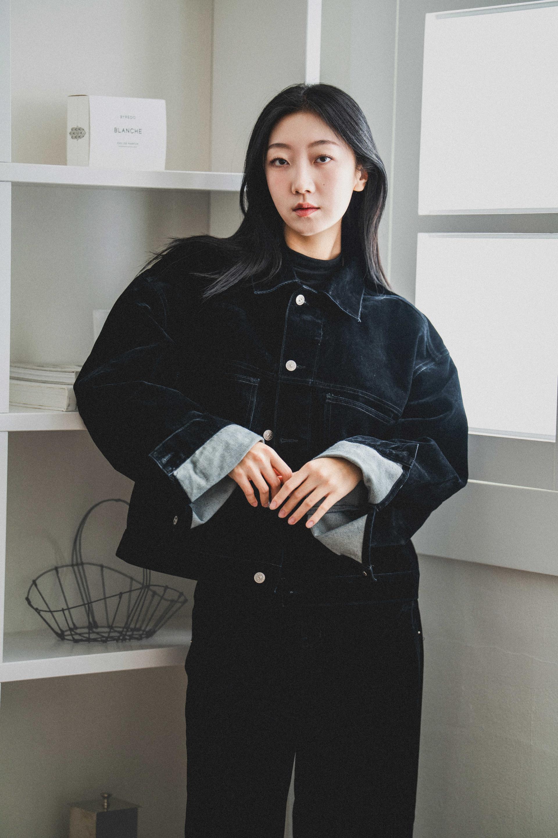 • 벨벳 특유의 은은한 광택감과 부드러운 표면 질감을 가미한 데님 셋업입니다. 빛의 각도에 따라 표면이 섬세하게 반짝이며, 입체적인 광택이 깊이 있는 무드를 형성합니다.