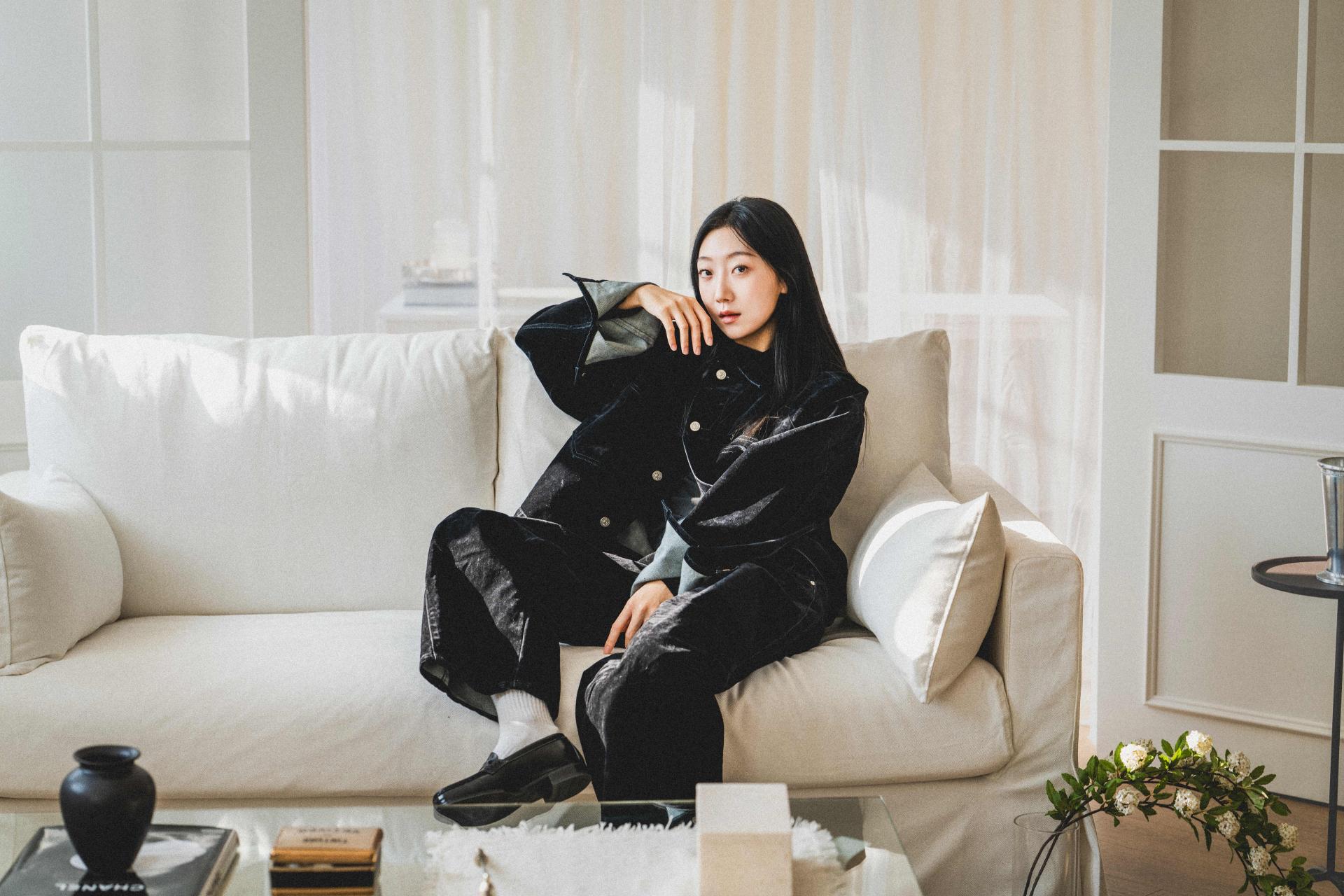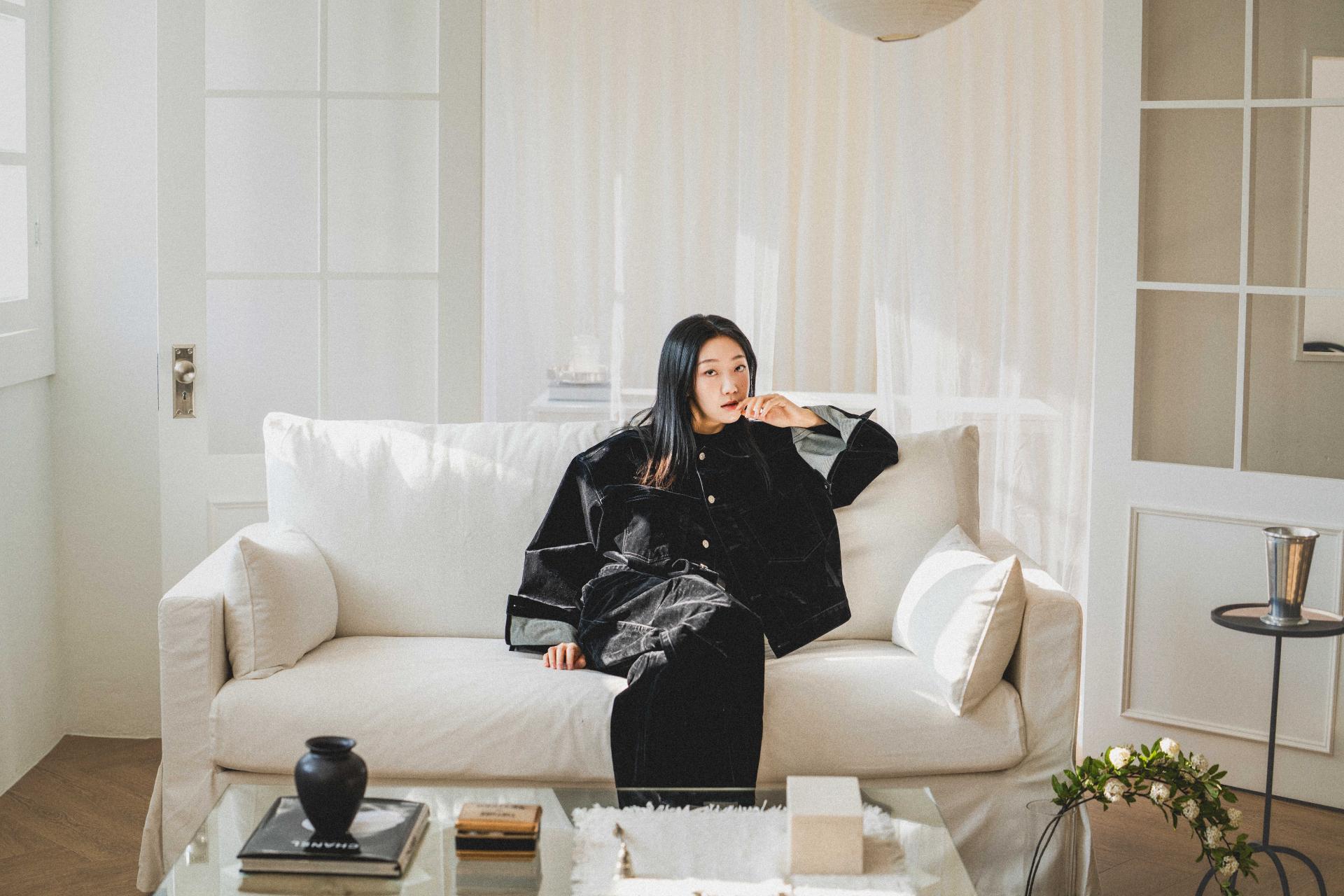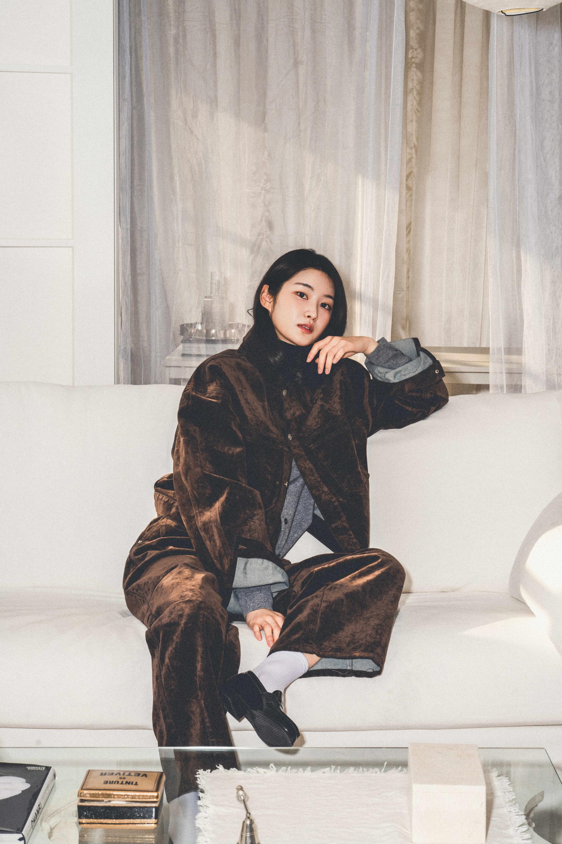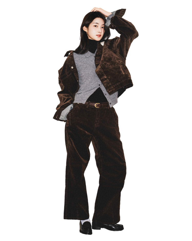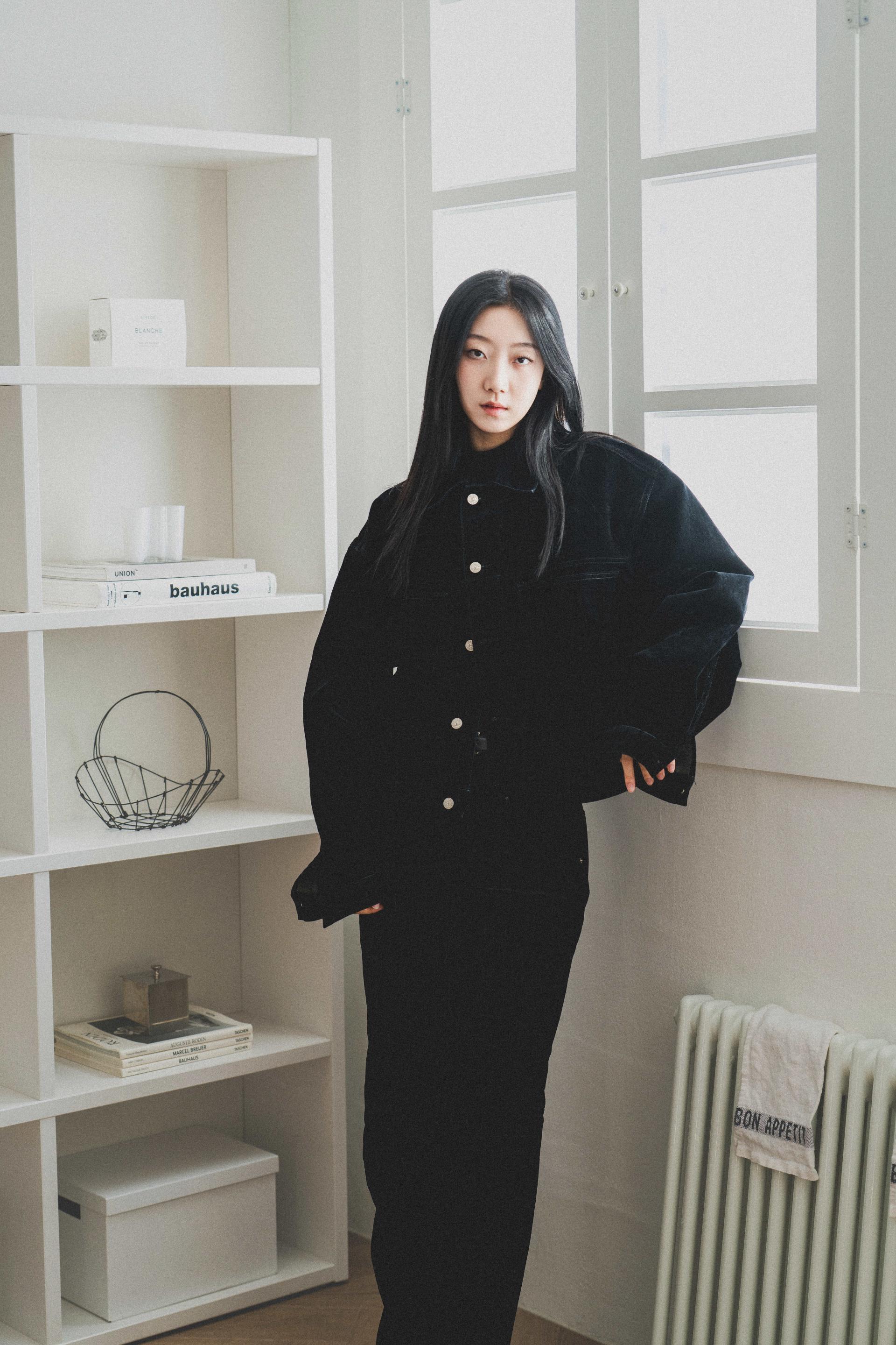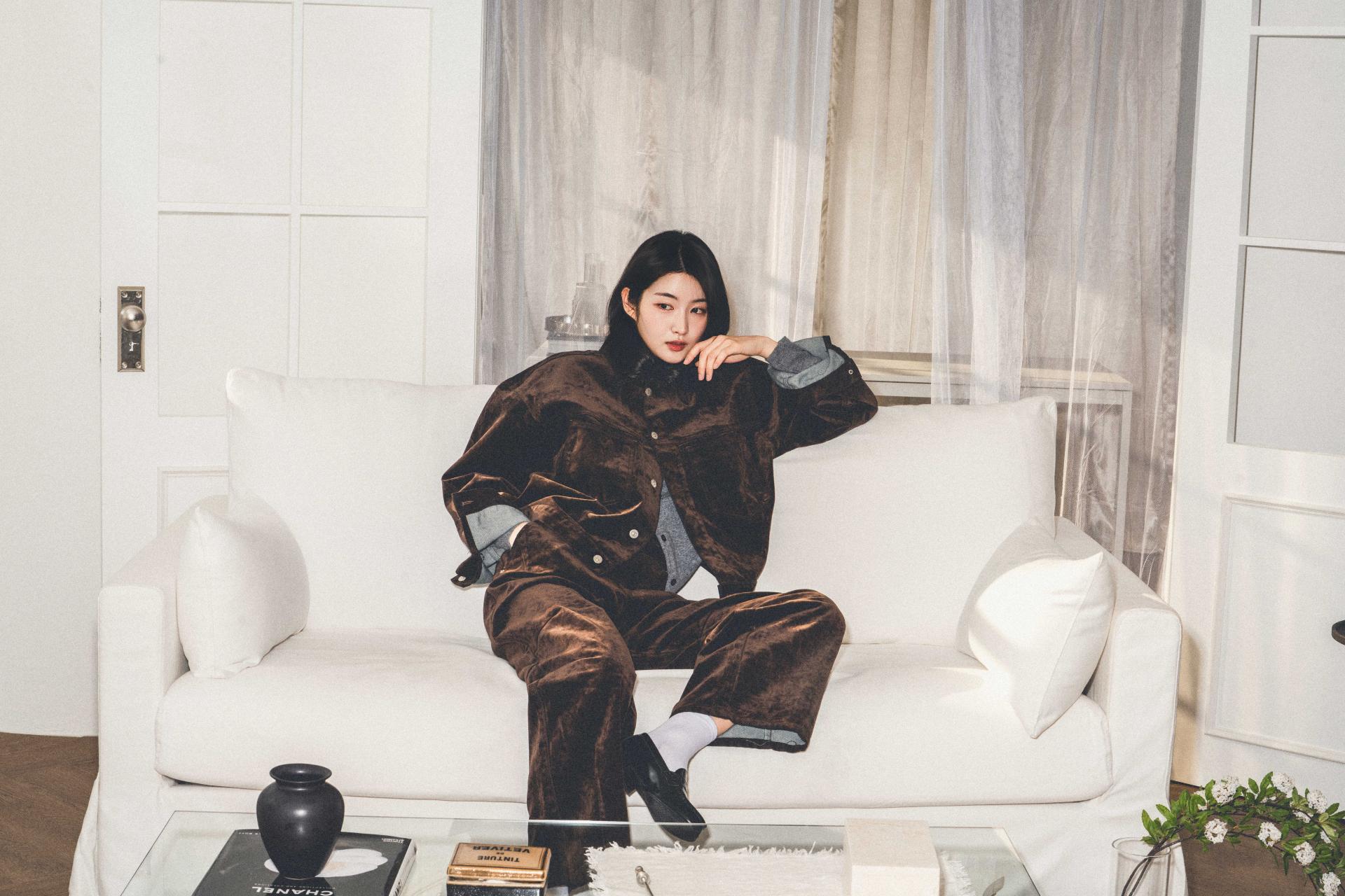• 벨벳 특유의 은은한 광택감과 부드러운 표면 질감을 가미한 데님 셋업입니다. 빛의 각도에 따라 표면이 섬세하게 반짝이며, 입체적인 광택이 깊이 있는 무드를 형성합니다.