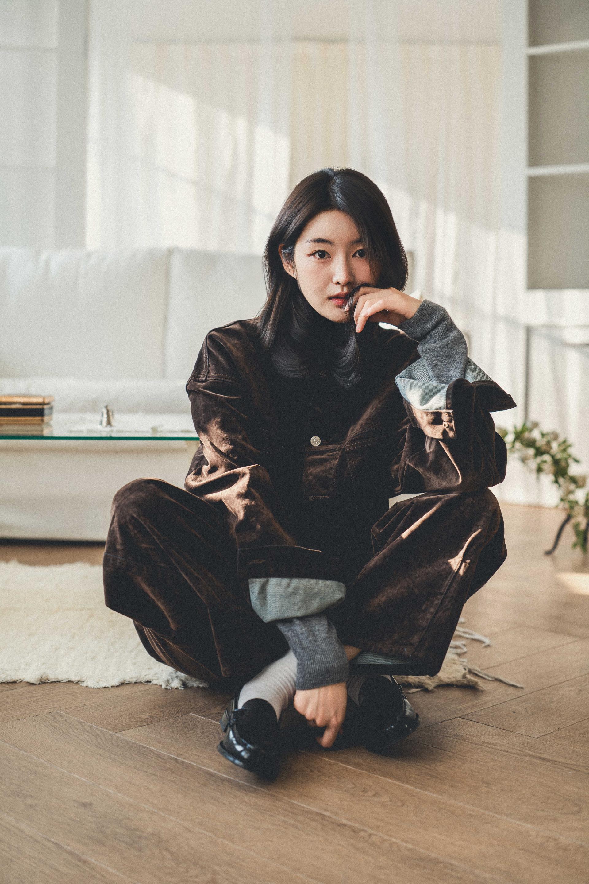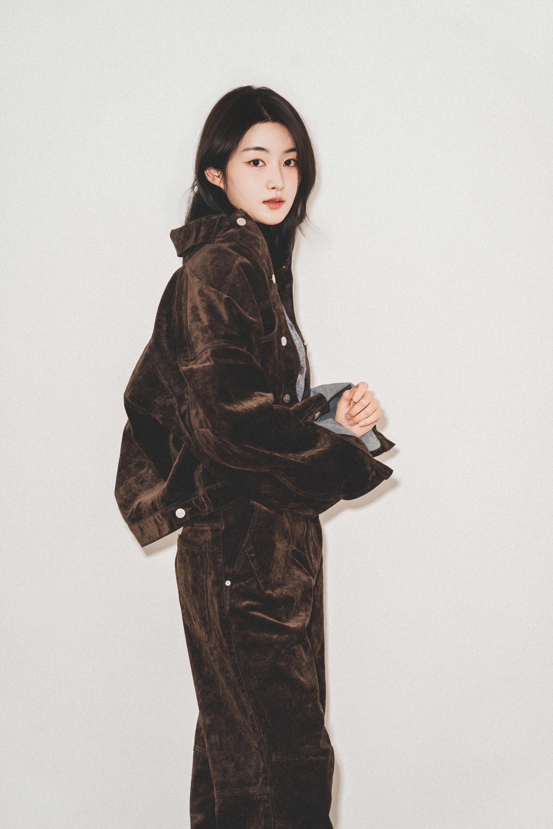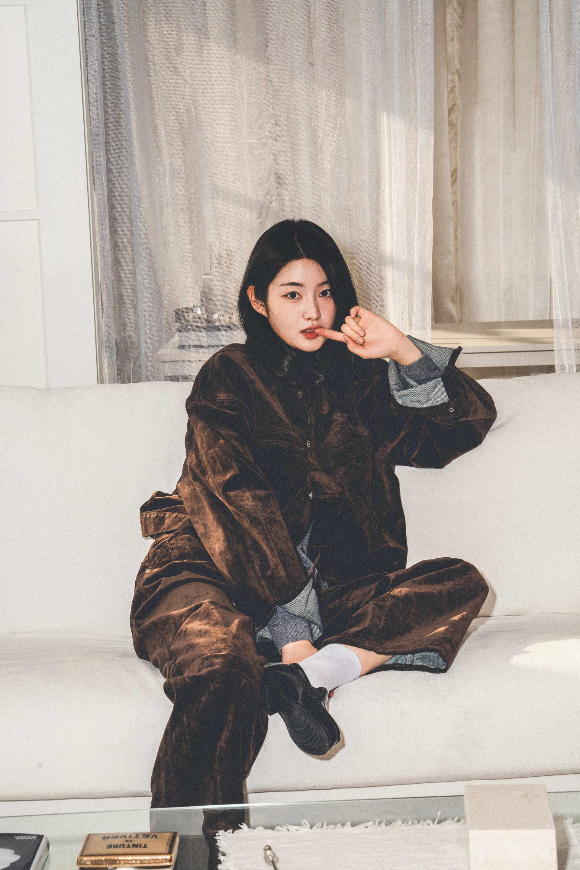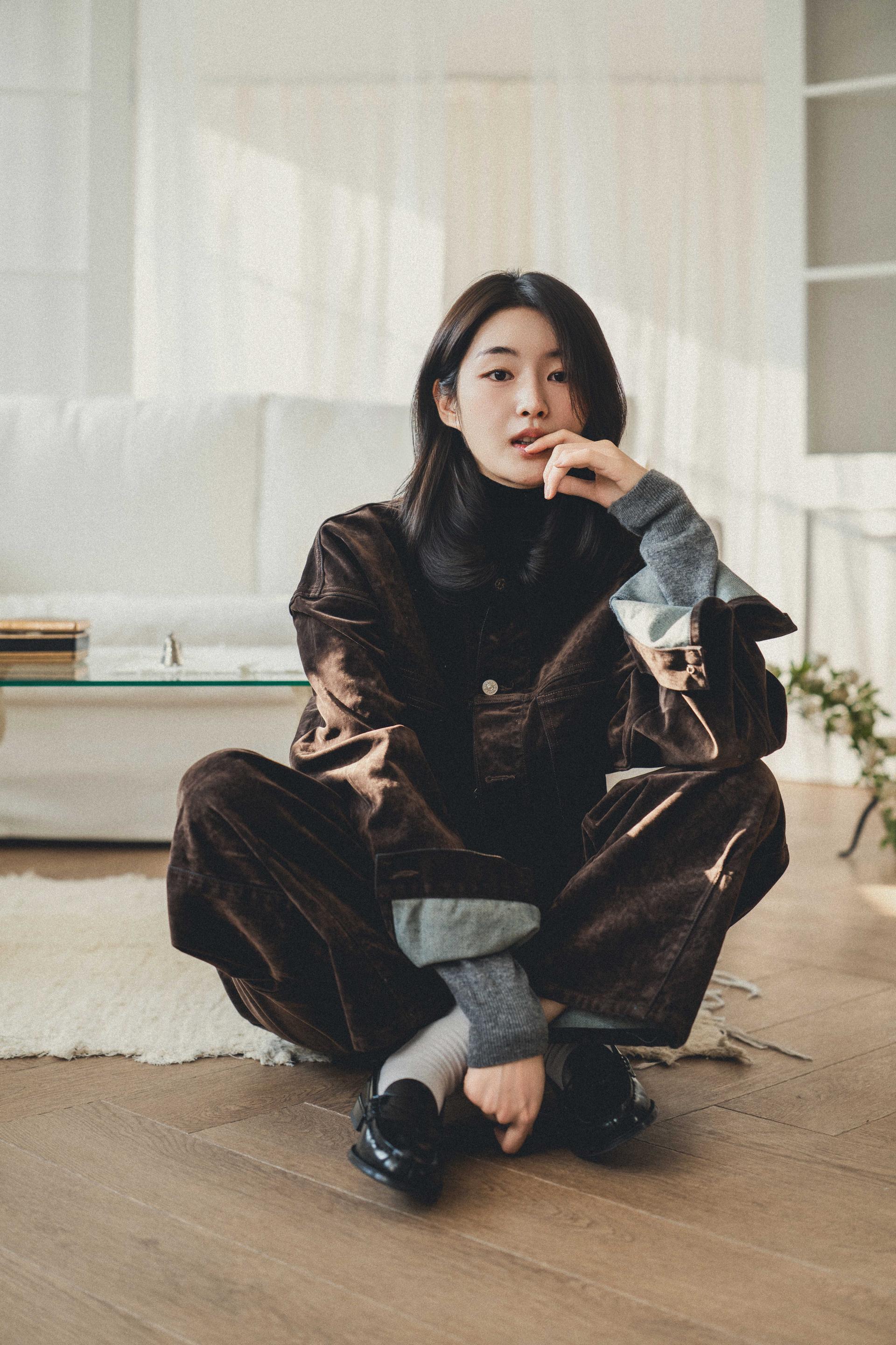"저처럼 키가 큰 사람이 입었을 때 비율이 딱 떨어지는 셋업이에요. 입자마자 소재에서 고급스러움이 느껴져서, 촬영 때 실제로 손으로 계속 만지게 되더라고요."