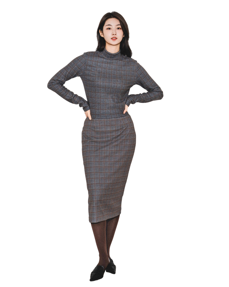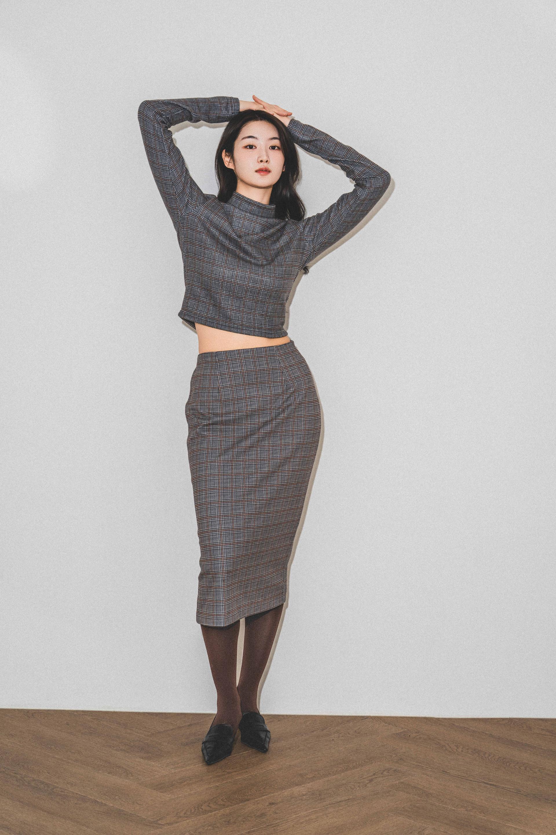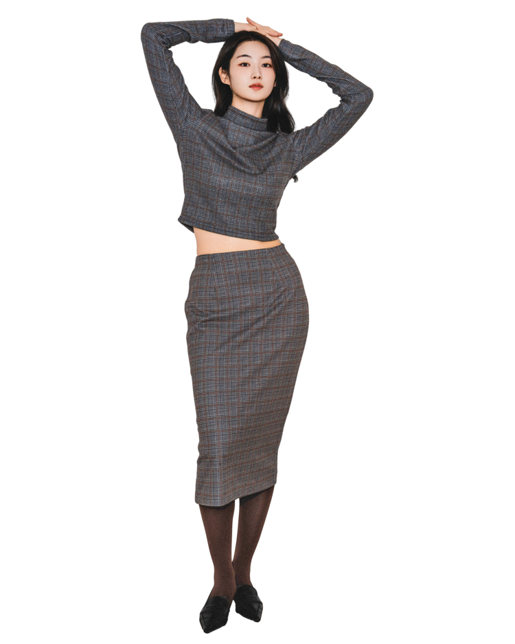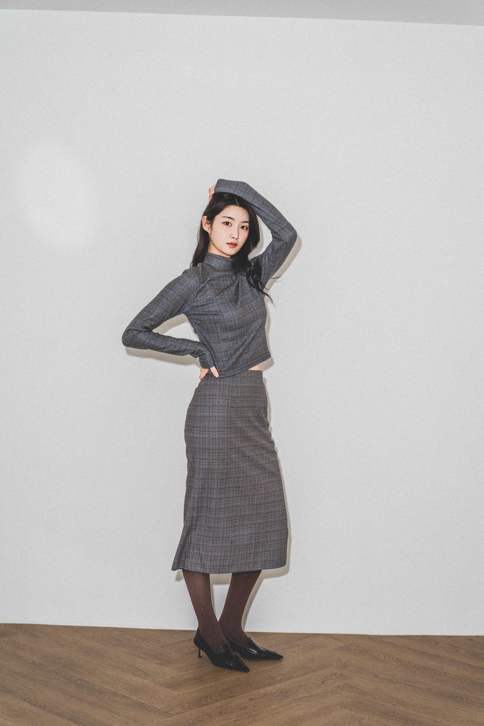 • 텍스처가 다른 탑과 스커트가 한 세트로 구성된 투피스입니다.