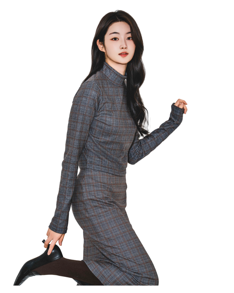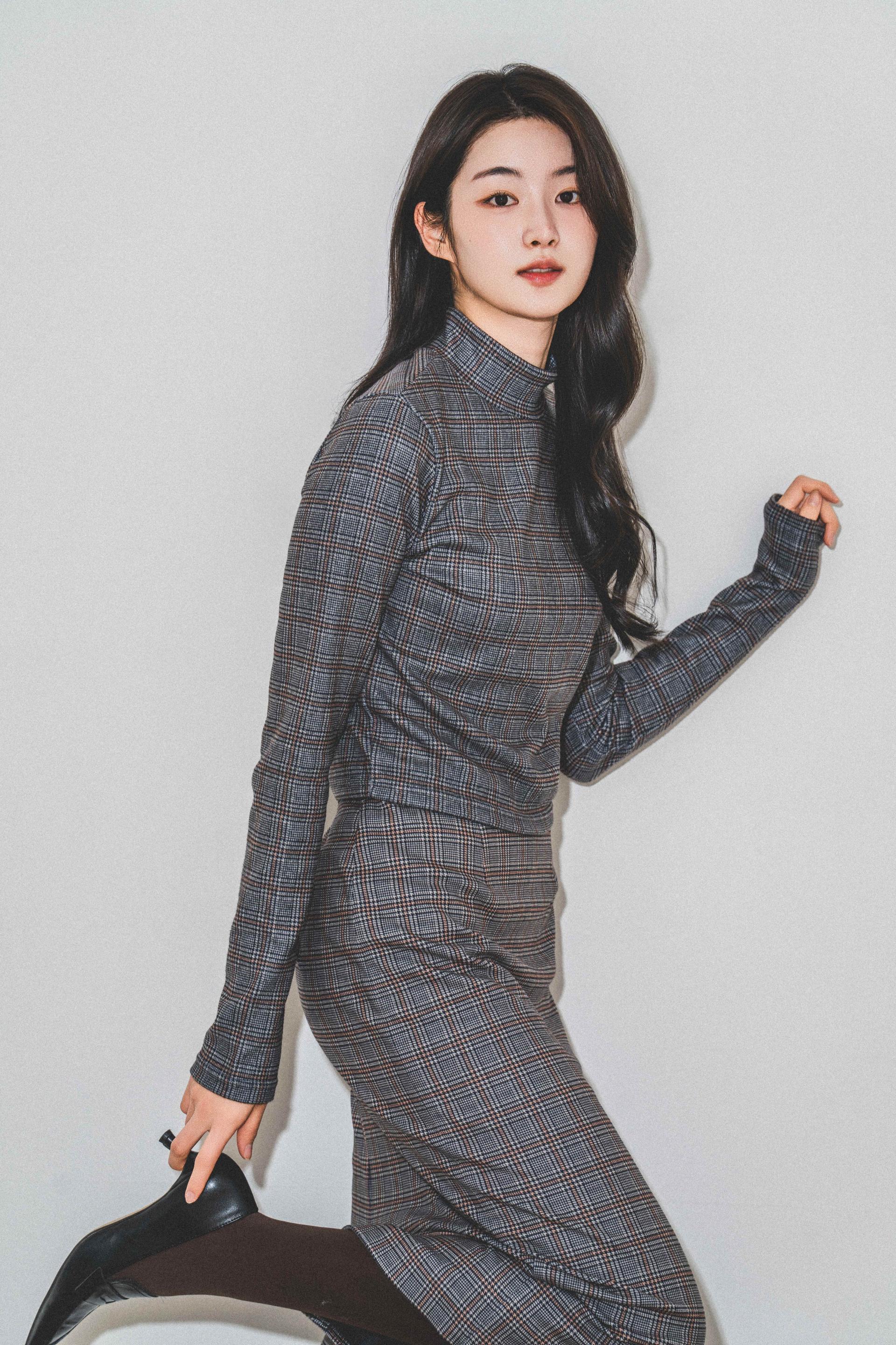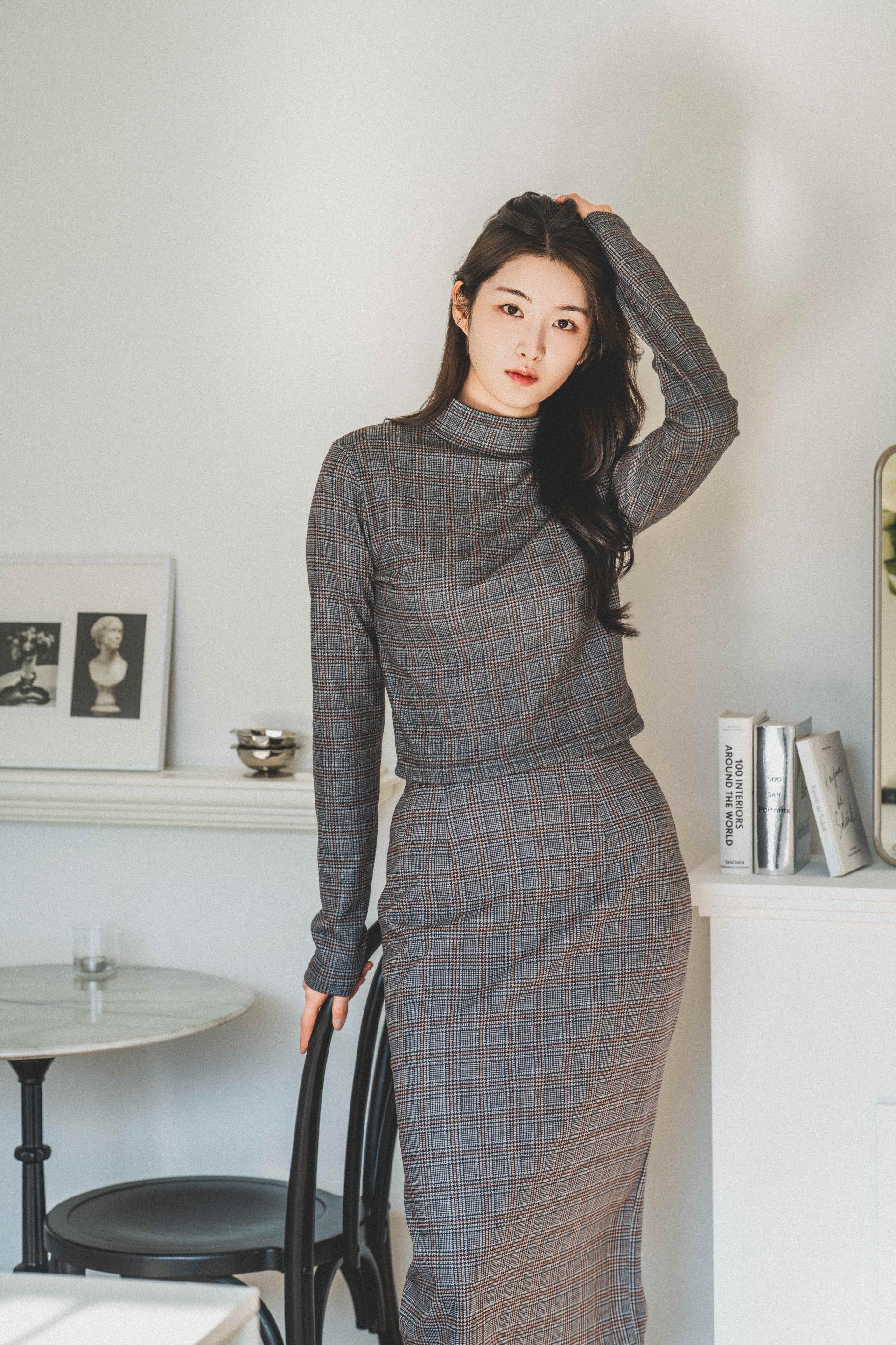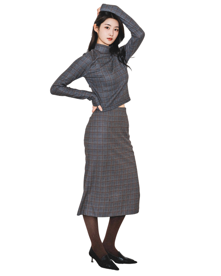 • 텍스처가 다른 탑과 스커트가 한 세트로 구성된 투피스입니다.