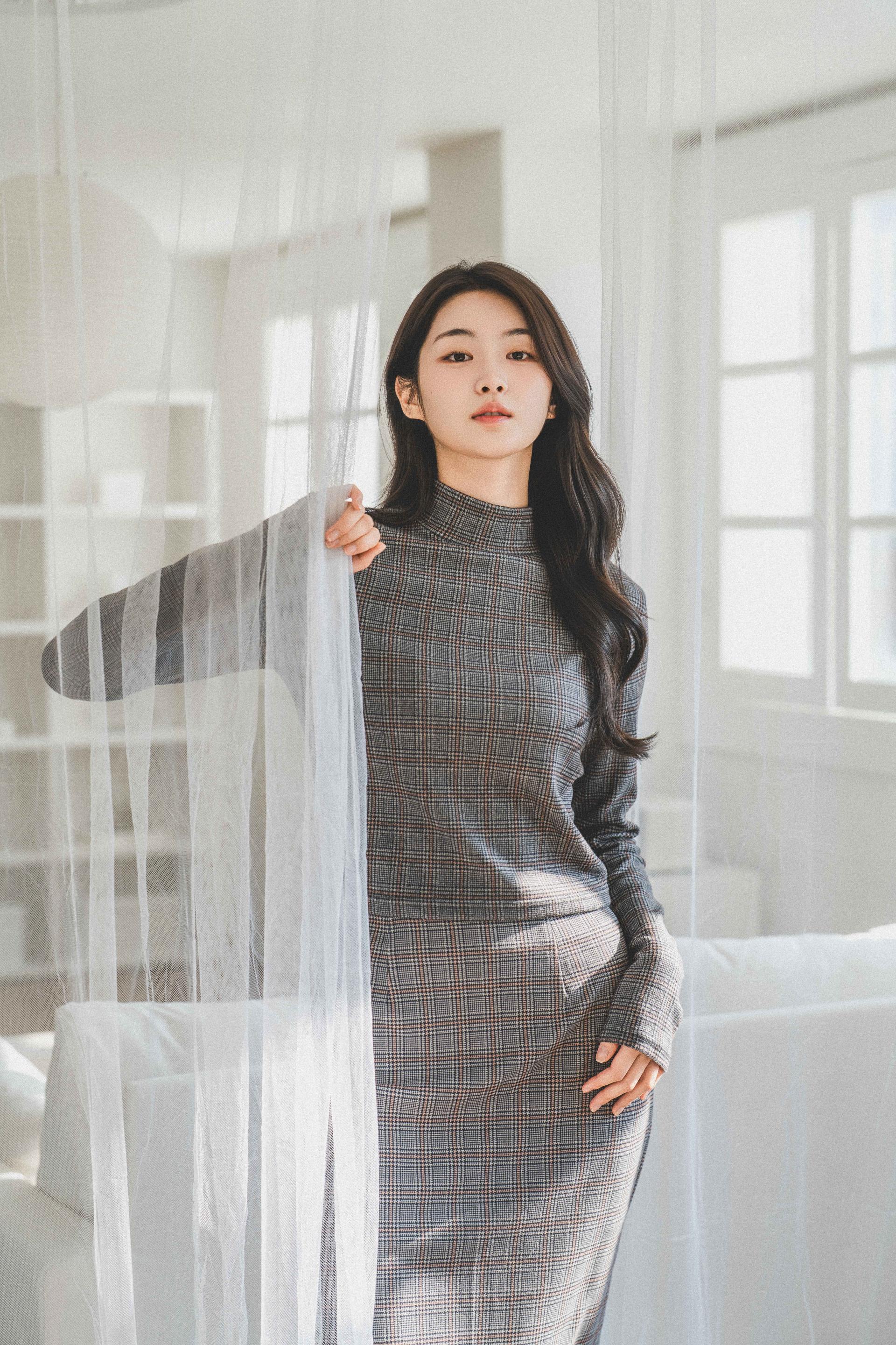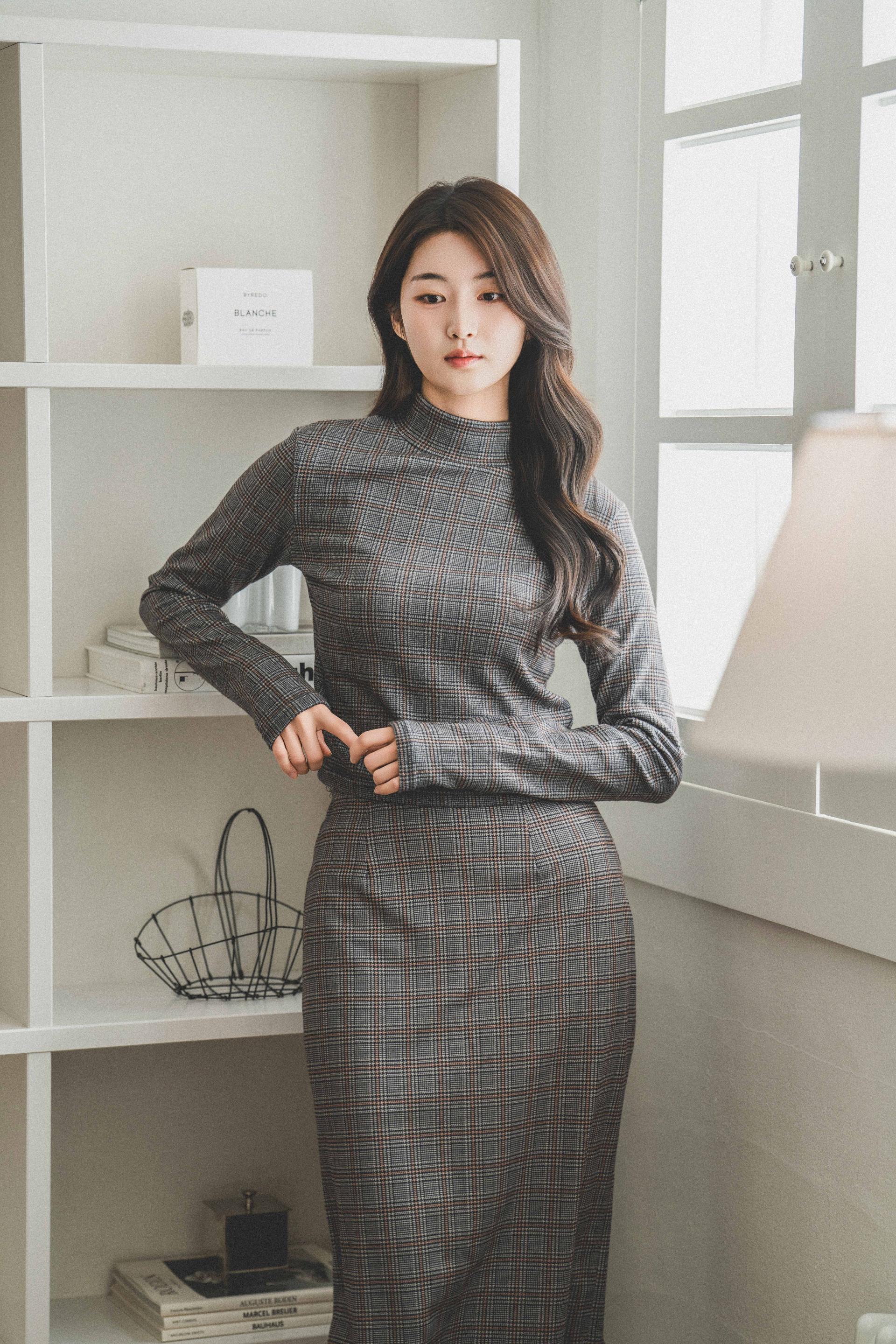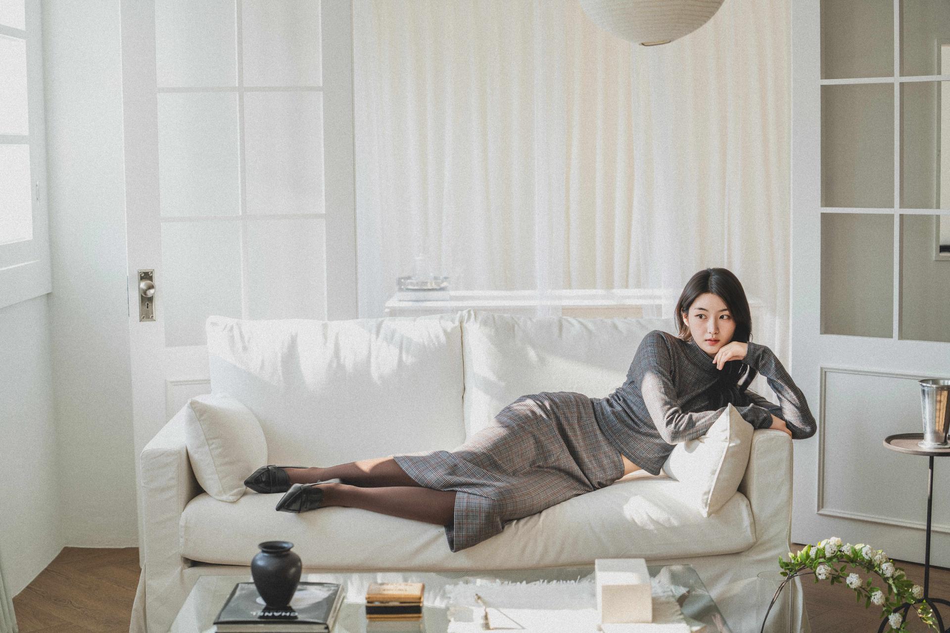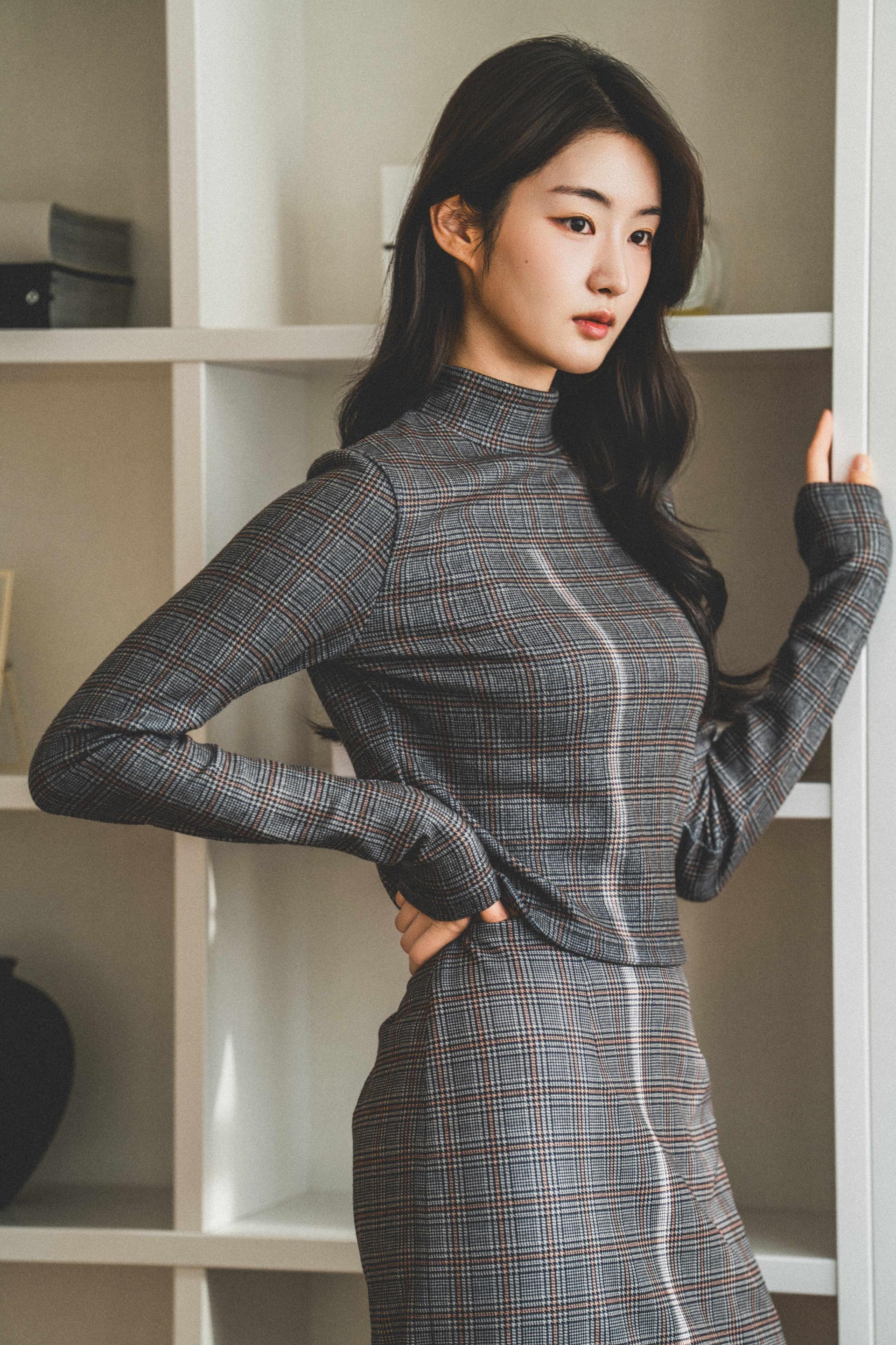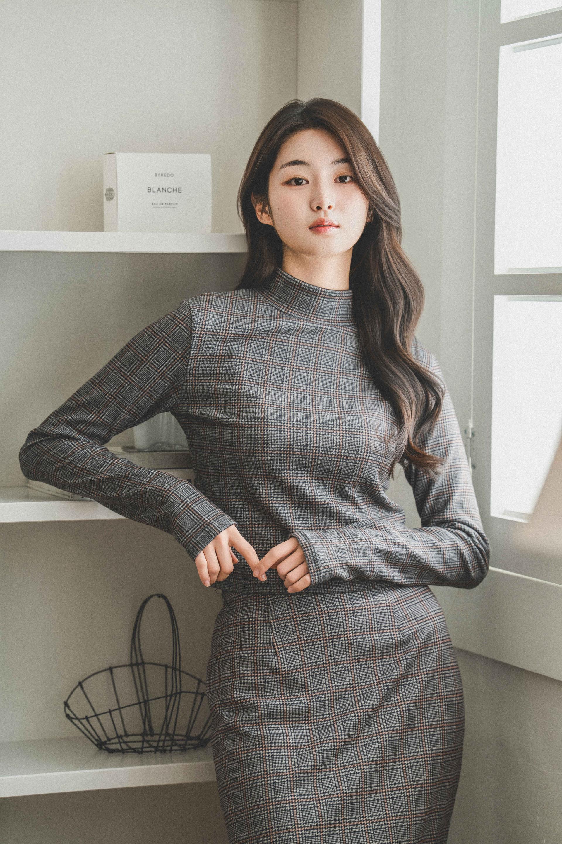 • 스커트는 약간의 탄성을 지닌 촘촘한 짜임의 원단으로, 좀 더 구조적인 실루엣을 형성합니다.