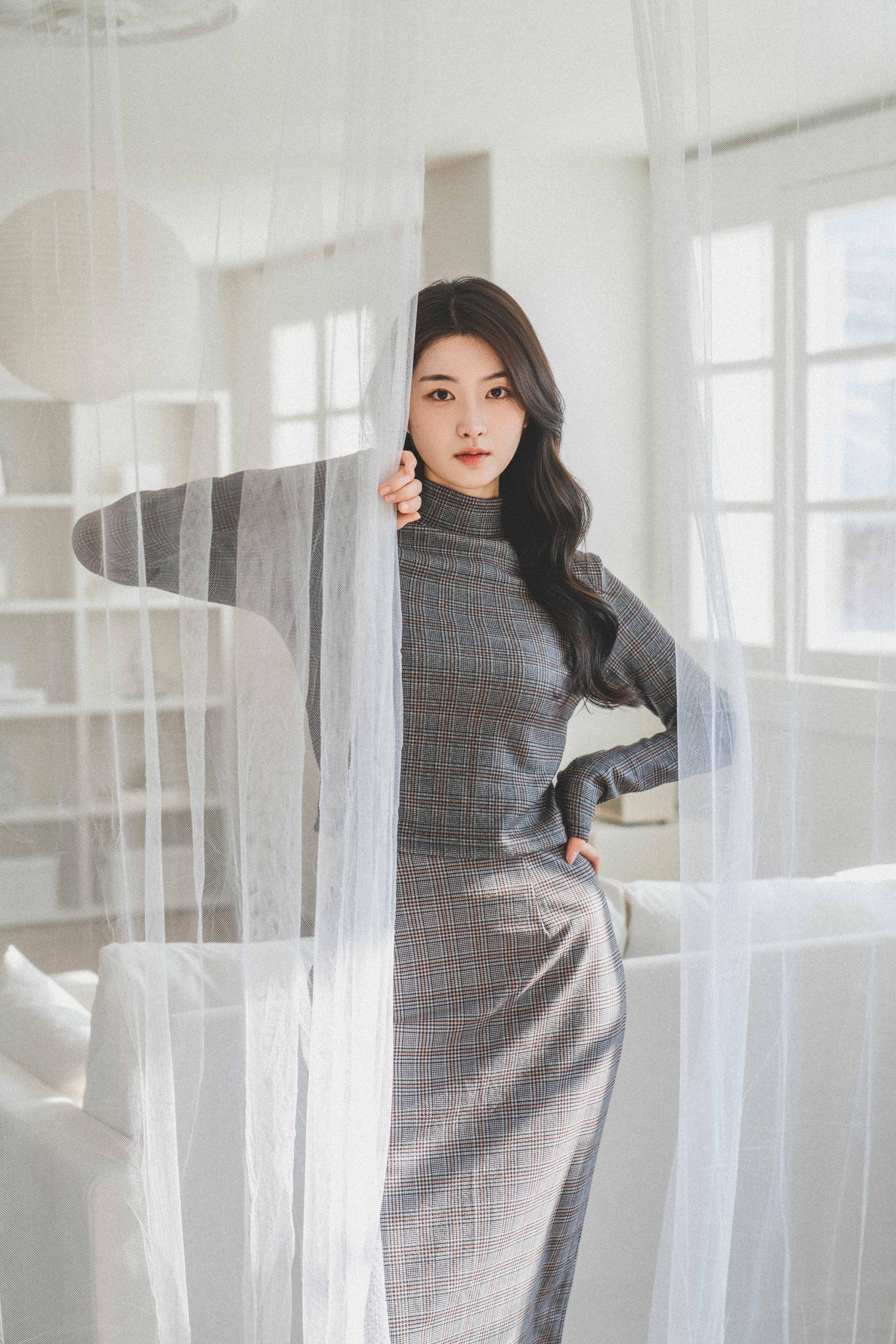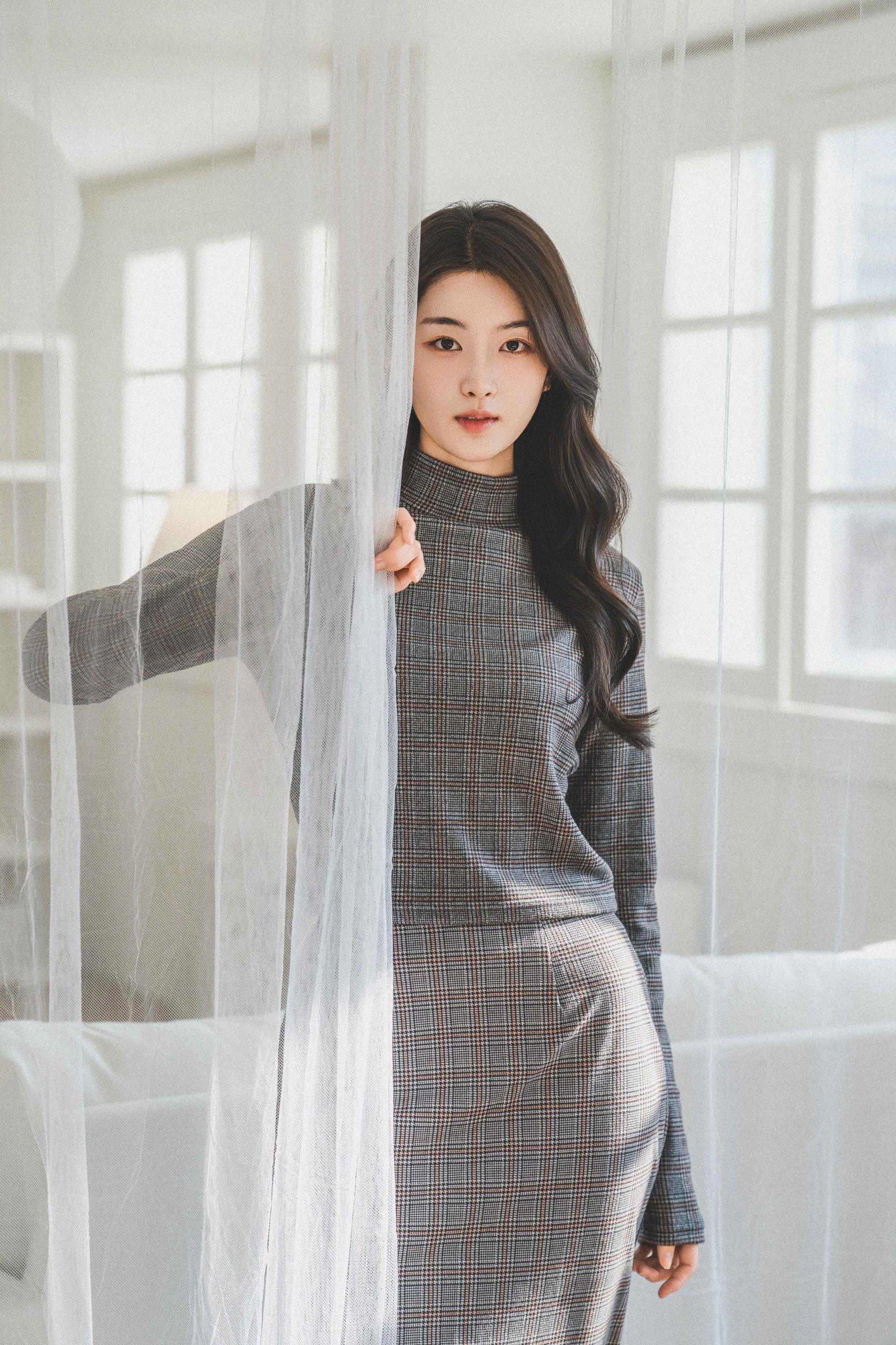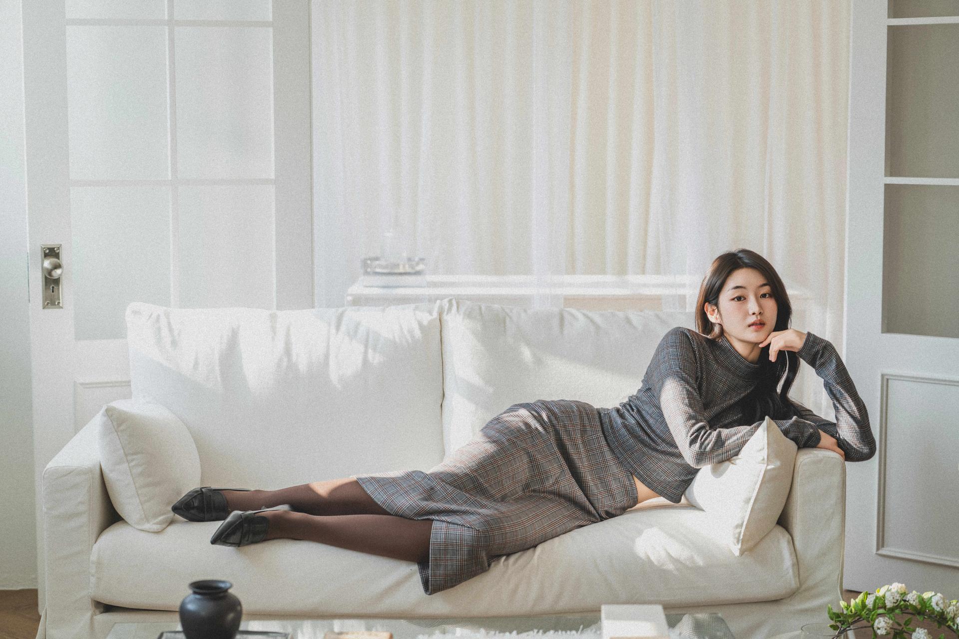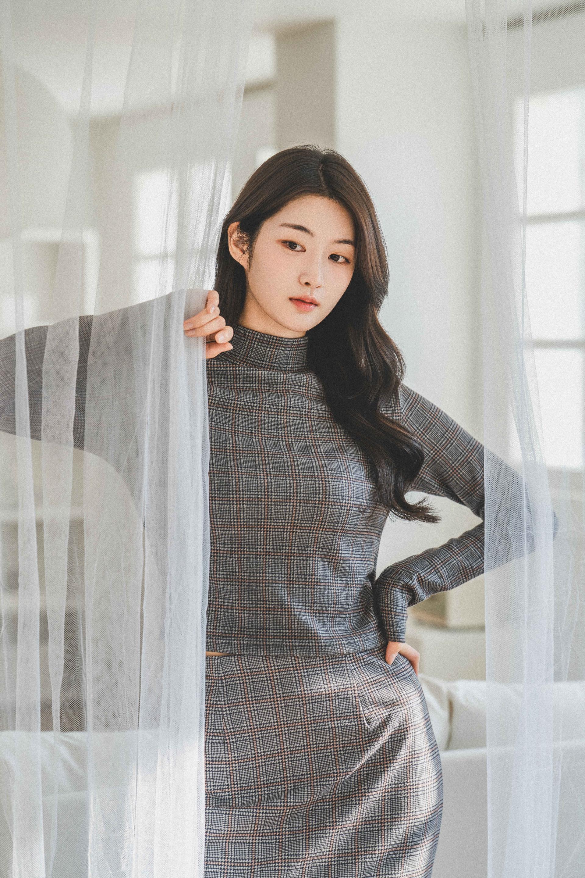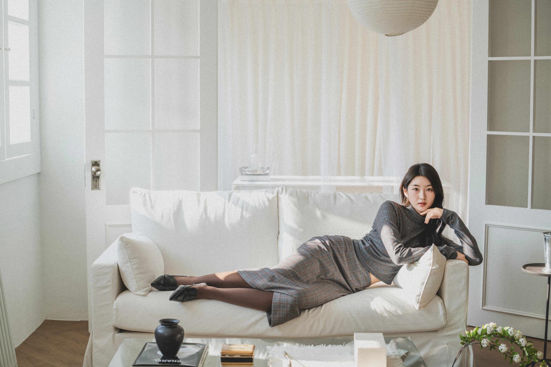 • 스커트는 약간의 탄성을 지닌 촘촘한 짜임의 원단으로, 좀 더 구조적인 실루엣을 형성합니다.