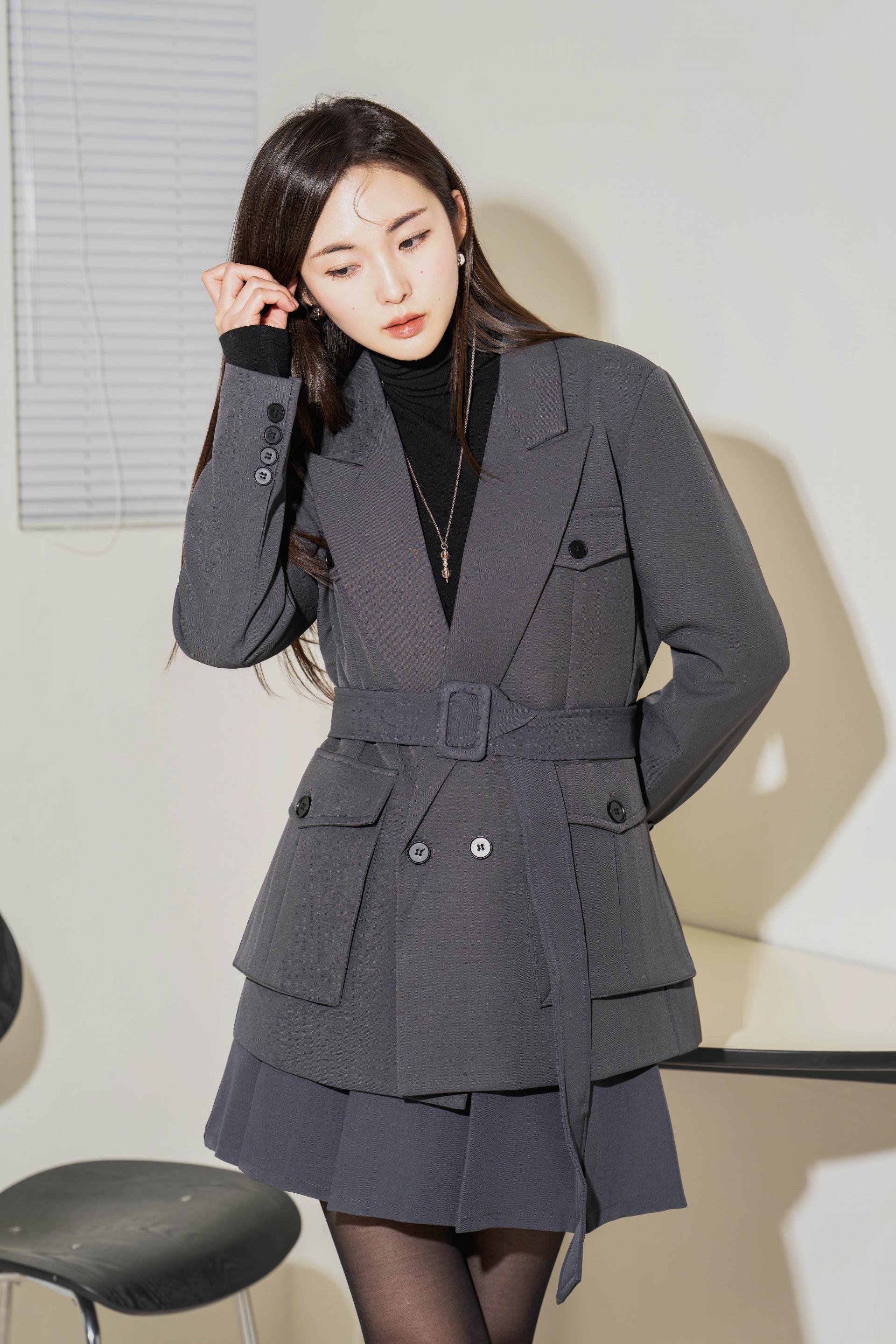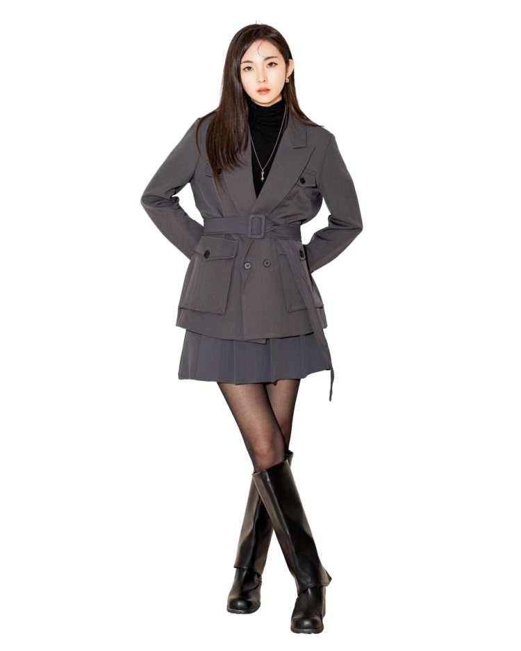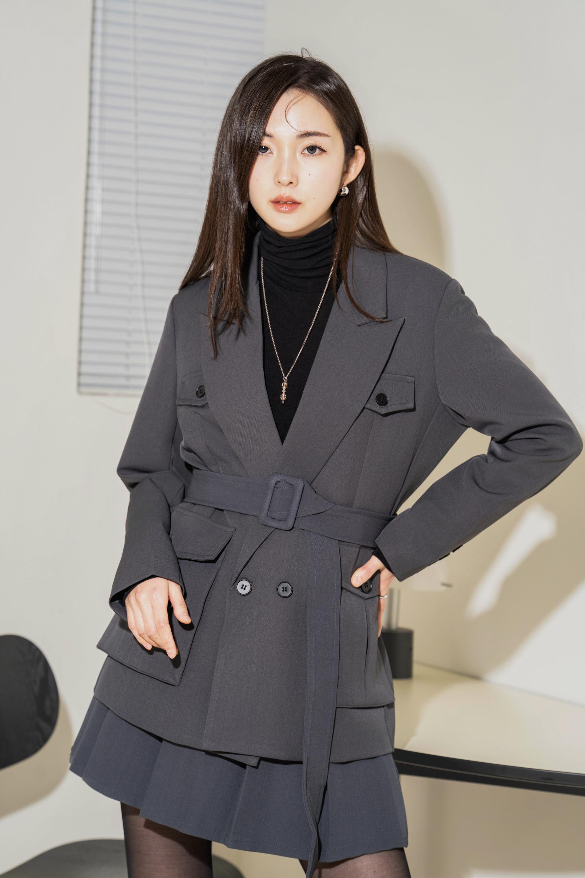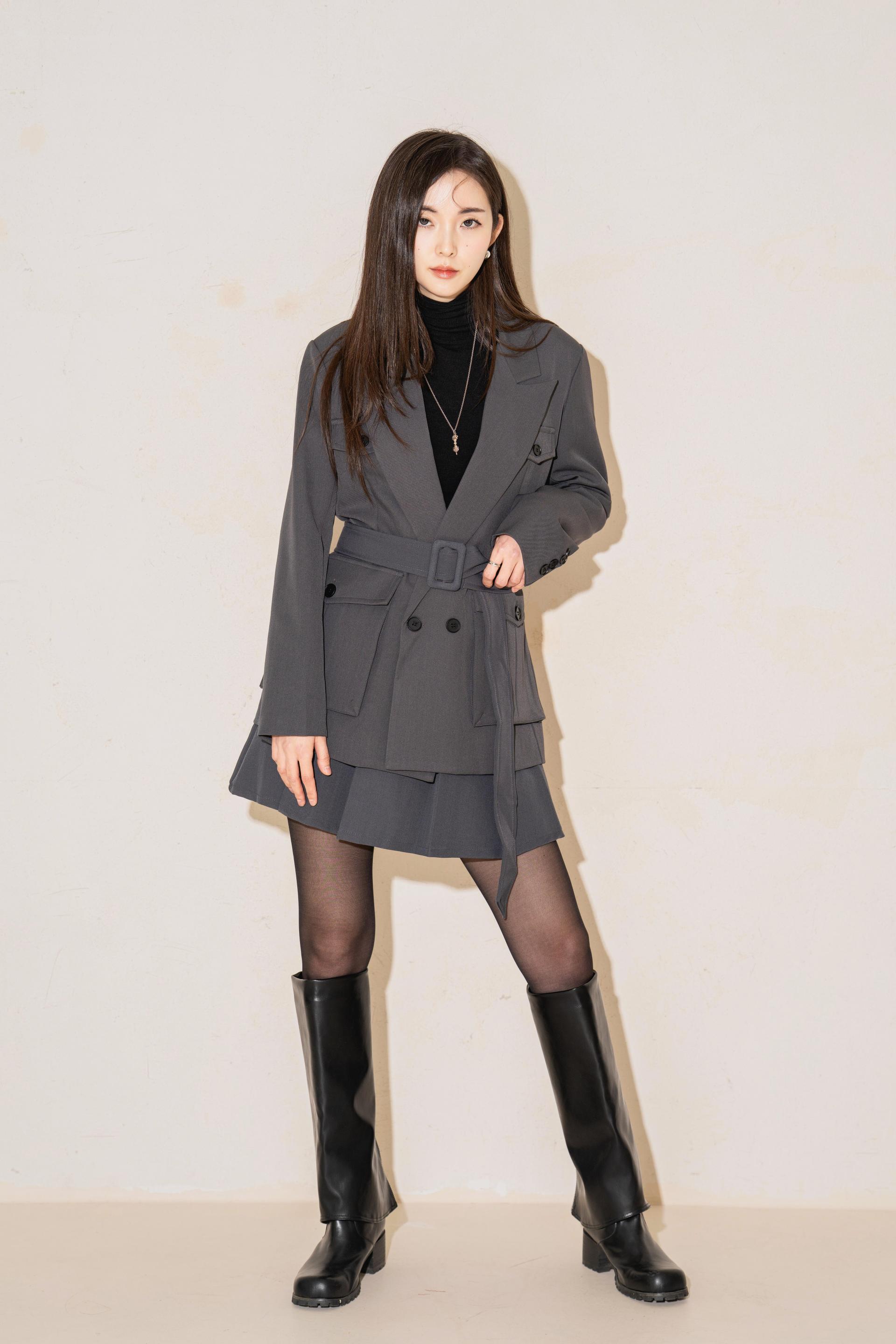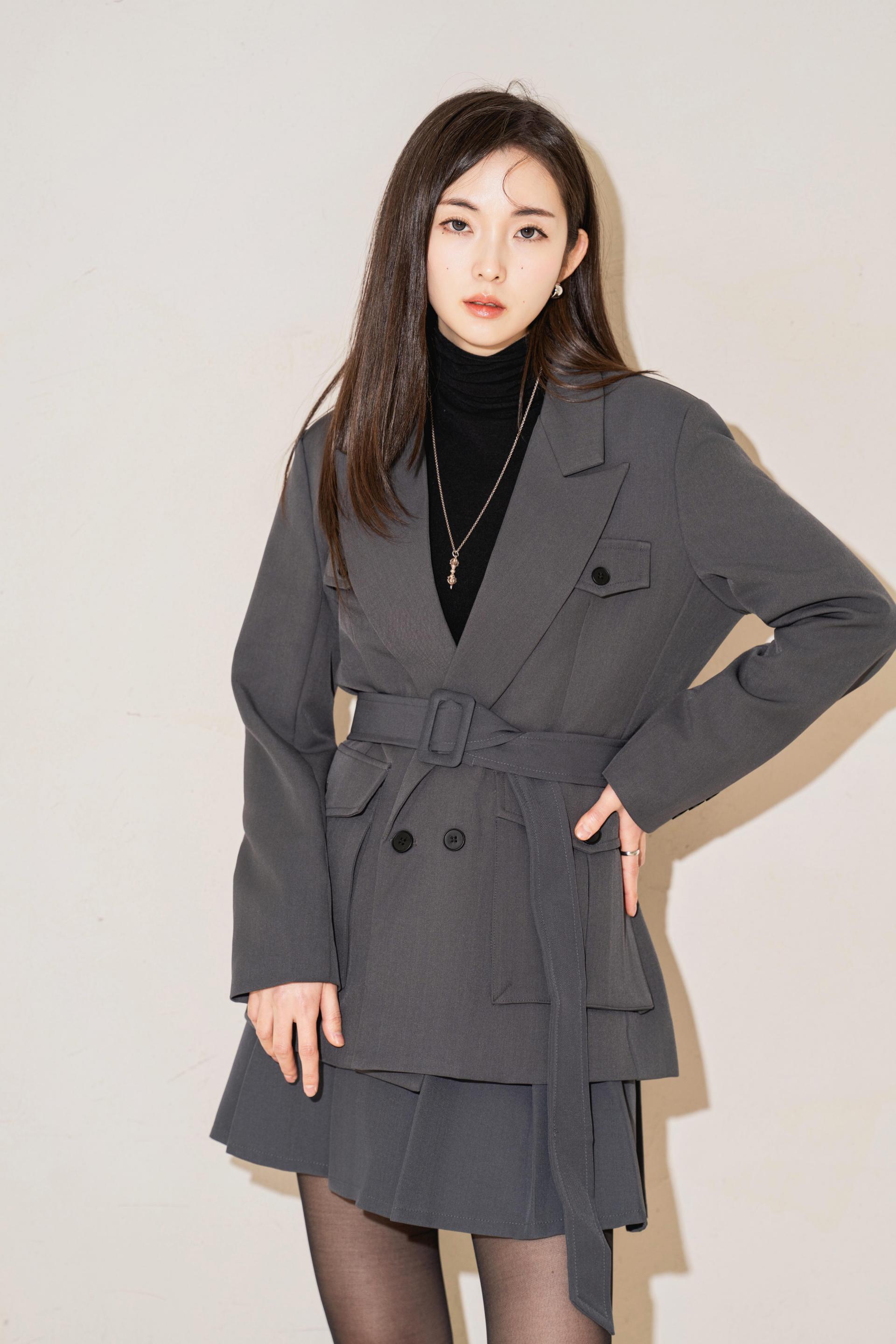 "벨트를 살짝 조여 입으면 실루엣이 살아나서 너무 멋스러워요. 단독 자켓처럼 연출해도 예쁘고, 셋업으로 입으면 완성도 있는 무드가 느껴져요."
