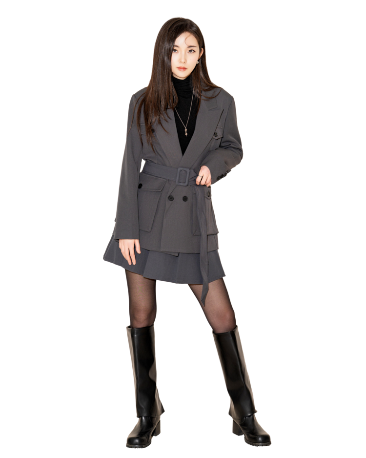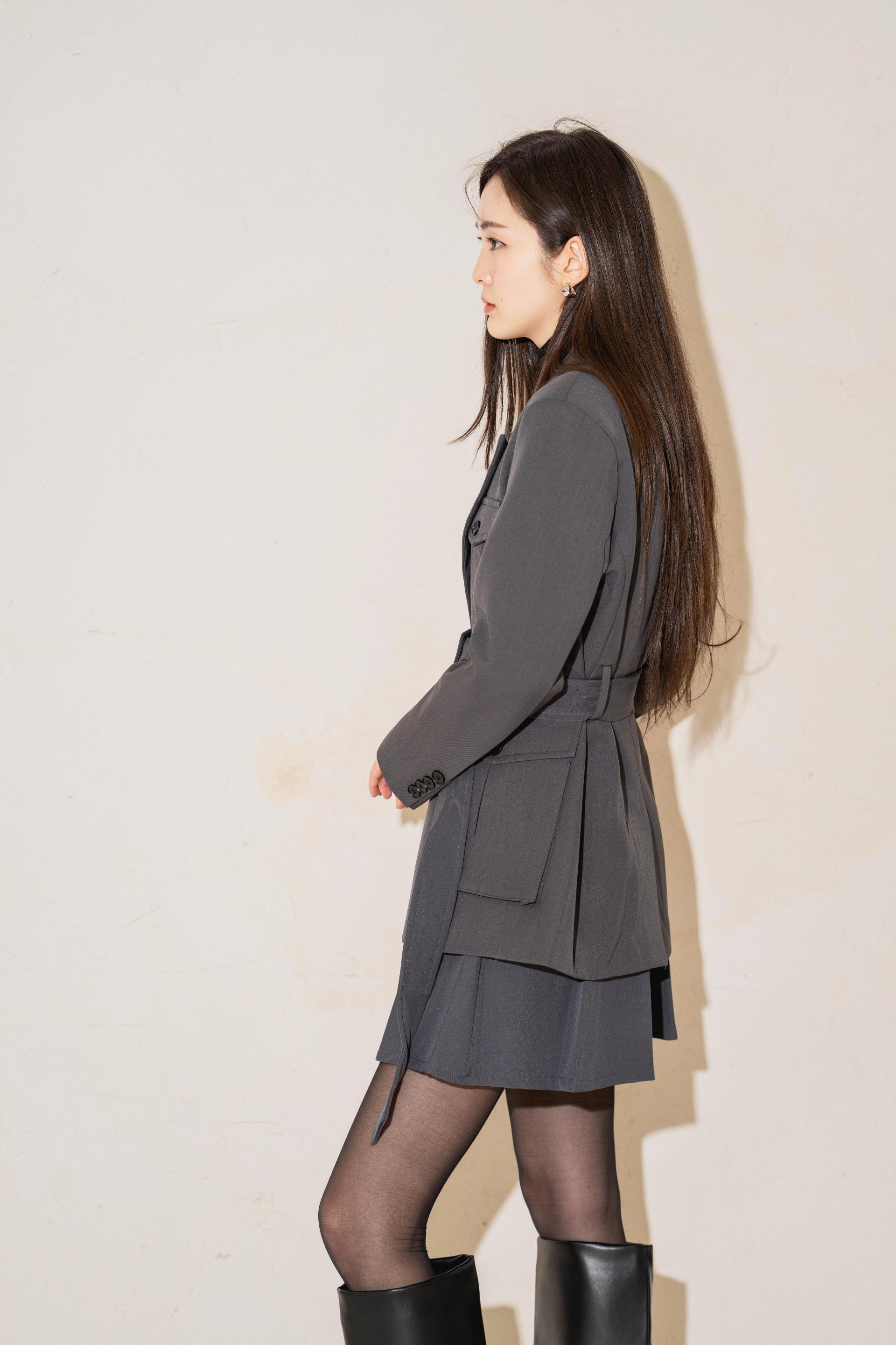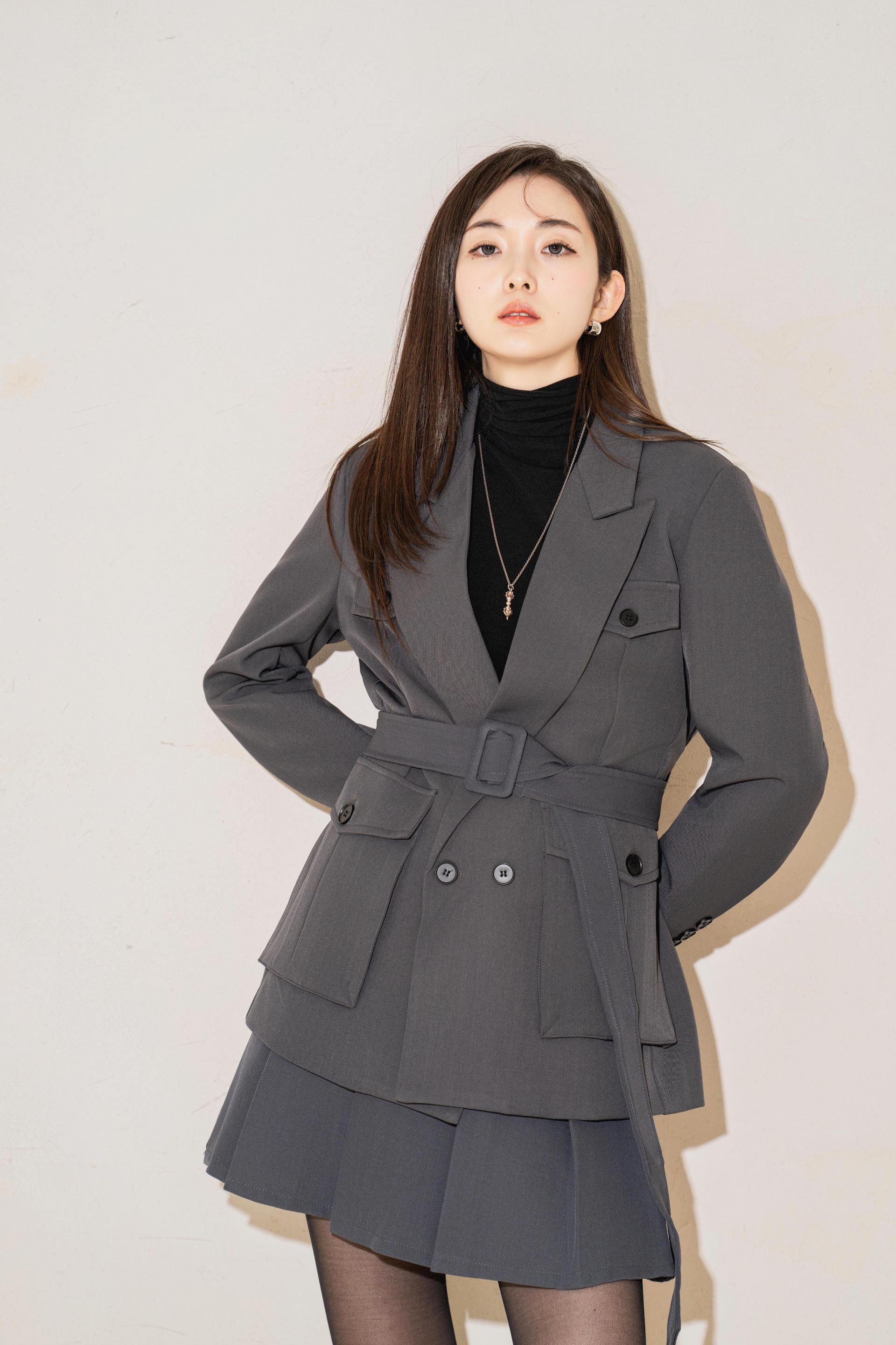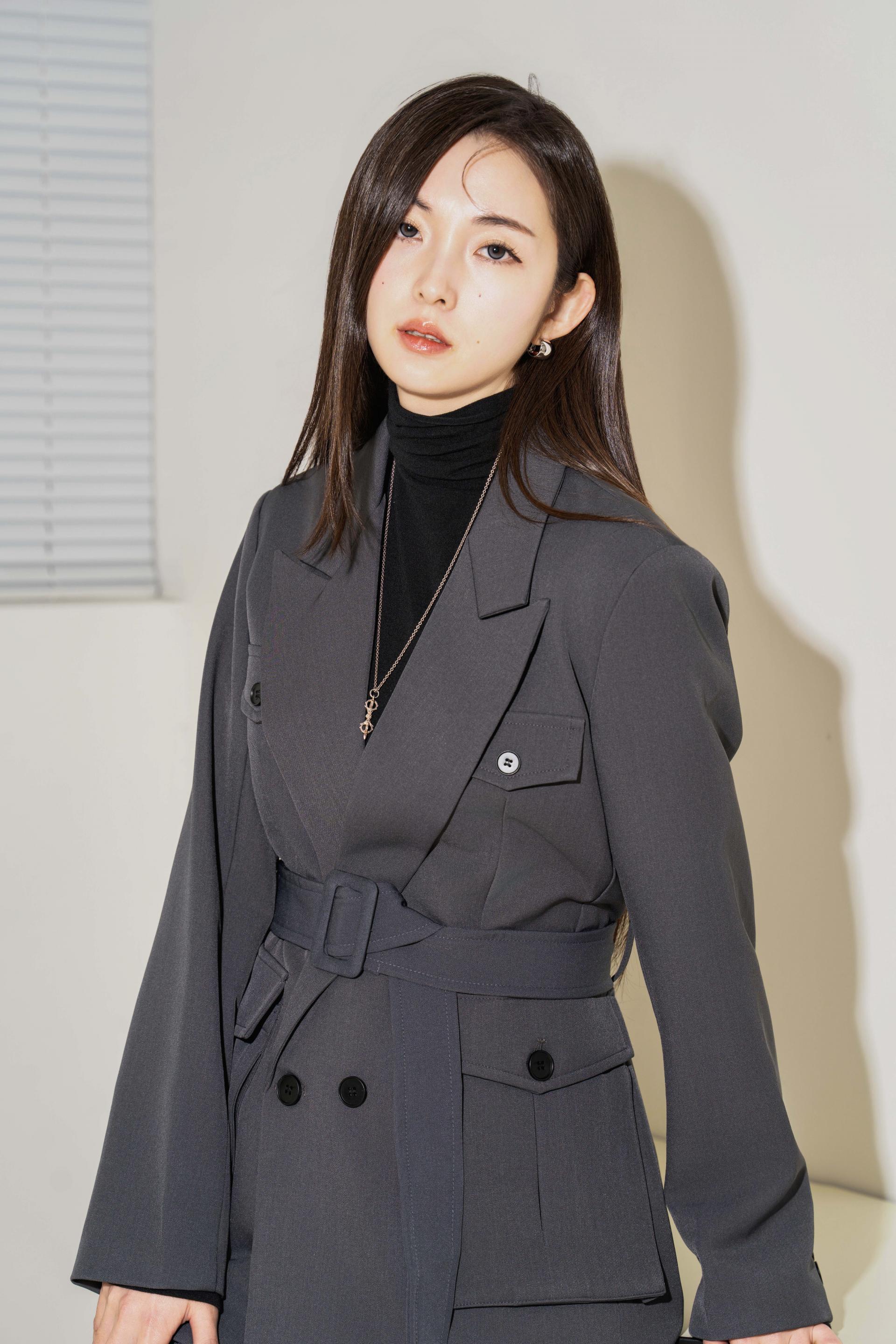 "벨트를 살짝 조여 입으면 실루엣이 살아나서 너무 멋스러워요. 단독 자켓처럼 연출해도 예쁘고, 셋업으로 입으면 완성도 있는 무드가 느껴져요."