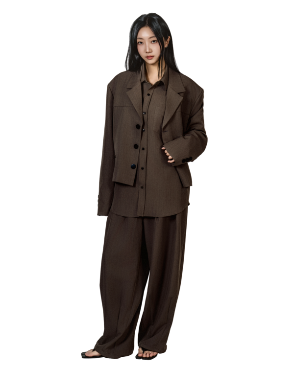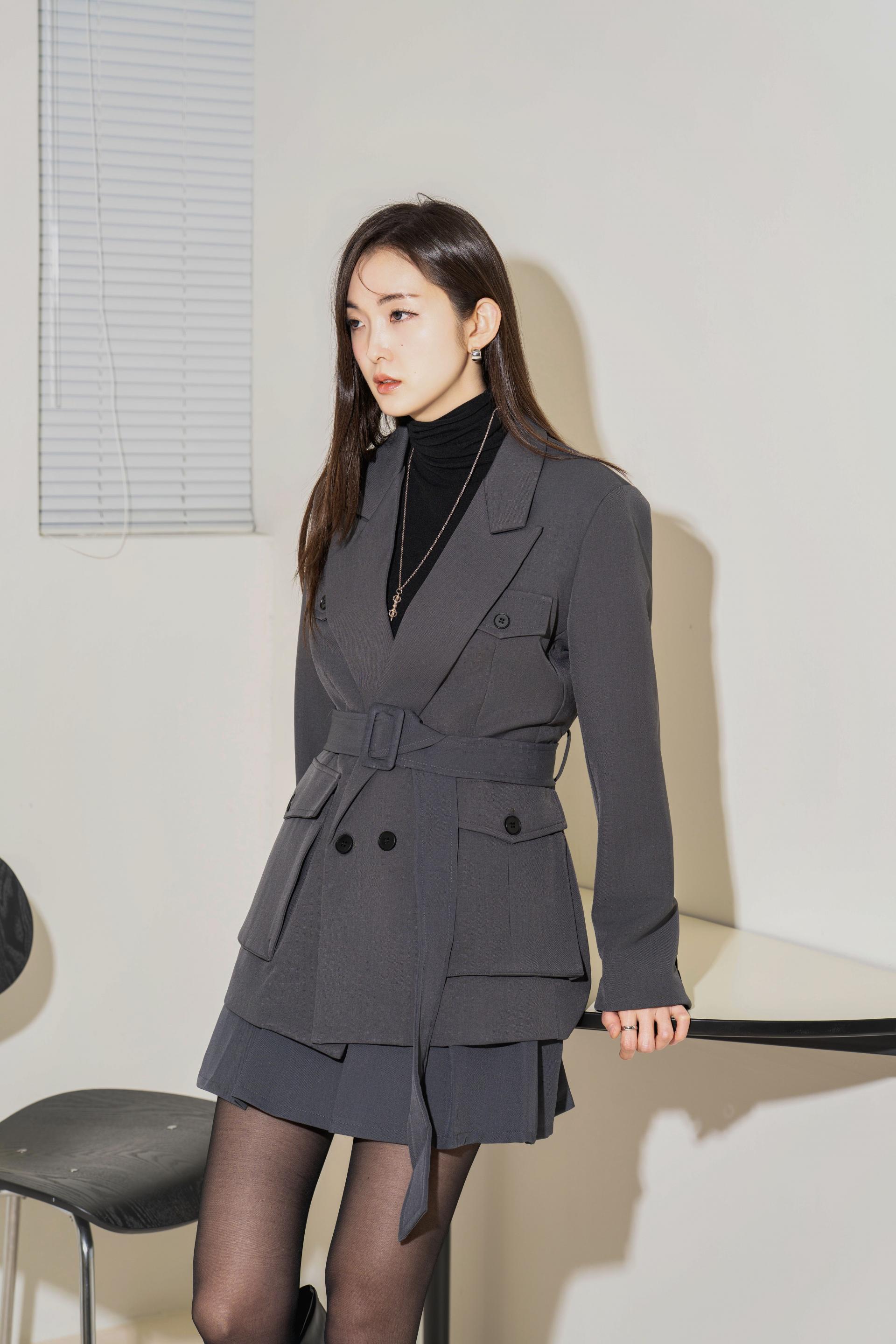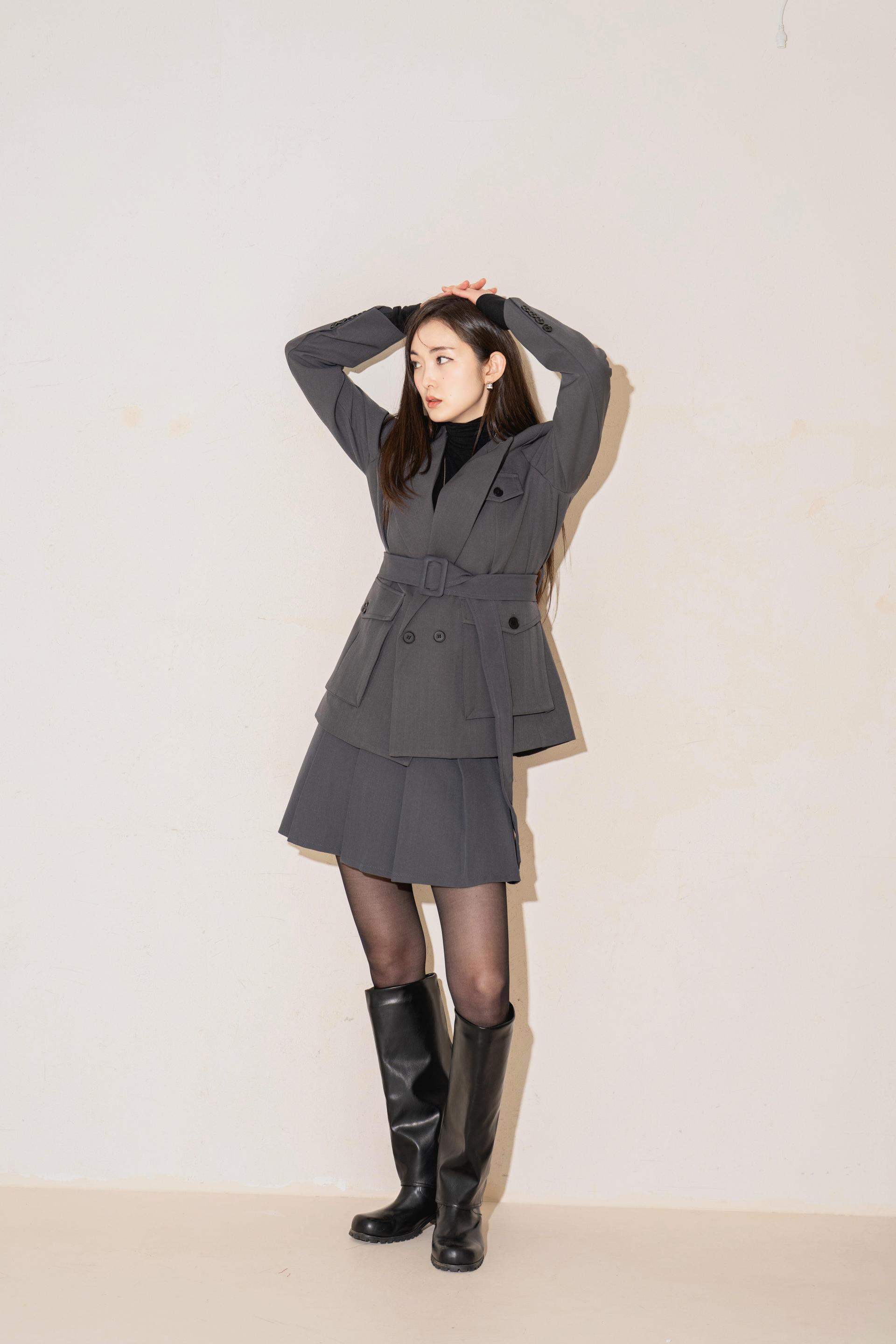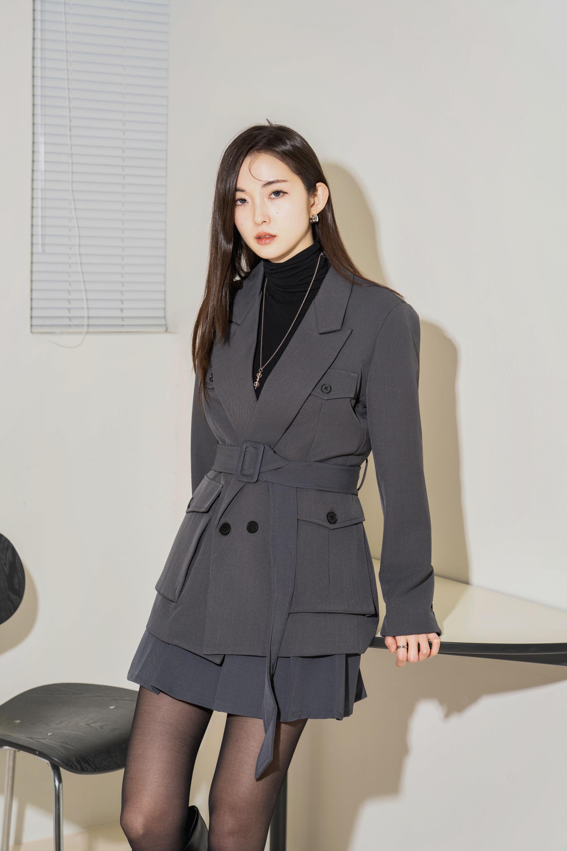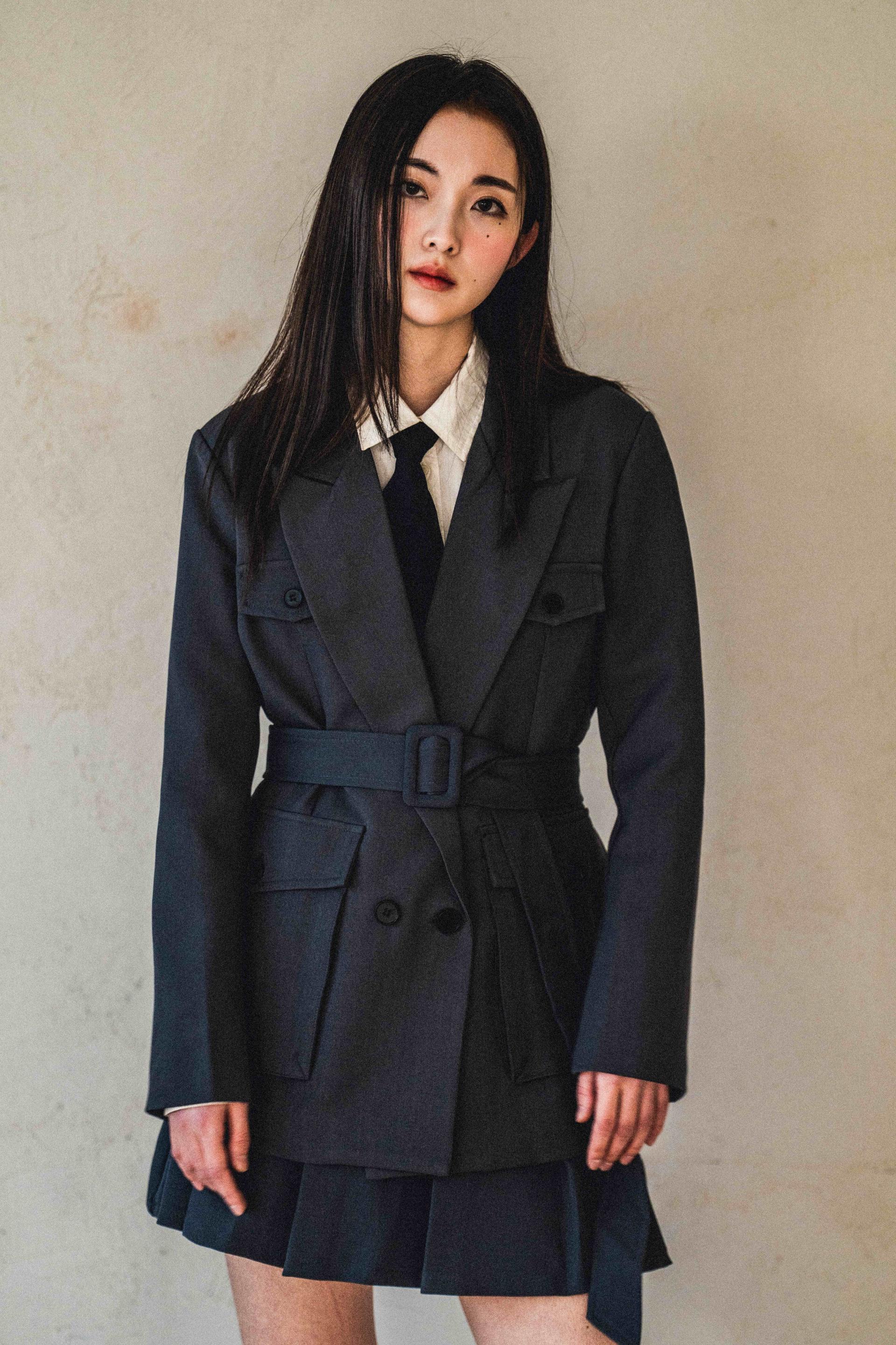 "벨트를 살짝 조여 입으면 실루엣이 살아나서 너무 멋스러워요. 단독 자켓처럼 연출해도 예쁘고, 셋업으로 입으면 완성도 있는 무드가 느껴져요."