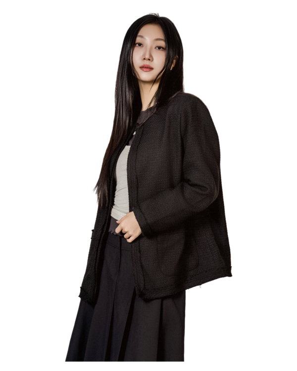• 울 혼방 소재 특유의 포근한 질감과 두께감이 있어 간절기부터 초겨울까지 단독 아우터로 활용됩니다.