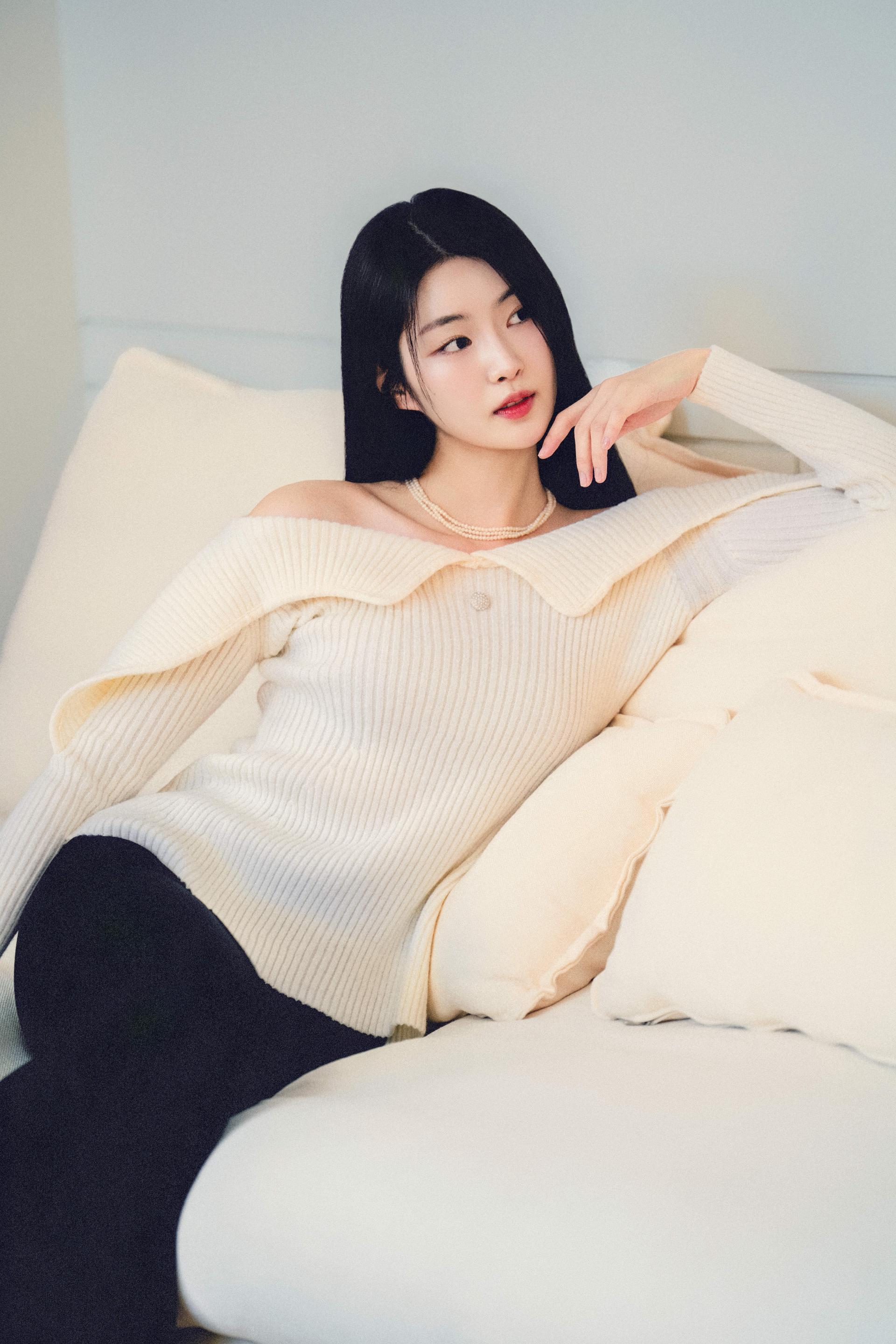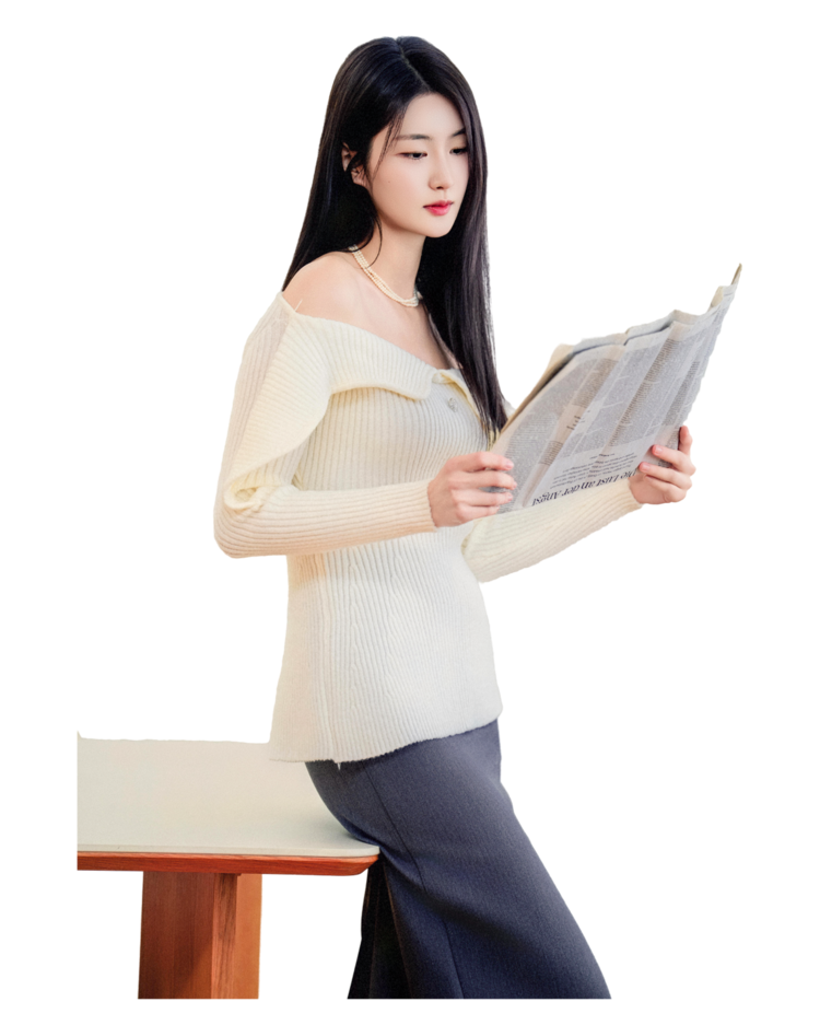 "넥라인이 정말 예뻐요. 어깨를 자연스럽게 덮어주면서도, 살짝 드러나는 쇄골 라인이 분위기를 살려주는 느낌이랄까. 다른 디테일 없이도 이 니트 하나만으로 충분했어요."