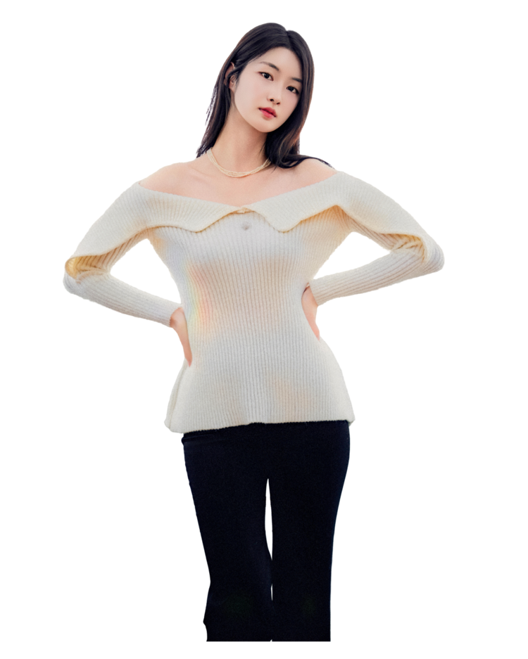 • 오프숄더 실루엣과 골지 텍스처가 바디라인을 자연스럽게 감싸주며, 여성스러운 무드를 연출해 줍니다.