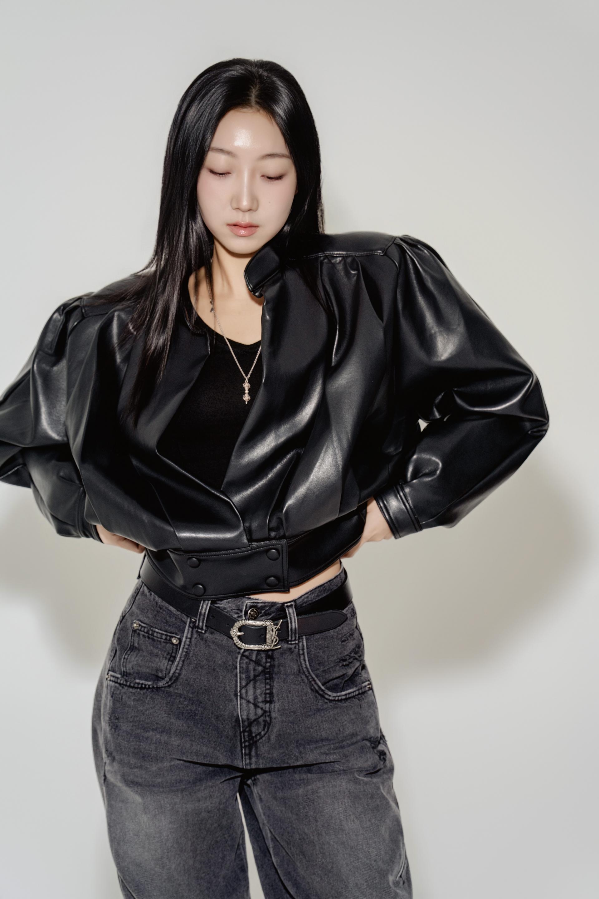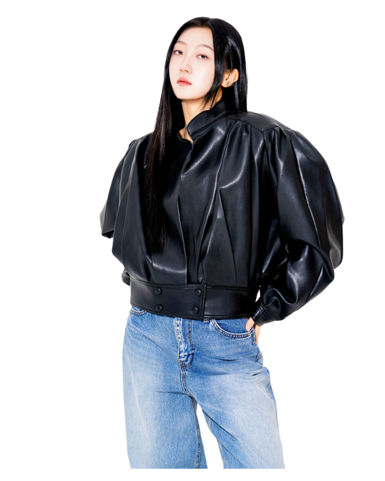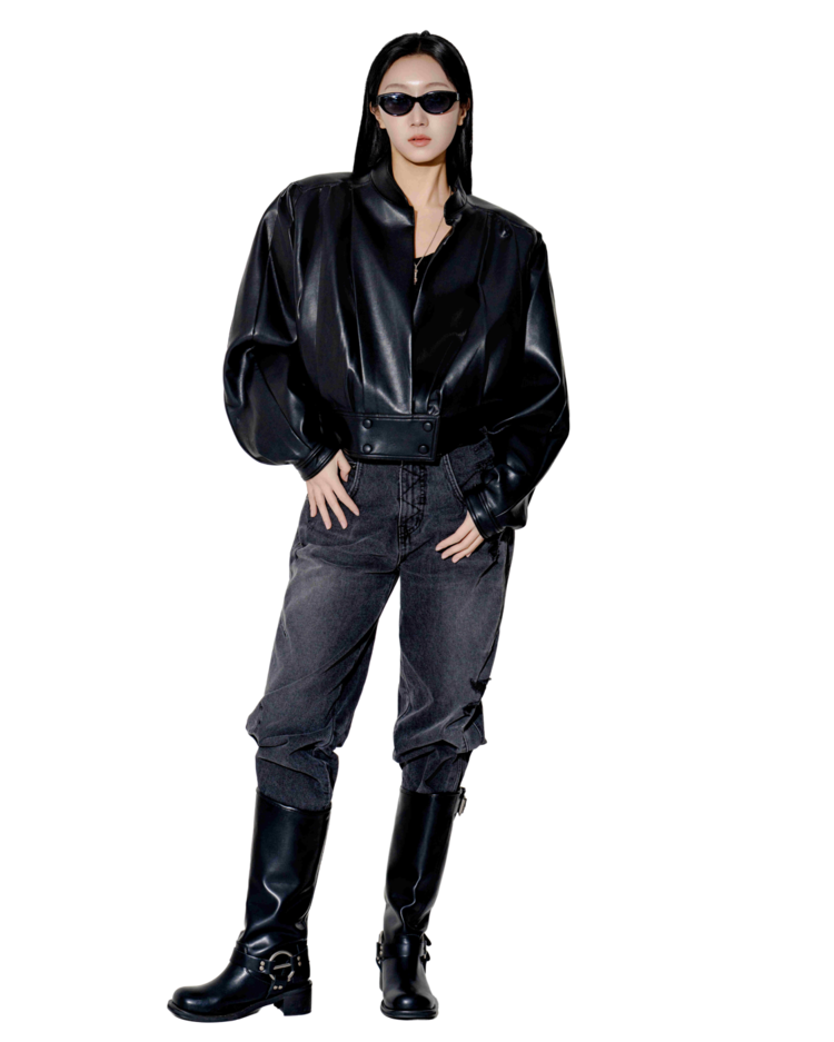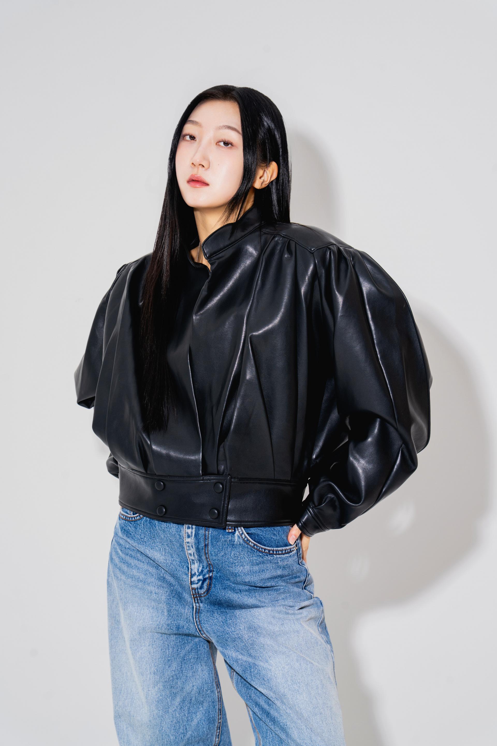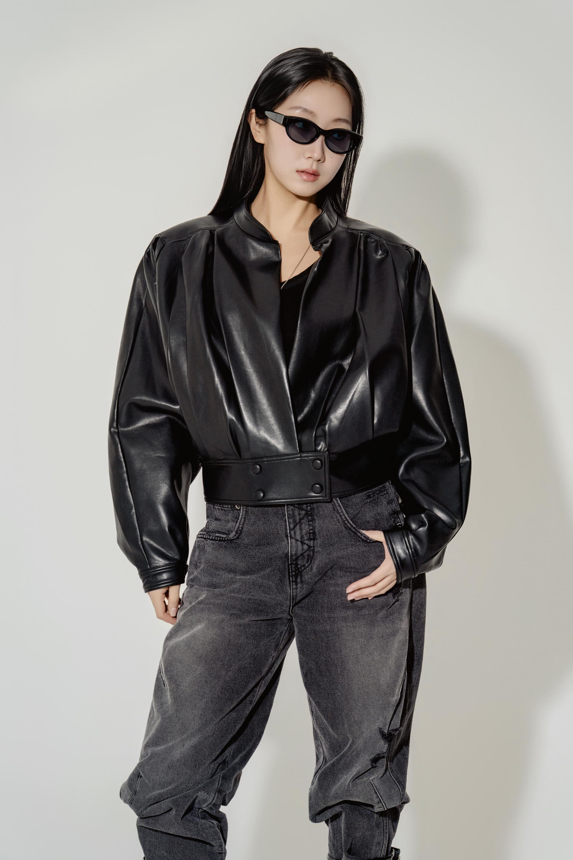 • 구조적인 볼륨 실루엣이 시선을 사로잡는 크롭 가죽 자켓입니다.