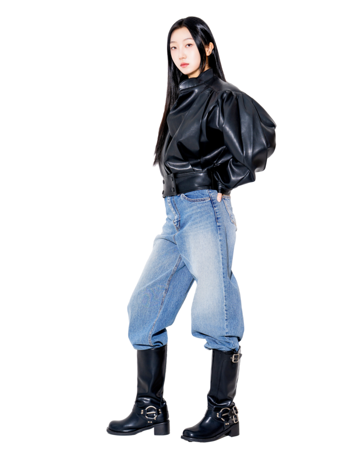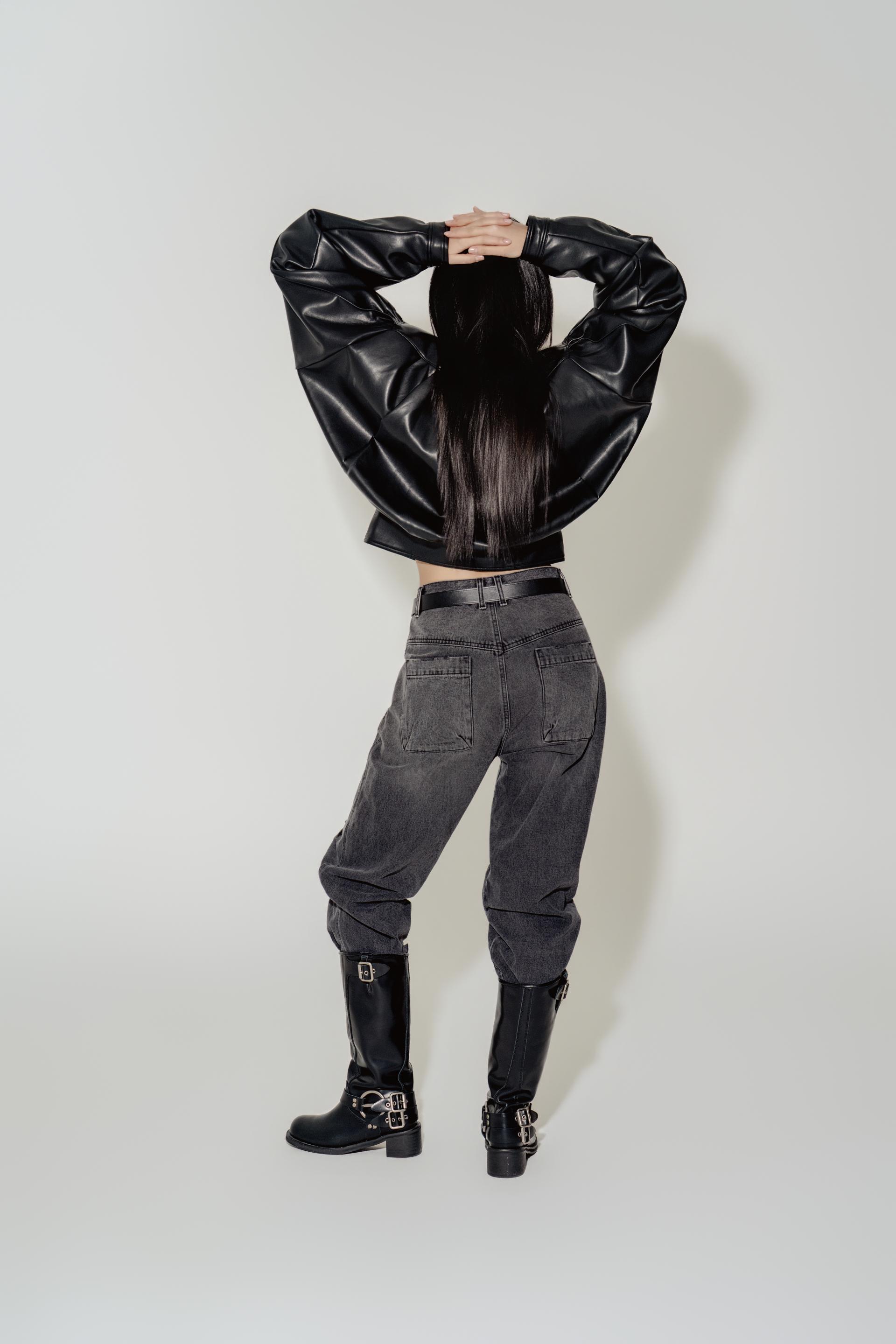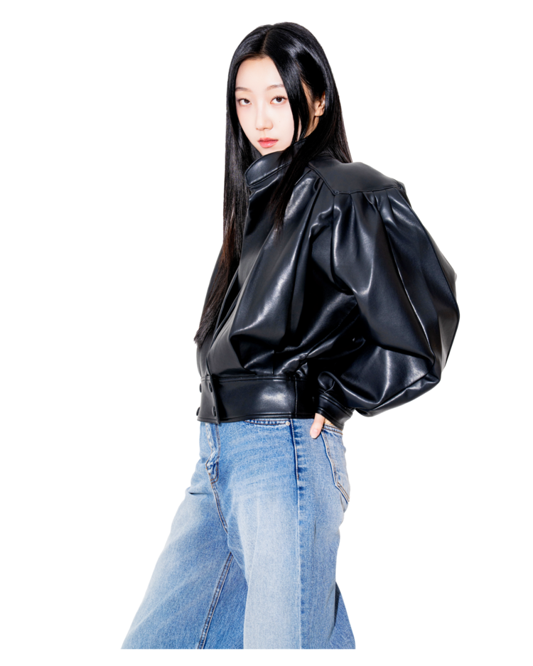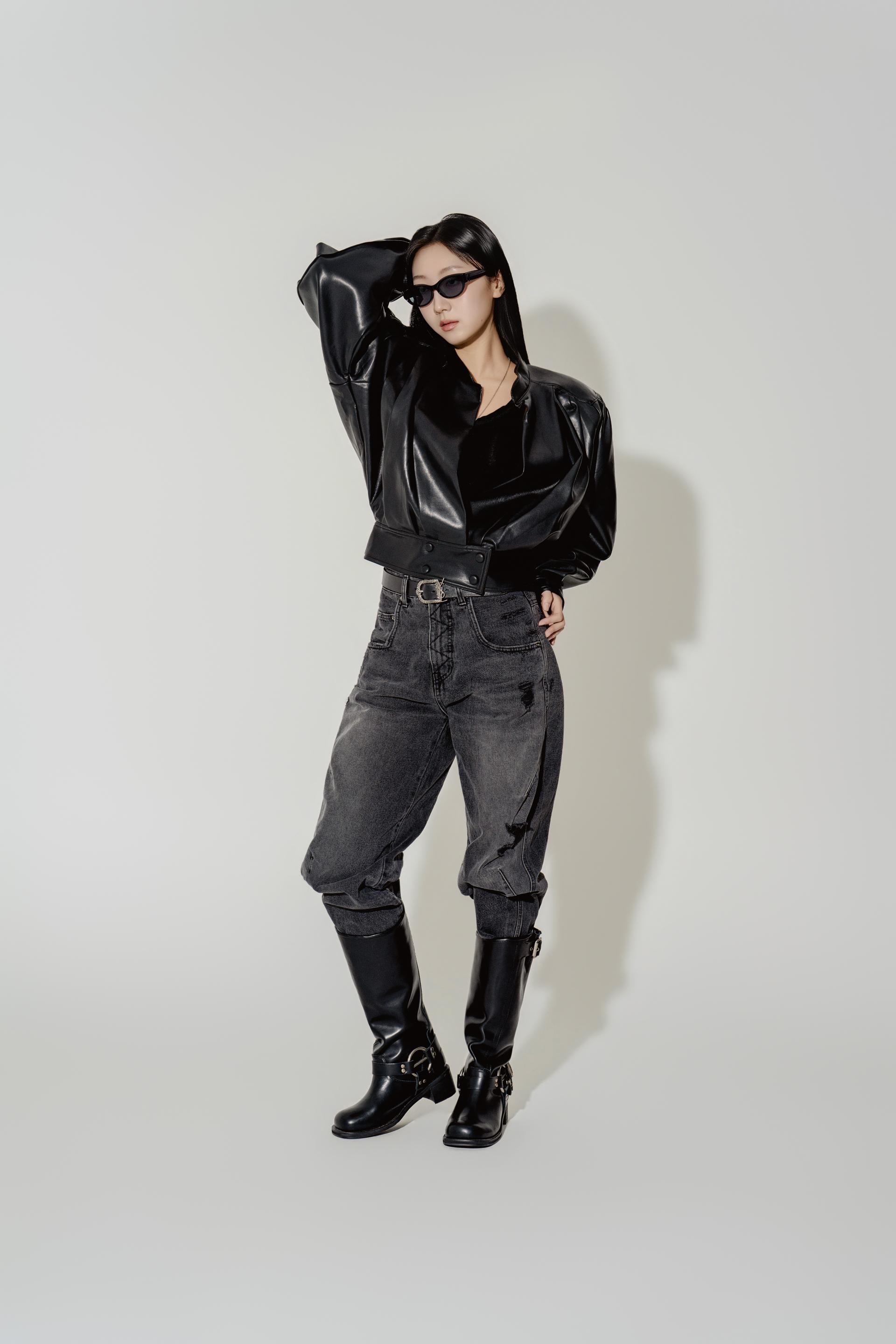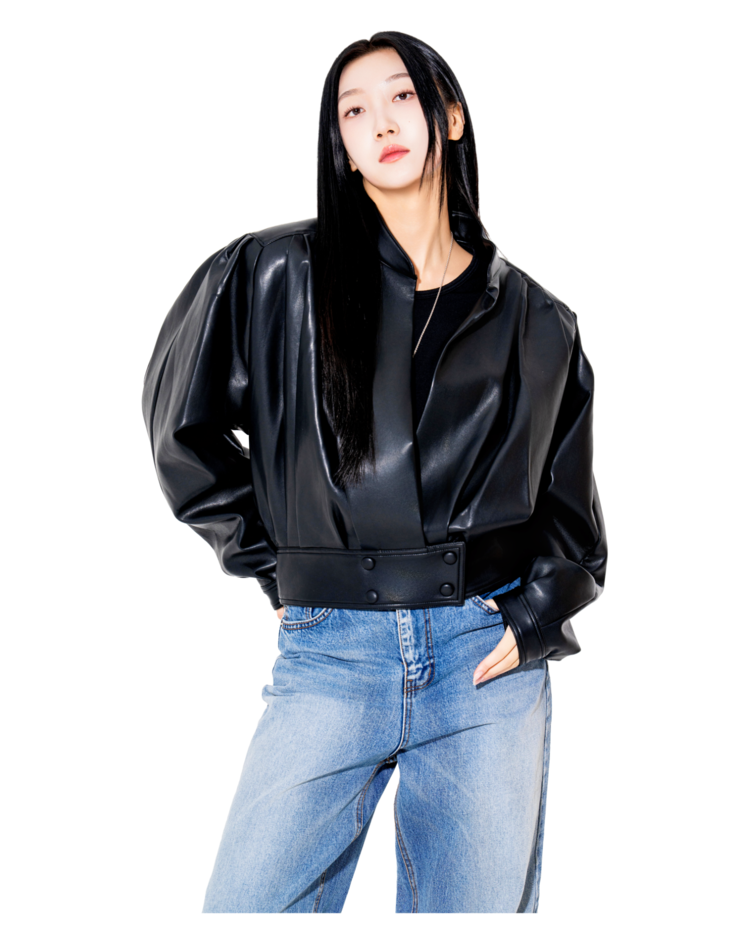• 구조적인 볼륨 실루엣이 시선을 사로잡는 크롭 가죽 자켓입니다.
