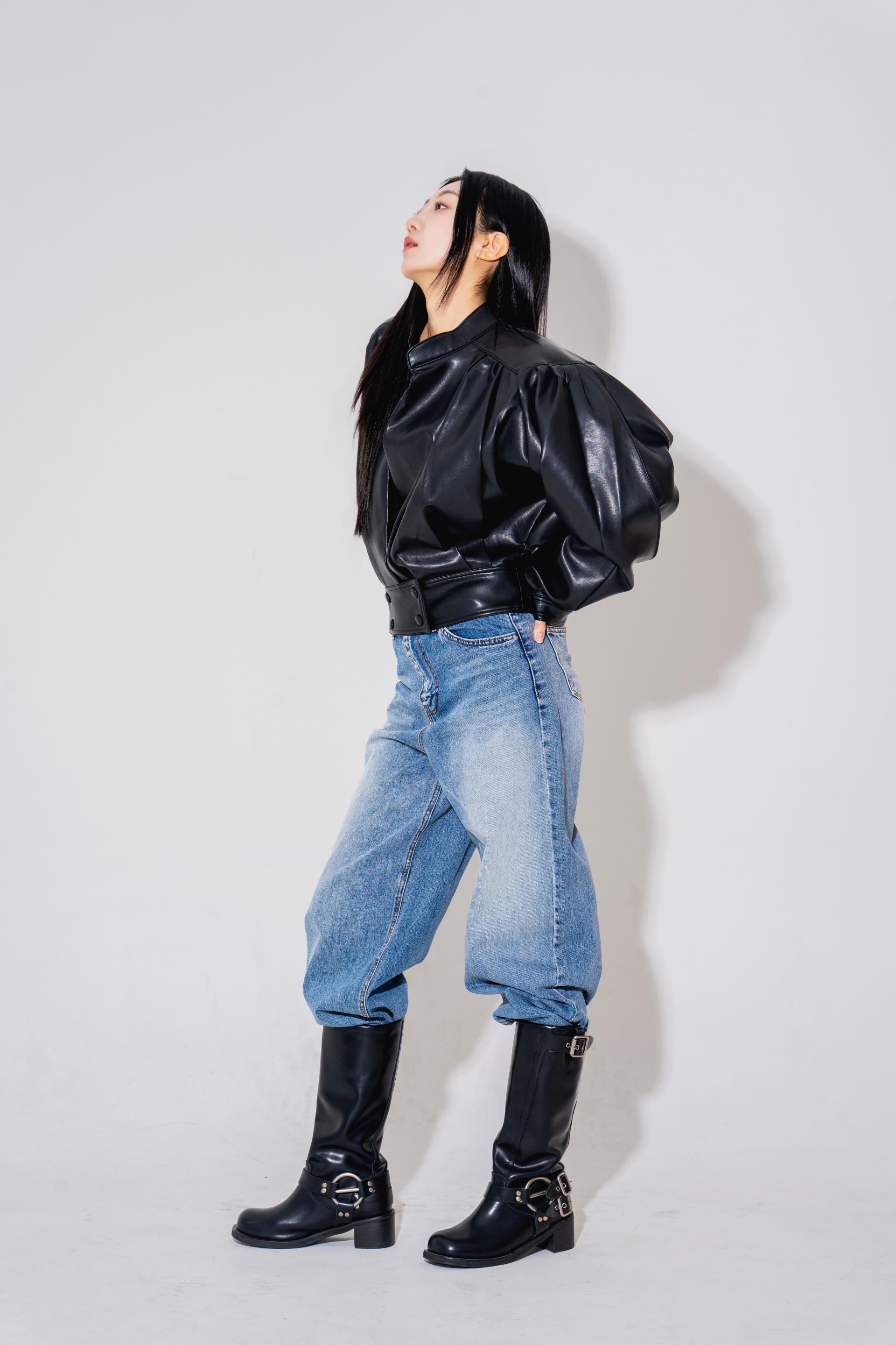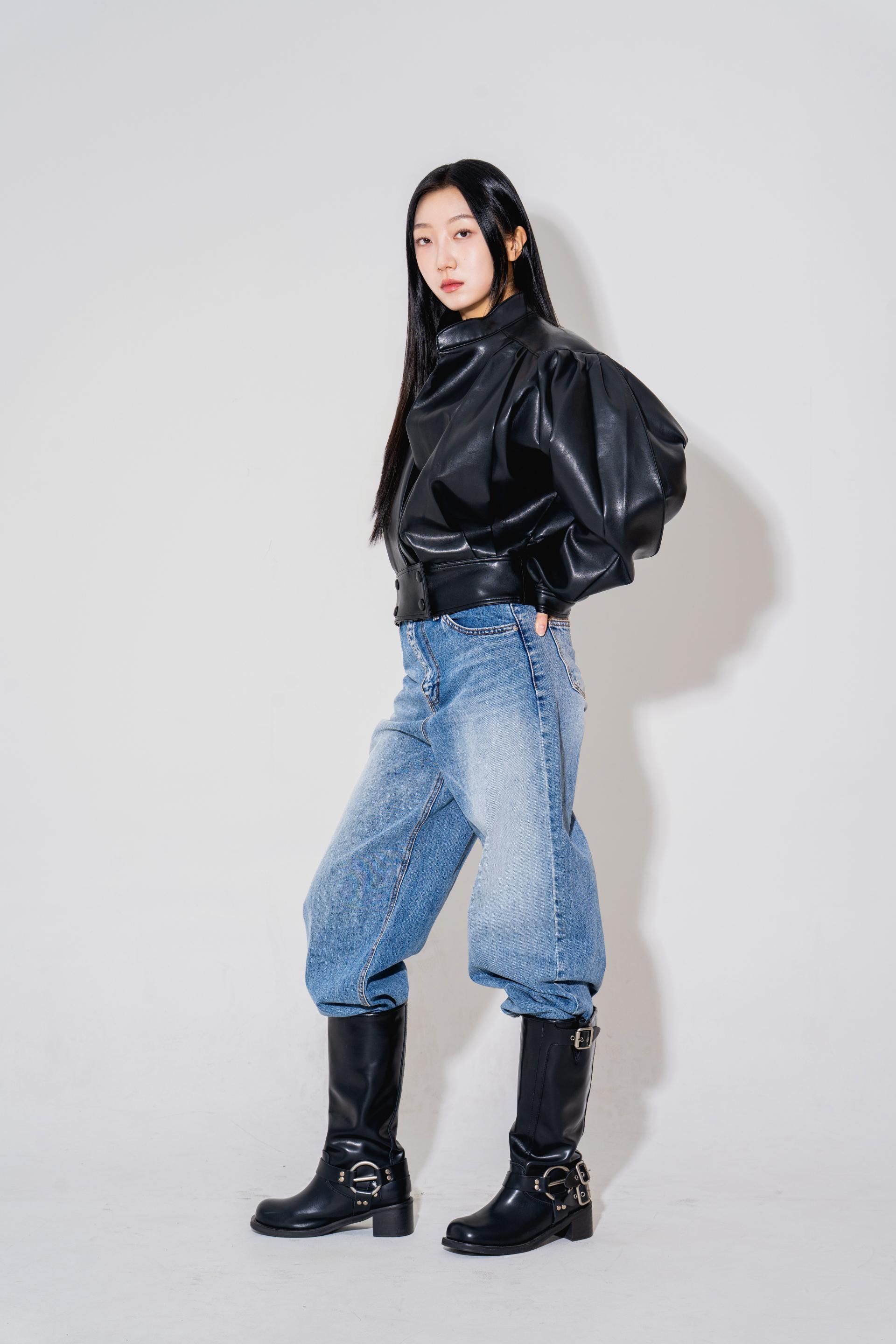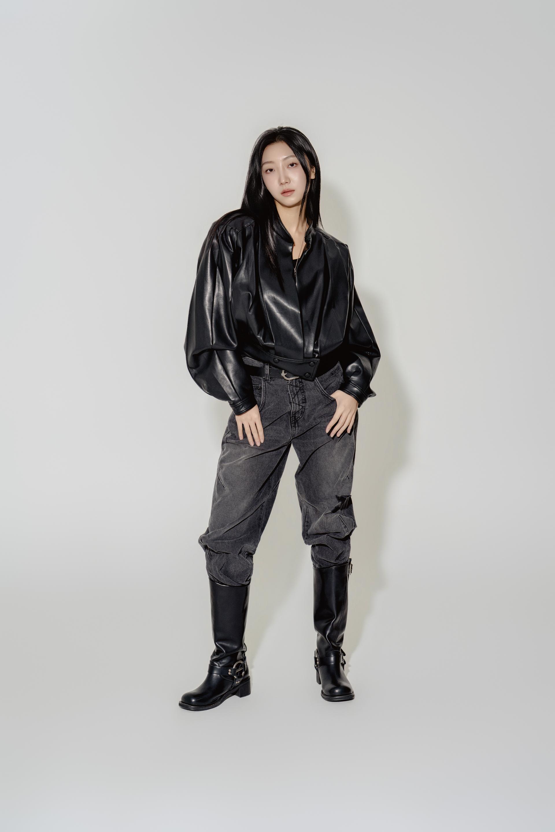 "자칫 날카로울 수 있는 가죽인데, 실루엣 덕분에 무드가 굉장히 유연하고 멋져요. 사진 찍으면 구조가 예쁘게 잡혀서, 실물보다 화면이 더 멋지게 나오는 옷이에요."