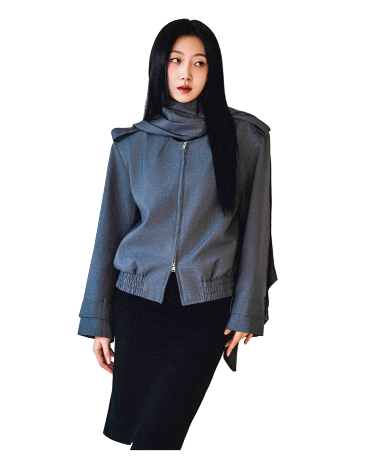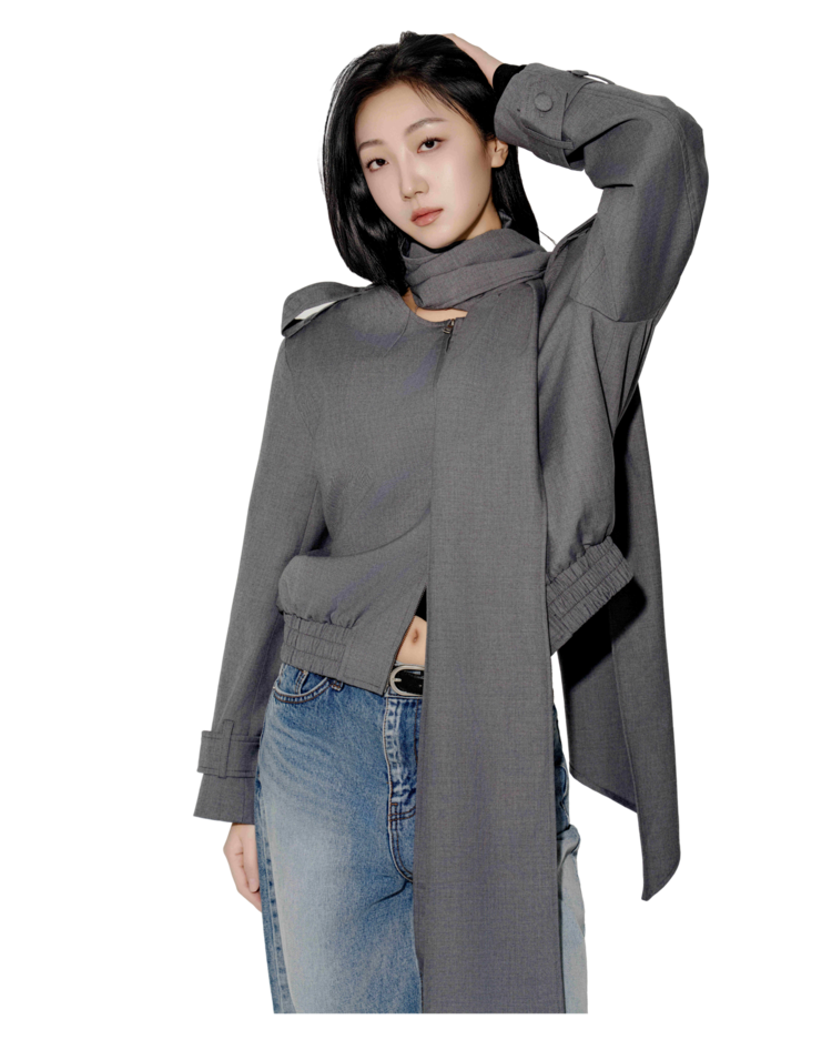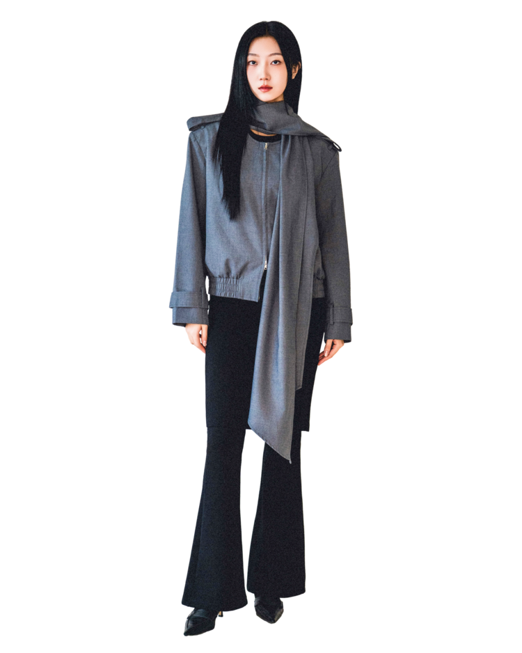 • 탈부착 가능한 롱 스카프 디테일이 인상적인 포인트로, 우아한 연출과 실용성을 동시에 제공합니다. 단정하게 묶거나 자연스럽게 늘어뜨려 다양한 무드를 연출할 수 있습니다.