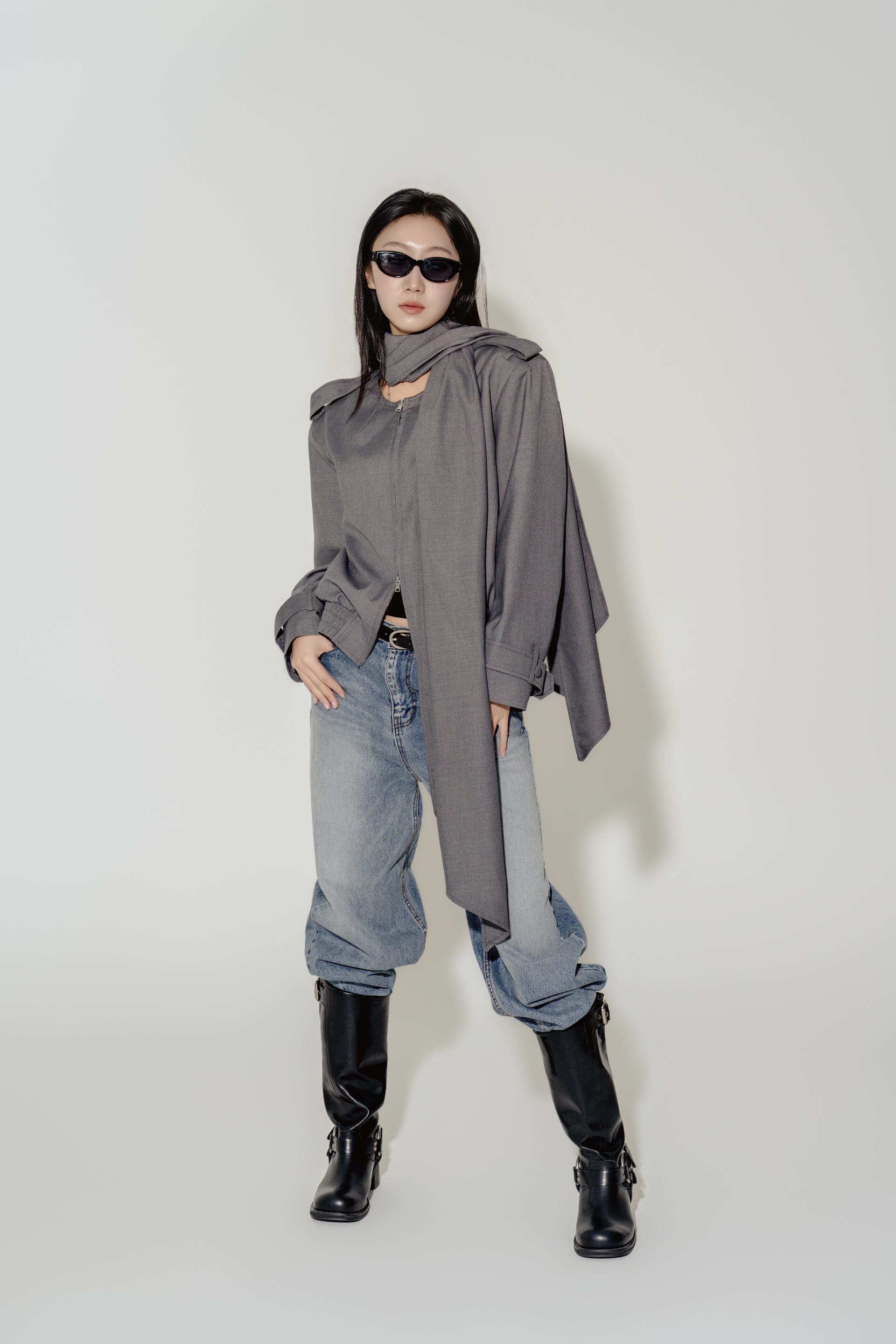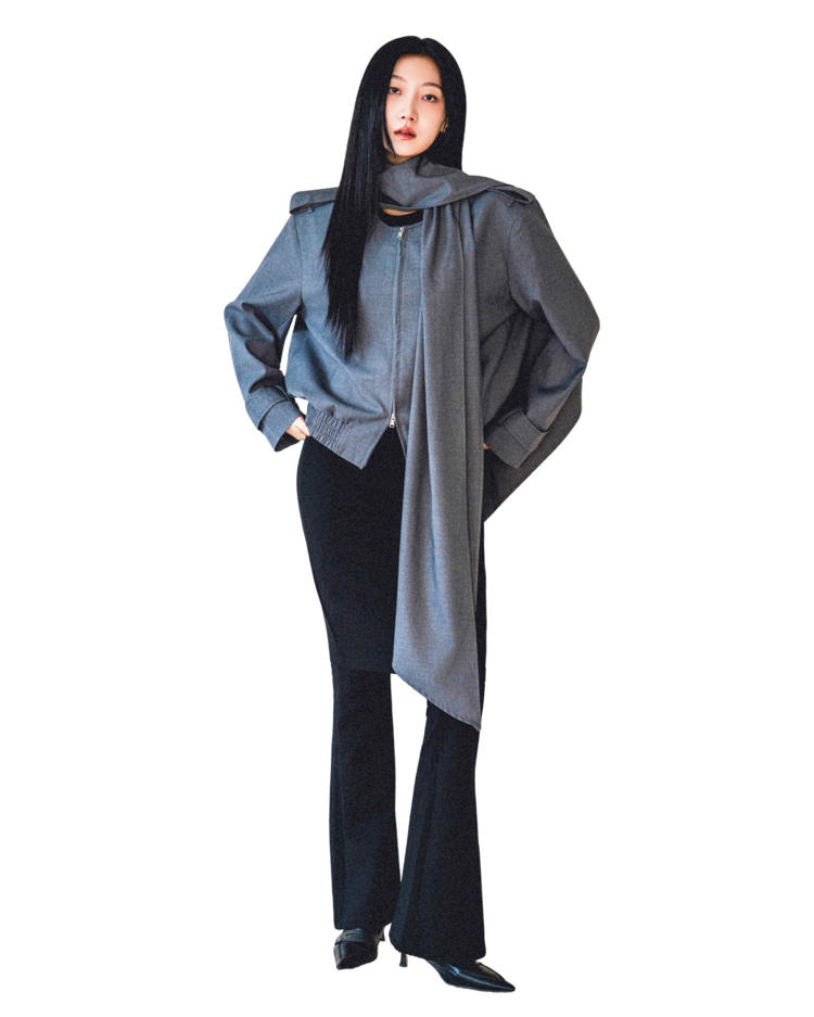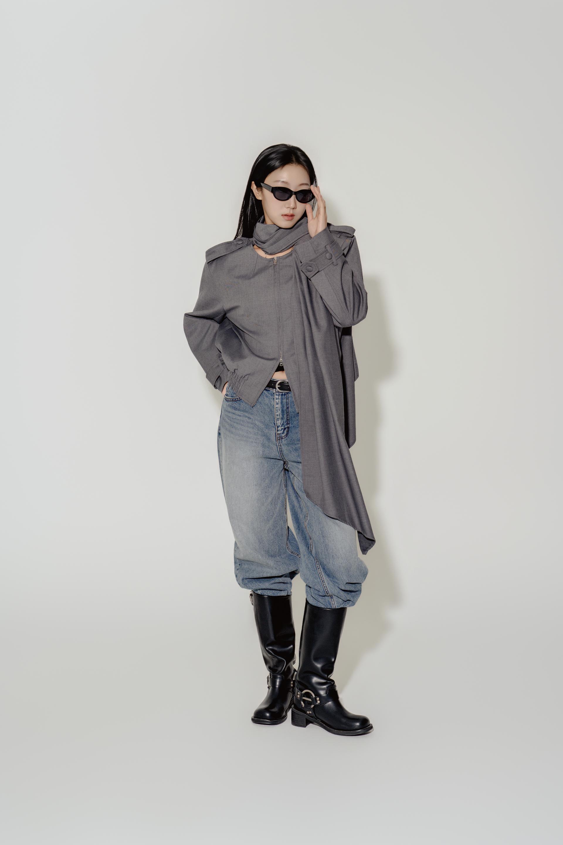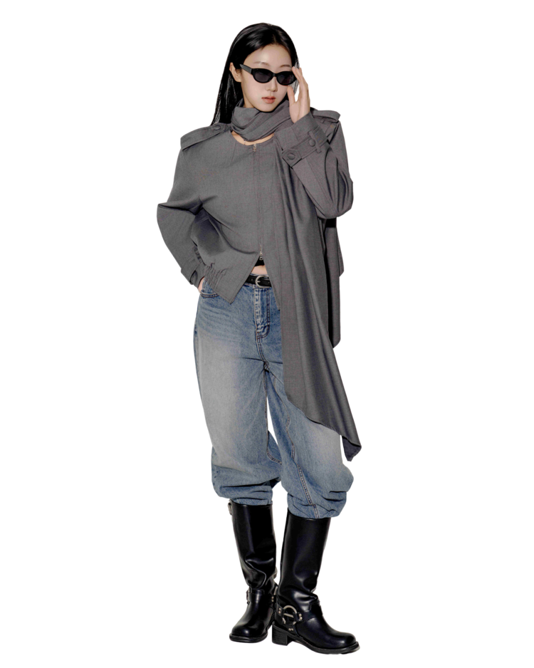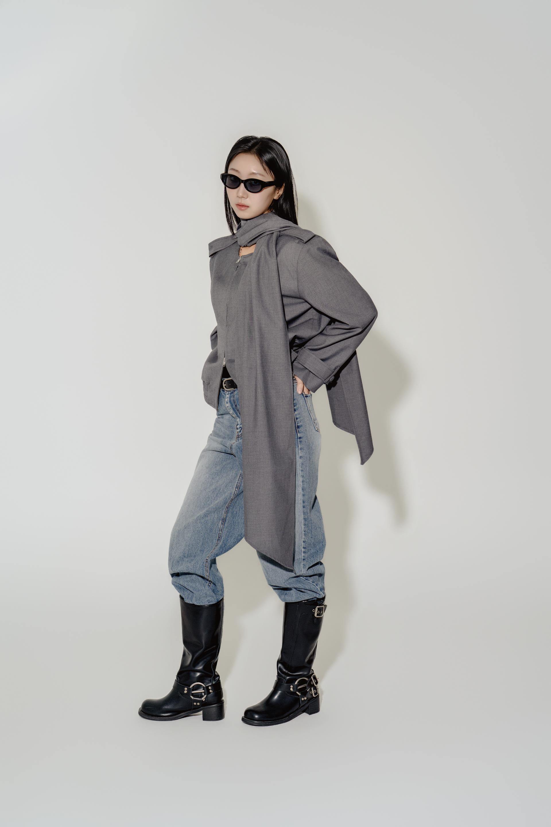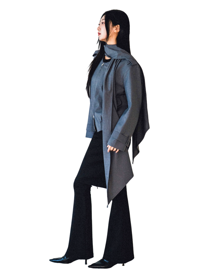 "롱 스카프 디테일 덕분에 자켓 하나만 걸쳐도 완성도 있는 느낌이에요. 어깨선이나 소매 끝 디테일도 단단하게 잡혀서 전체적인 실루엣이 무너지지 않아요."