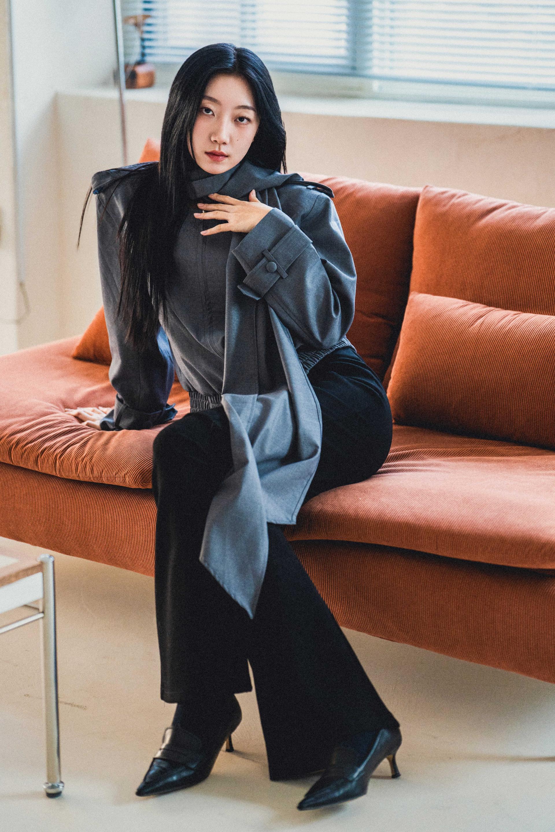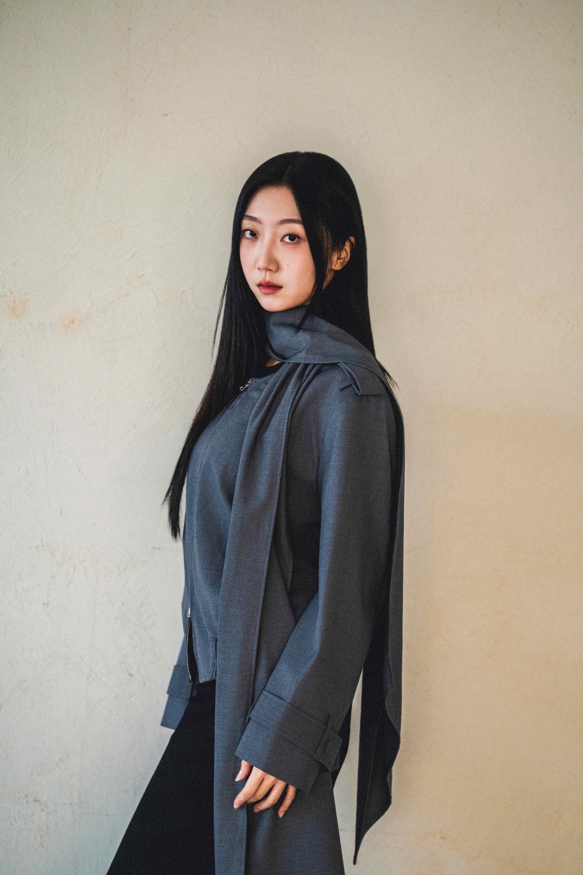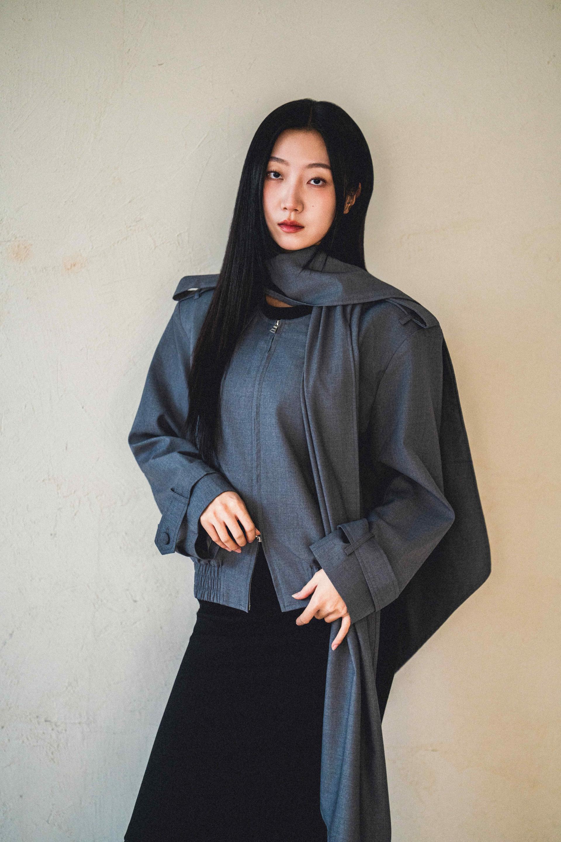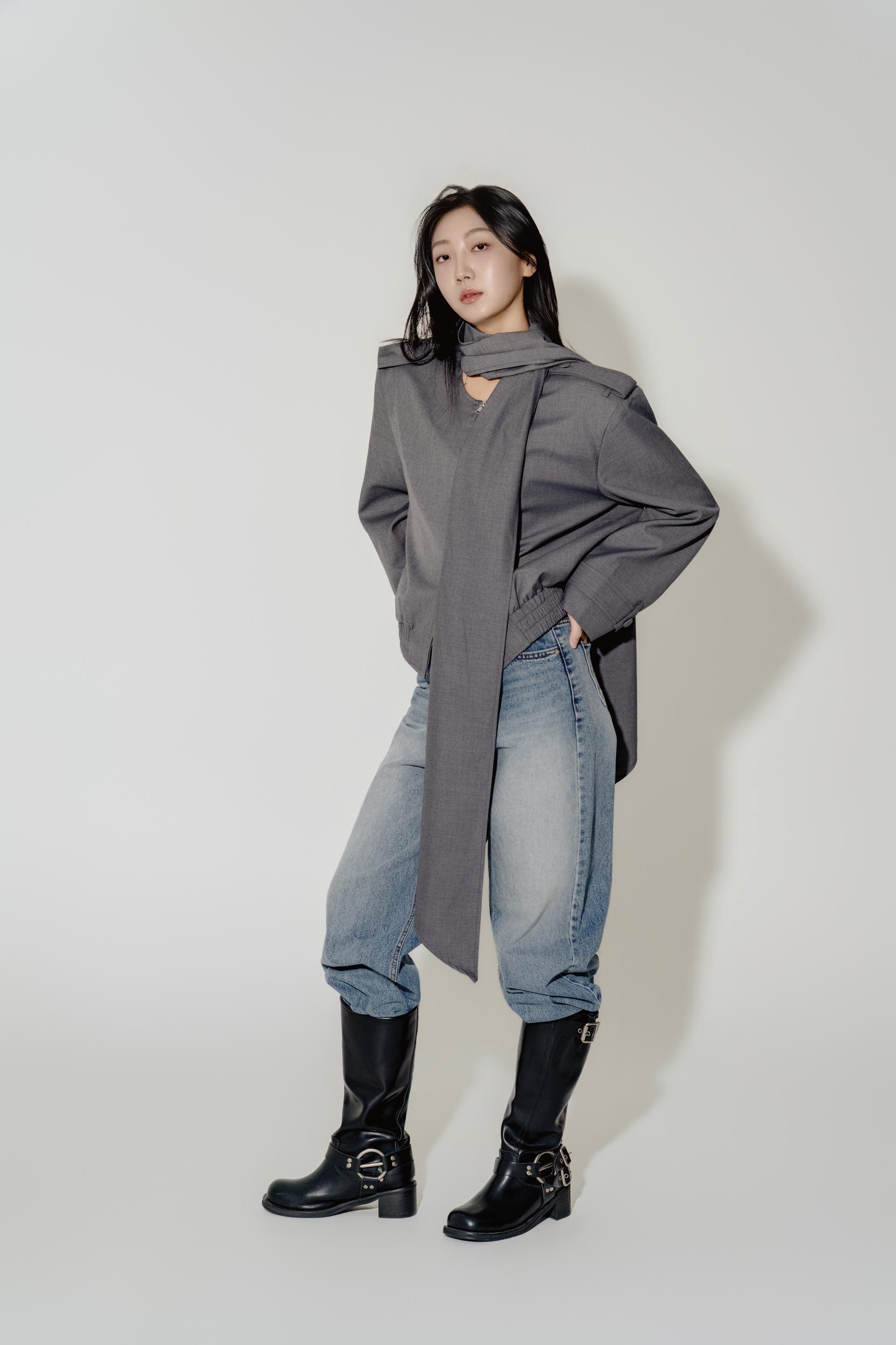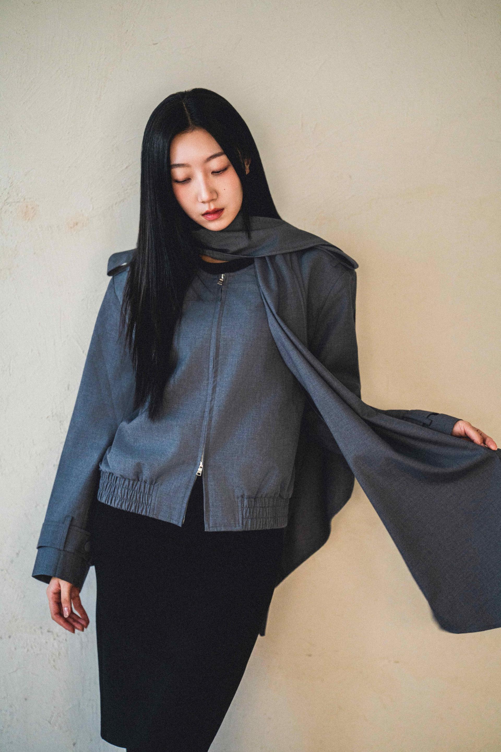 "롱 스카프 디테일 덕분에 자켓 하나만 걸쳐도 완성도 있는 느낌이에요. 어깨선이나 소매 끝 디테일도 단단하게 잡혀서 전체적인 실루엣이 무너지지 않아요."
