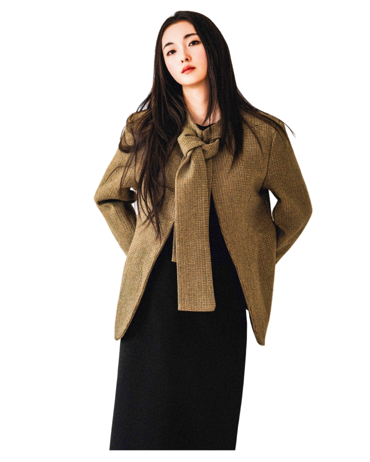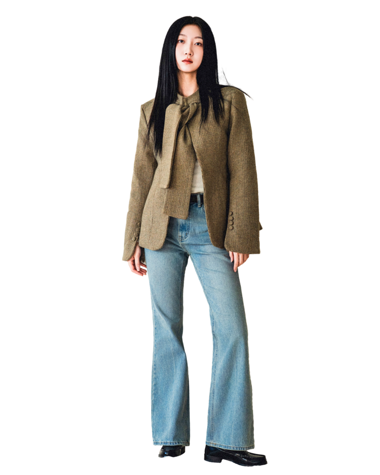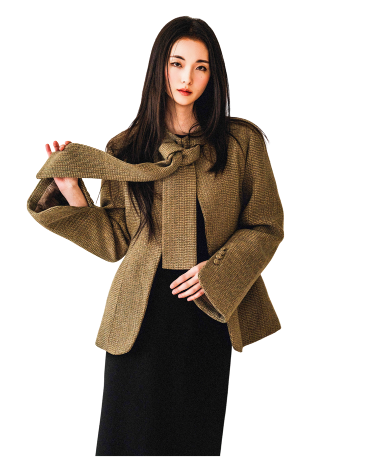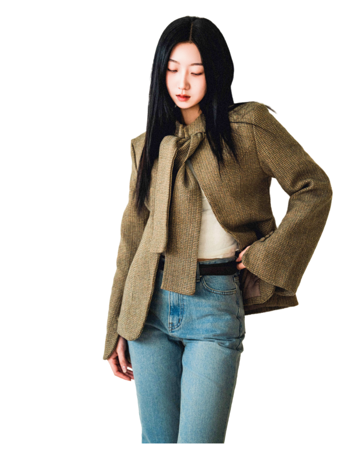 • 클래식한 트위드 소재를 세련된 실루엣으로 풀어낸 자켓입니다. 유연하게 흐르는 어깨 라인과 라운드 넥으로 부드러운 인상을 줍니다.