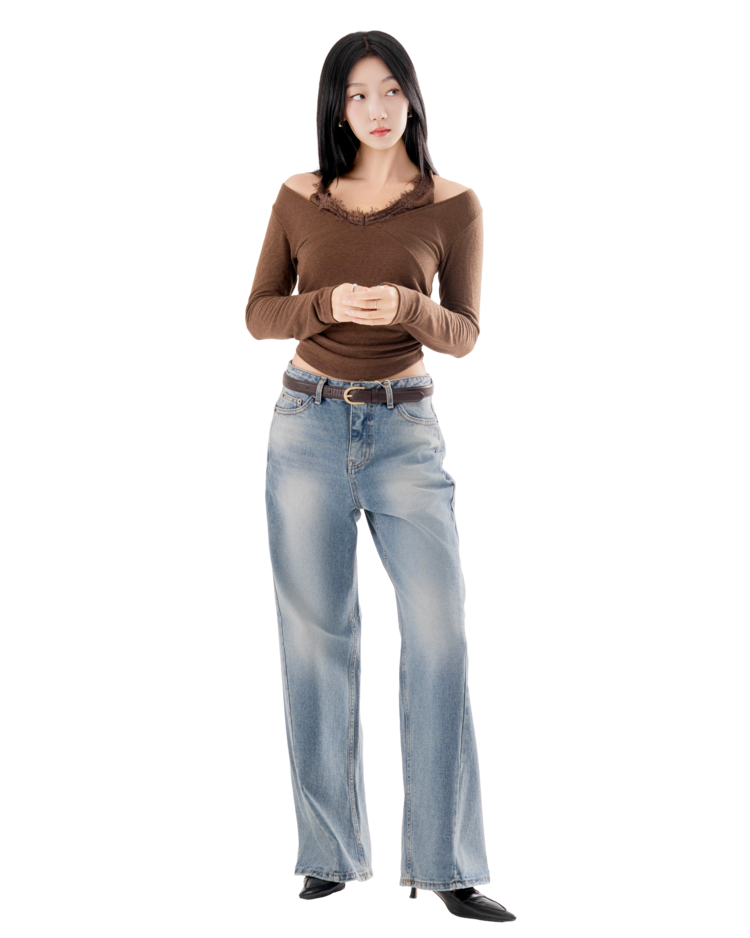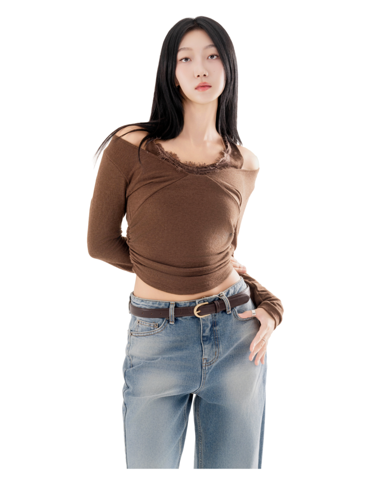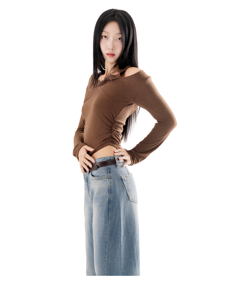 • 와이드한 오프숄더 넥으로 쇄골 라인이 자연스럽게 드러납니다.
